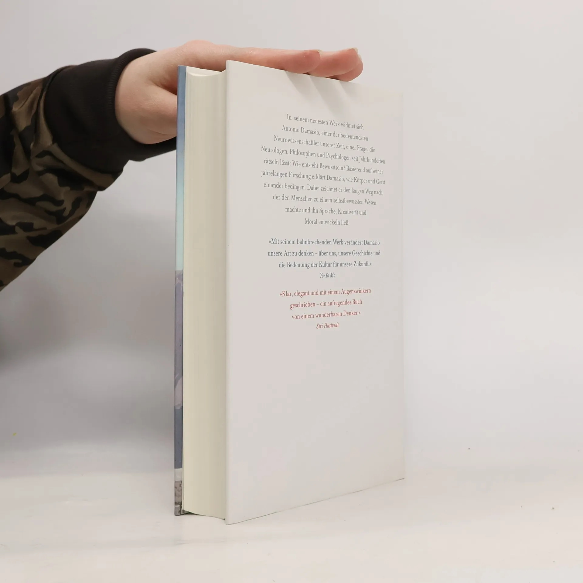 Vom Sein zum Bewusstsein Seit dreißig Jahren erforscht Antonio Damasio, wie der menschliche Geist arbeitet. Aufgrund überraschender wissenschaftlicher Ergebnisse kann er zeigen, dass das menschliche Bewusstsein ein biologischer Prozess ist, der im Gehirn entsteht. Damit widerlegt Damasio die hartnäckige Vorstellung vom menschlichen Geist als etwas Eigenständiges, das vom Körper getrennt betrachtet werden müsse. In seiner Arbeit geht Damasio über die klassischen Wege, den menschlichen Geist zu untersuchen, hinaus: Neben der Verhaltensforschung und den Neurowissenschaften führt er erstmals eine evolutionäre Perspektive ein. Dadurch gelingt es ihm, unser Verständnis von der Entwicklung des menschlichen Geistes entscheidend zu erweitern.
