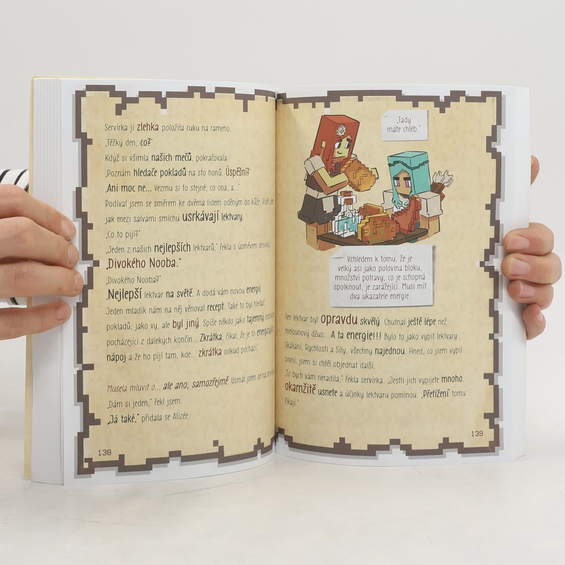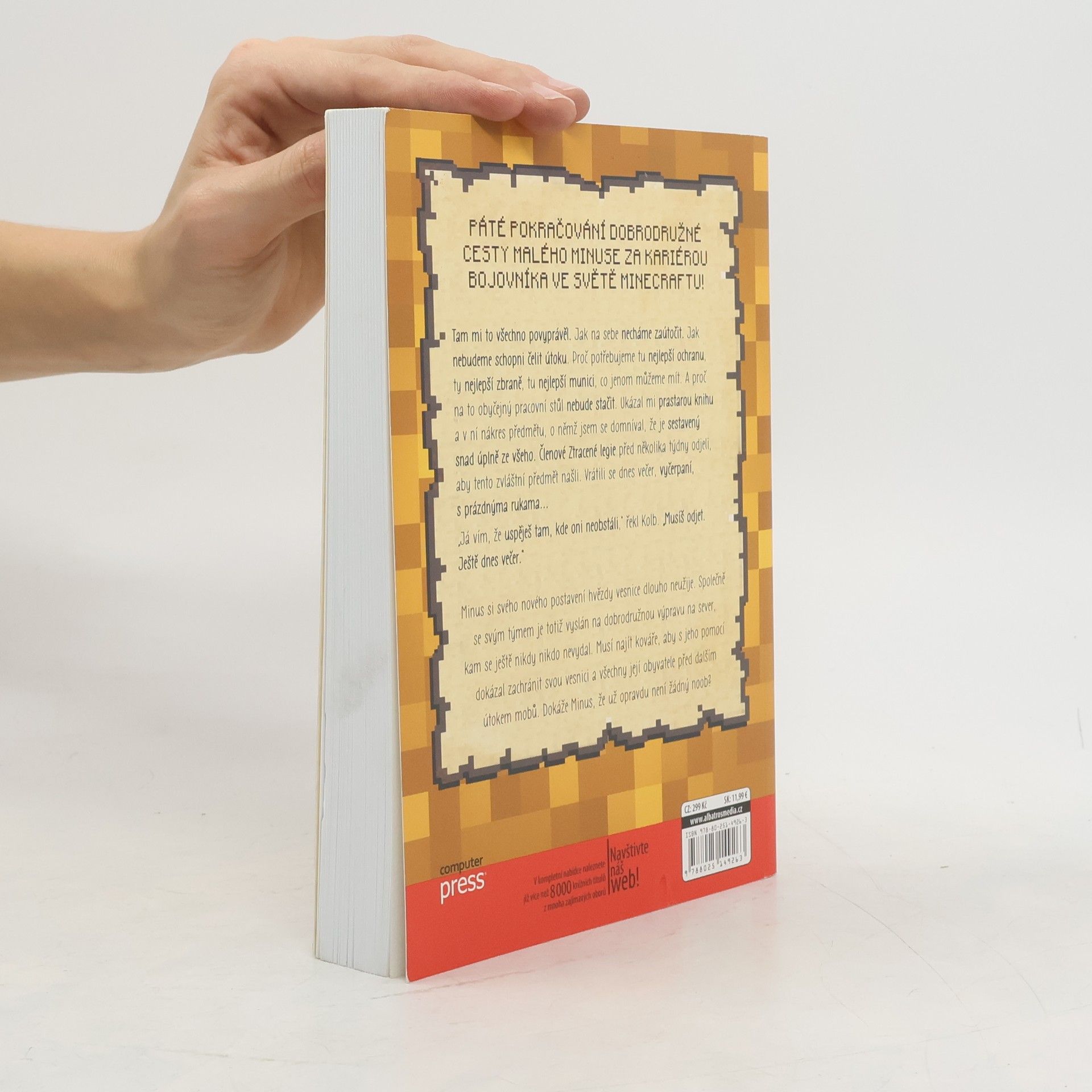 Páté pokračování dobrodružné cesty malého minuse za kariérou bojovníka ve světě Minecraftu! Tam mi to všechno povyprávěl. Jak na sebe necháme zaútočit. Jak nebudeme schopni čelit útoku. Proč potřebujeme tu nejlepší ochranu, ty nejlepší zbraně, tu nejlepší munici, co jenom můžeme mít. A proč na to obyčejný pracovní stůl nebude stačit. Ukázal mi prastarou knihu a v ní nákres předmětu, o němž jsem se domníval, že je sestavený snad úplně ze všeho. Členové Ztracené legie před několika týdny odjeli, aby tento zvláštní předmět našli. Vrátili se dnes večer, vyčerpaní, s prázdnýma rukama... „Já vím, že uspěješ tam, kde oni neobstáli,“ řekl Kolb. „Musíš odjet. Ještě dnes večer.“ Minus si svého nového postavení hvězdy vesnice dlouho neužije. Společně se svým týmem je totiž vyslán na dobrodružnou výpravu na sever, kam se ještě nikdy nikdo nevydal. Musí najít kováře, aby s jeho pomocí dokázal zachránit svou vesnici a všechny její obyvatele před dalším útokem mobů. Dokáže Minus, že už opravdu není žádný noob? Přeloženo z francouzské verze anglického originálu.