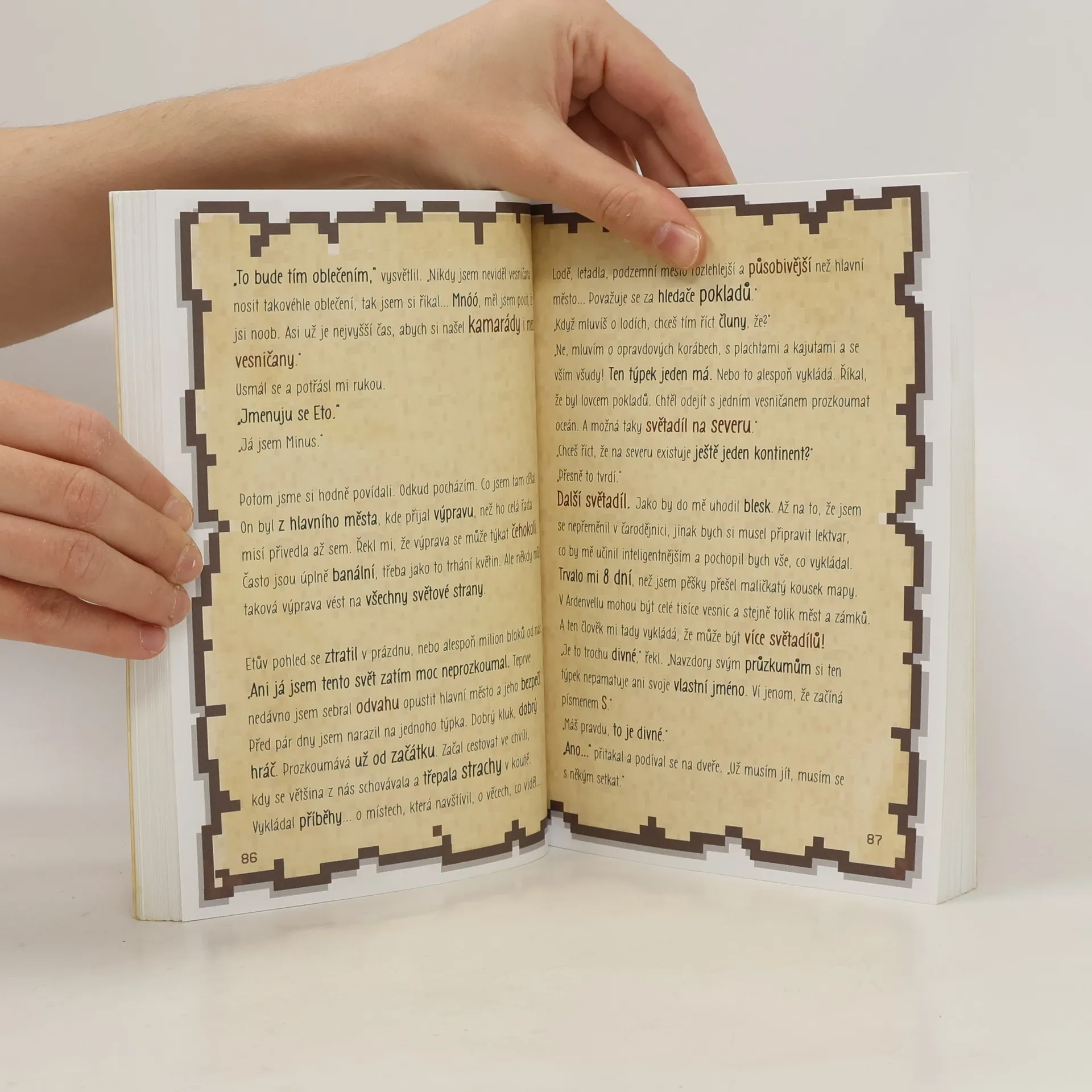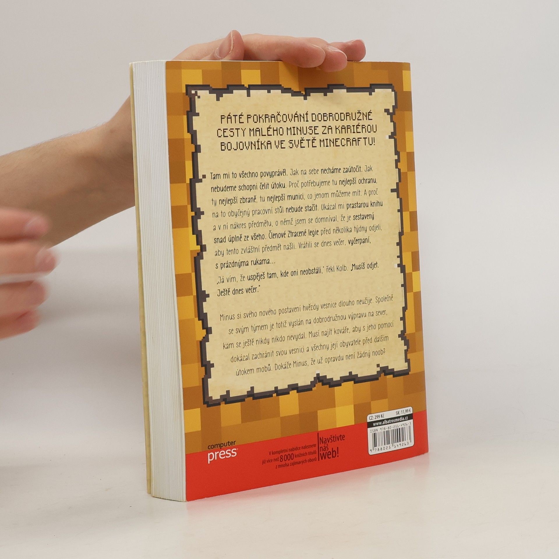 Páté pokračování dobrodružné cesty malého minuse za kariérou bojovníka ve světě Minecraftu! Tam mi to všechno povyprávěl. Jak na sebe necháme zaútočit. Jak nebudeme schopni čelit útoku. Proč potřebujeme tu nejlepší ochranu, ty nejlepší zbraně, tu nejlepší munici, co jenom můžeme mít. A proč na to obyčejný pracovní stůl nebude stačit. Ukázal mi prastarou knihu a v ní nákres předmětu, o němž jsem se domníval, že je sestavený snad úplně ze všeho. Členové Ztracené legie před několika týdny odjeli, aby tento zvláštní předmět našli. Vrátili se dnes večer, vyčerpaní, s prázdnýma rukama... „Já vím, že uspěješ tam, kde oni neobstáli,“ řekl Kolb. „Musíš odjet. Ještě dnes večer.“ Minus si svého nového postavení hvězdy vesnice dlouho neužije. Společně se svým týmem je totiž vyslán na dobrodružnou výpravu na sever, kam se ještě nikdy nikdo nevydal. Musí najít kováře, aby s jeho pomocí dokázal zachránit svou vesnici a všechny její obyvatele před dalším útokem mobů. Dokáže Minus, že už opravdu není žádný noob? Přeloženo z francouzské verze anglického originálu.