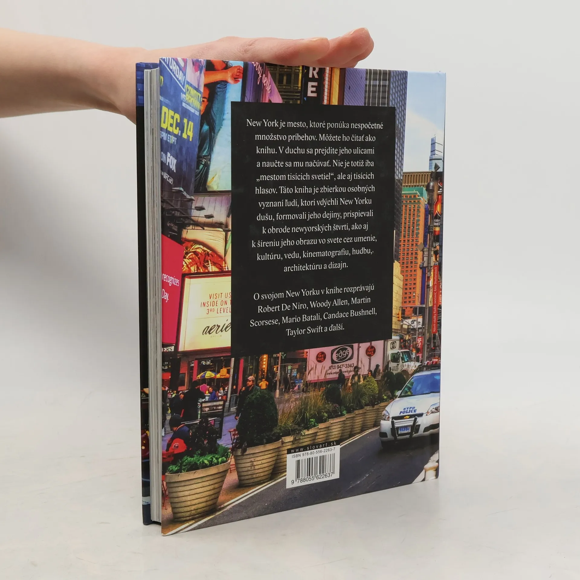 New York je mesto, ktoré ponúka nespočetné množstvo príbehov. Môžete ho čítať ako knihu. V duchu sa prejdite jeho ulicami a naučte sa načúvať mu. Nie je totiž iba „mestom tisícich svetiel", ale aj tisícich hlasov. Táto kniha je zbierkou osobných vyznaní ľudí, ktorí vdýchli New Yorku dušu, formovali jeho dejiny, prispievali k obrode newyorských štvrtí, ako aj k šíreniu jeho obrazu vo svete cez umenie, kultúru, vedu, kinematografiu, hudbu, architektúru a dizajn. O svojom New Yorku rozprávajú: Robert De Niro, Woody Allen, Martin Scorsese, Mario Batali, Candace Bushnell, Taylor Swift a ďalší.