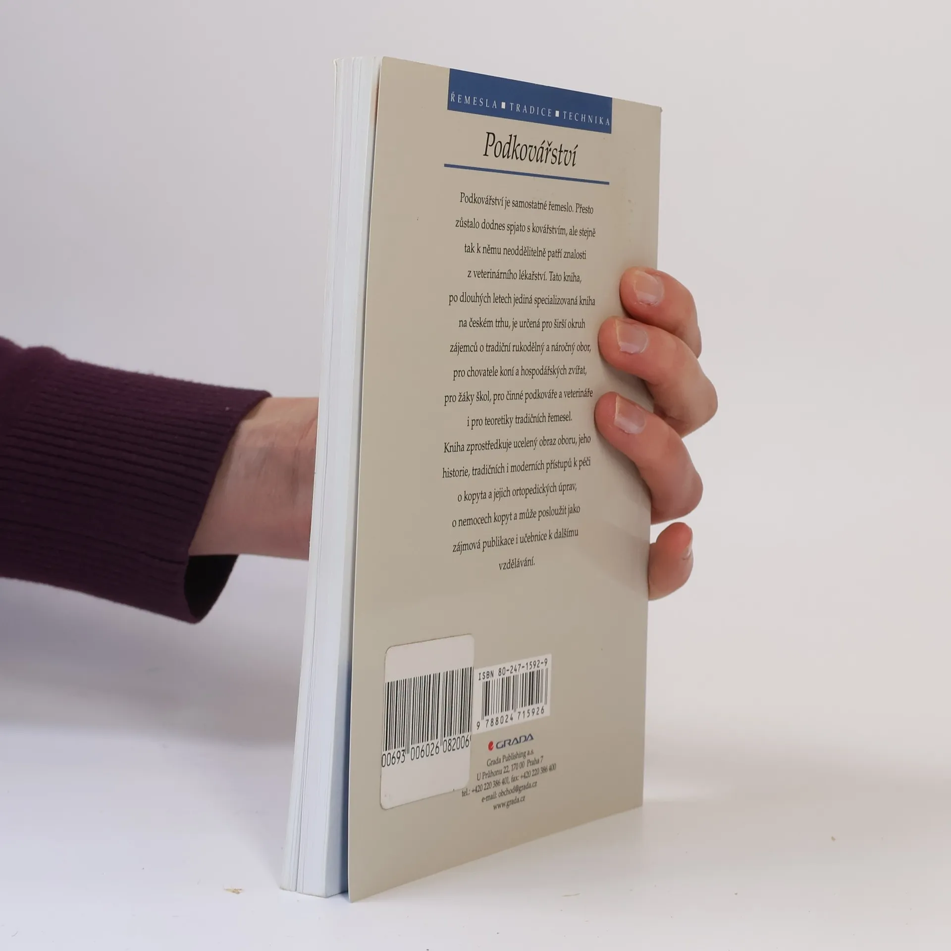 Podkovářství je samostatné řemeslo. Přesto zůstalo dodnes spjato s kovářstvím, ale stejně tak k němu neoddělitelně patří znalosti z veterinárního lékařství. Tato kniha, po dlouhých letech jediná specializovaná kniha na českém trhu, je určená pro širší okruh zájemců o tradiční rukodělný a náročný obor, pro chovatele koní a hospodářských zvířat, pro žáky škol, pro činné podkováře a veterináře i pro teoretiky tradičních řemesel.