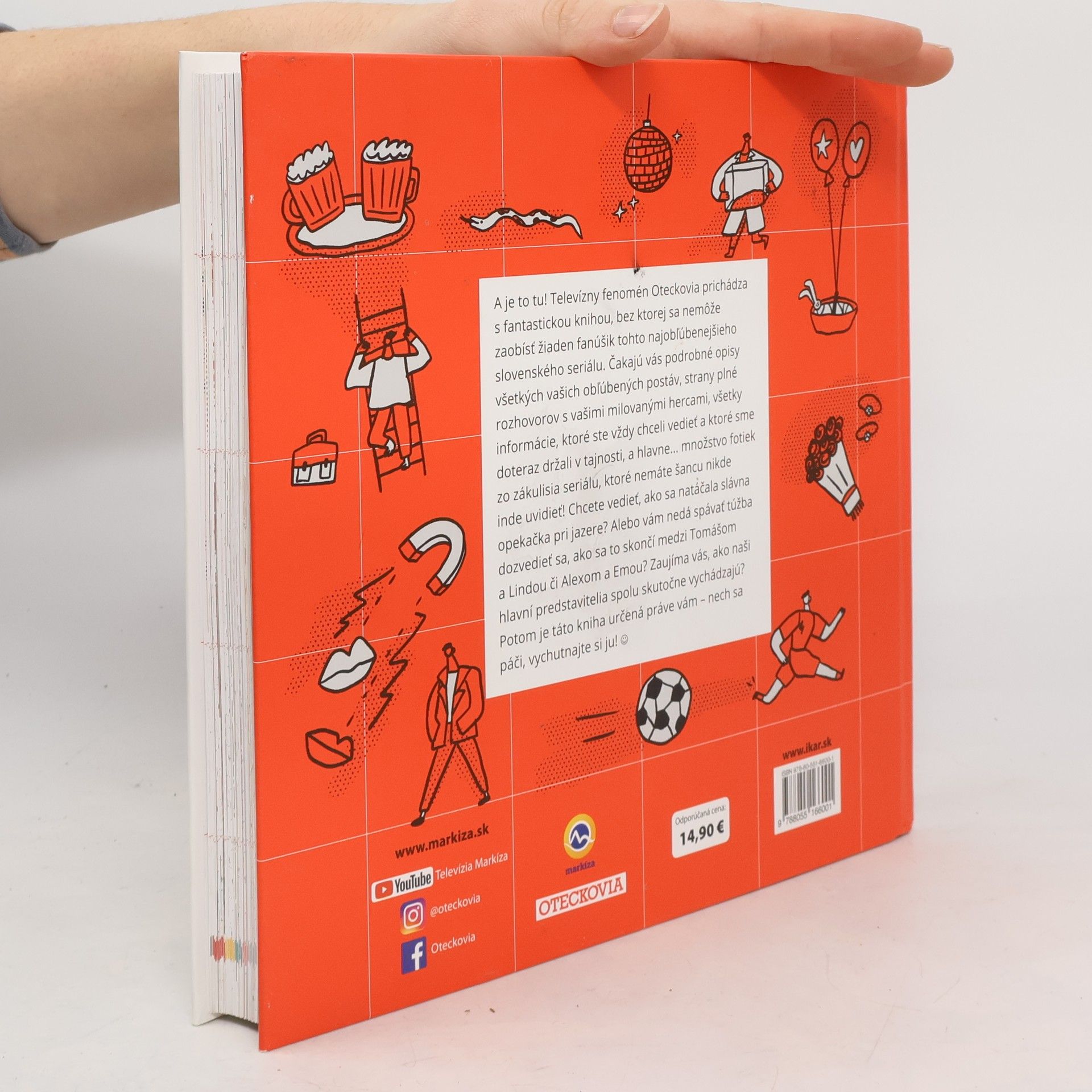 A je to tu! Televízny fenomén Oteckovia prichádza s fantastickou knihou, bez ktorej sa nemôže zaobísť žiaden fanúšik tohto najobľúbenejšieho slovenského seriálu. Čakajú vás podrobné opisy všetkých vašich obľúbených postáv, strany plné rozhovorov s vašimi milovanými hercami, všetky informácie, ktoré ste vždy chceli vedieť a ktoré sme doteraz držali v tajnosti, a hlavne... množstvo fotiek zo zákulisia seriálu, ktoré nemáte šancu nikde inde uvidieť! Chcete vedieť, ako sa natáčala slávna opekačka pri jazere? Alebo vám nedá spávať túžba dozvedieť sa, ako sa to skončí medzi Tomášom a Lindou či Alexom a Emou? Zaujíma vás, ako naši hlavní predstavitelia spolu skutočne vychádzajú? Potom je táto kniha určená práve vám – nech sa páči, vychutnajte si ju!