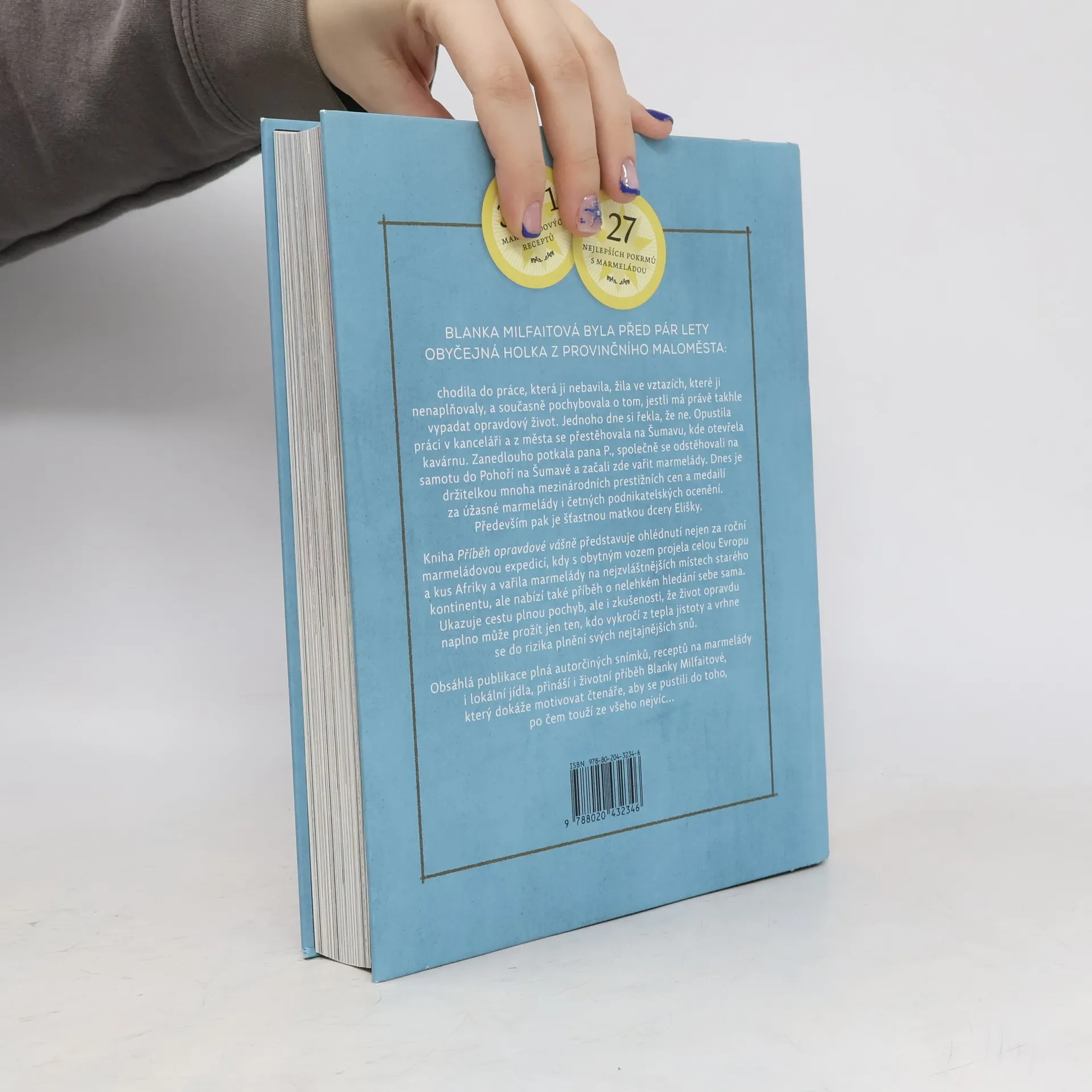 BLANKA MILFAITOVÁ byla obyčejná holka: chodila do práce, která ji nebavila, žila ve vztazích, které ji nenaplňovaly, a pochybovala o tom, jestli tohle je ten skutečný život. Jednoho den si řekla, že ne. Opustila práci v kanceláři, ukončila nefunkční vztah a z velkého města se přestěhovala na Šumavu, kde začala vařit marmelády. Poctivost v práci a upřímnost k sobě samé ji posunuly o světlené roky dopředu. Dnes je držitelkou několika ocenění za nejlepší marmeládu na světě a šťastnou matkou dcery Elišky. Kniha Příběh opravdové vášně představuje ohlédnutí nejen za roční marmeládovou expedicí, kdy s obytným vozem projela celou Evropu a kus Afriky a vařila marmelády na nejrůznějších místech starého kontinentu, ale nabízí také příběh o hledání sebe sama. Obsáhlá publikace plná autorčiných snímků, receptů na marmelády i lokální jídla, přináší i životní příběh Blanky Milfaitové, který dokáže motivovat čtenáře k tomu, aby se pustili do toho, po čem touží ze všeho nejvíc…