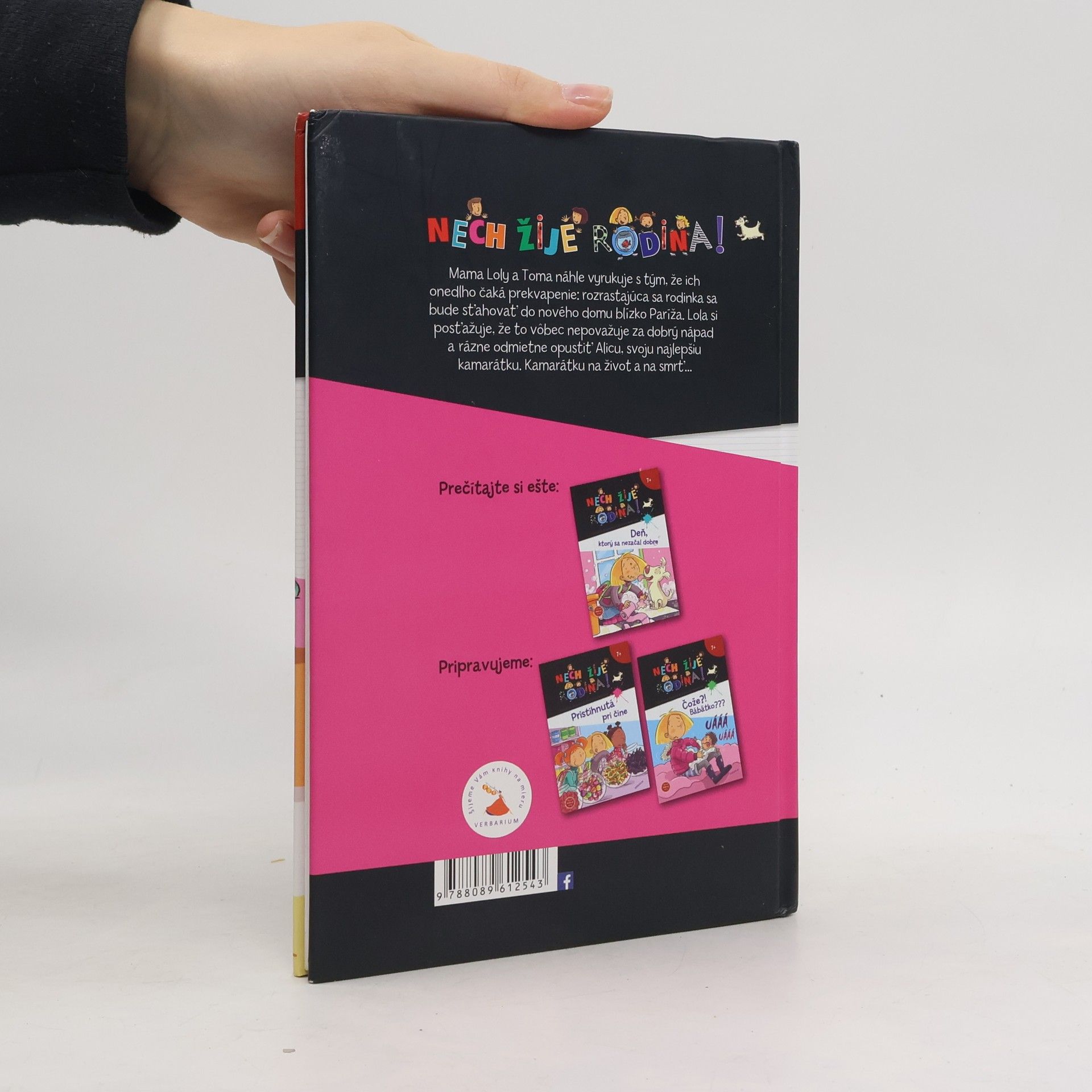 Mama Loly a Toma náhle vyrukuje s tým, že ich onedlho čaká prekvapenie: rozrastajúca sa rodinka sa bude sťahovať do nového domu blízko Paríža. Lola si posťažuje, že to vôbec nepovažuje za dobrý nápad a rázne odmietne opustiť Alicu, svoju najlepšiu kamarátku. Kamarátku na život a na smrť... Krátke príbehy o každodennom živote zmiešanej rodiny: matka-novinárka, zahltená prácou, si prinesie do nového vzťahu dve deti - Toma, 14-ročného syna v puberte, fanúšika skateboardingu, ktorý má večne na ušiach slúchadlá a Lolu, jeho 8-ročnú sestru, ktorá vtipne rozpráva príbehy cez uhol pohľadu malého dievčatka a sestry. Pierre, nový partner ich mamy, má z predošlého vzťahu dvojčatá - chlapcov, ktorí k nim často prichádzajú a Lole poriadne lezú na nervy. A čo ešte, keď sa rodičia rozhodnú mať ďalšie, spoločné dieťa? Do toho si nájde partnerku aj ich vlastný otec a do domu pribudne aj pes a o vtipné situácie nie je vôbec núdza. Úspešný francúzsky seriál, písaný zrozumiteľným jazykom 8-ročného dievčatka, reflektuje dnešný svet nanovo poskladaných rodín a aj vďaka veselým a farebným ilustráciam sa dôsledne pridržiava detskej optiky.