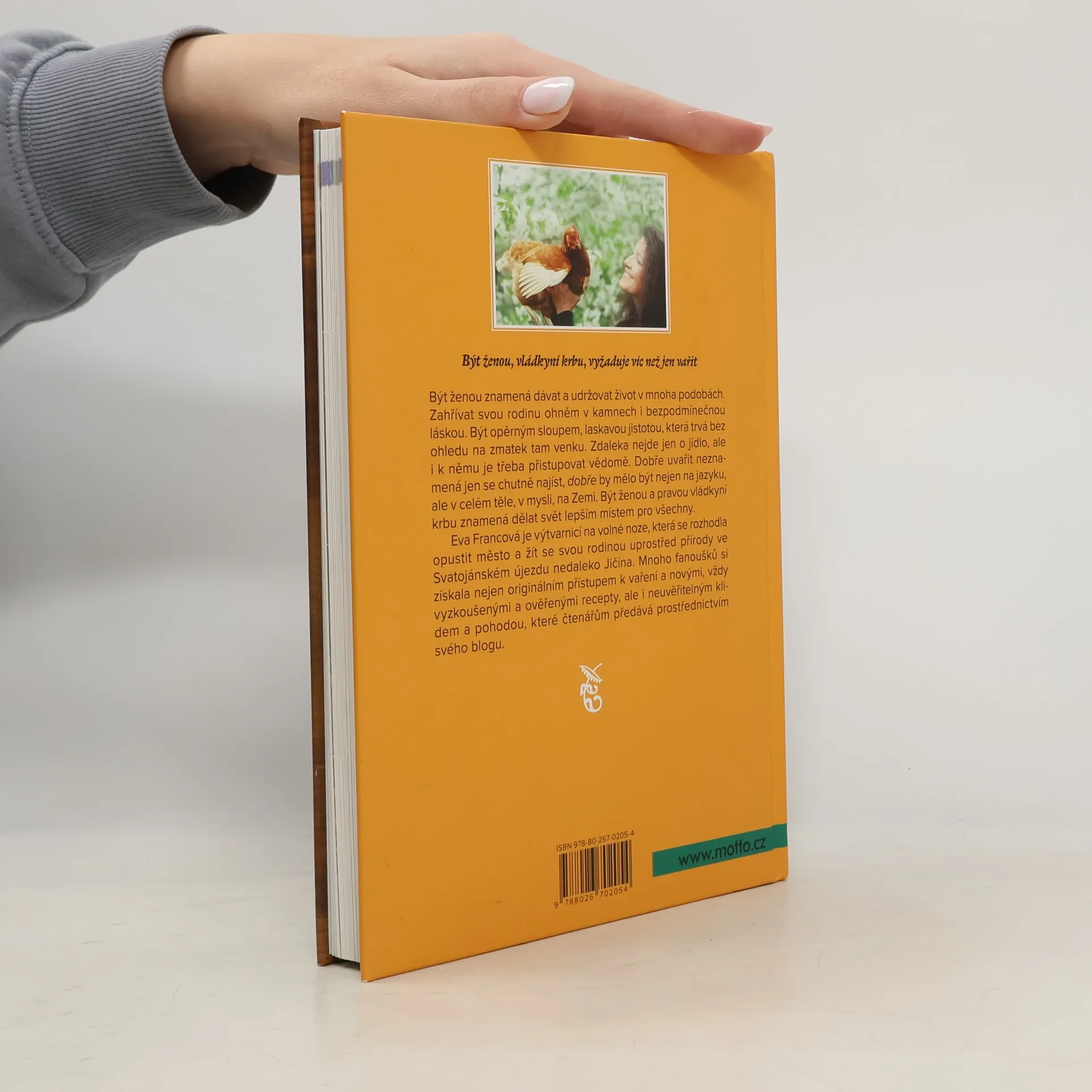 Být ženou, vládkyní krbu, vyžaduje víc než jen vařit. Být ženou znamená dávat a udržovat život v mnoha podobách. Zahřívat svou rodinu ohněm v kamnech i bezpodmínečnou láskou. Být opěrným sloupem, laskavou jistotou, která trvá bez ohledu na zmatek tam venku. Zdaleka nejde jen o jídlo, ale i k němu je třeba přistupovat vědomě. Dobře uvařit neznamená jen se chutně najíst, „dobře“ by mělo být nejen na jazyku, ale v celém těle, v mysli, na Zemi. Být ženou a pravou vládkyní krbu znamená dělat svět lepším místem pro všechny. Eva Francová je výtvarnicí na volné noze, která se rozhodla opustit město a žít se svou rodinou uprostřed přírody ve Svatojánském újezdu nedaleko Jičína. Mnoho fanoušků si získala nejen originálním přístupem k vaření a novými, vždy vyzkoušenými a ověřenými recepty, ale i neuvěřitelným klidem a pohodou, které čtenářům předává prostřednictvím svého blogu.