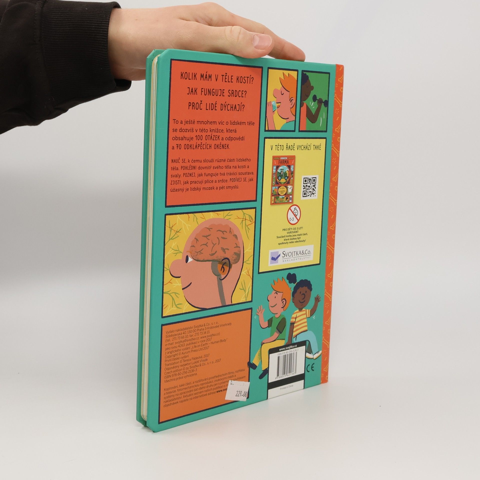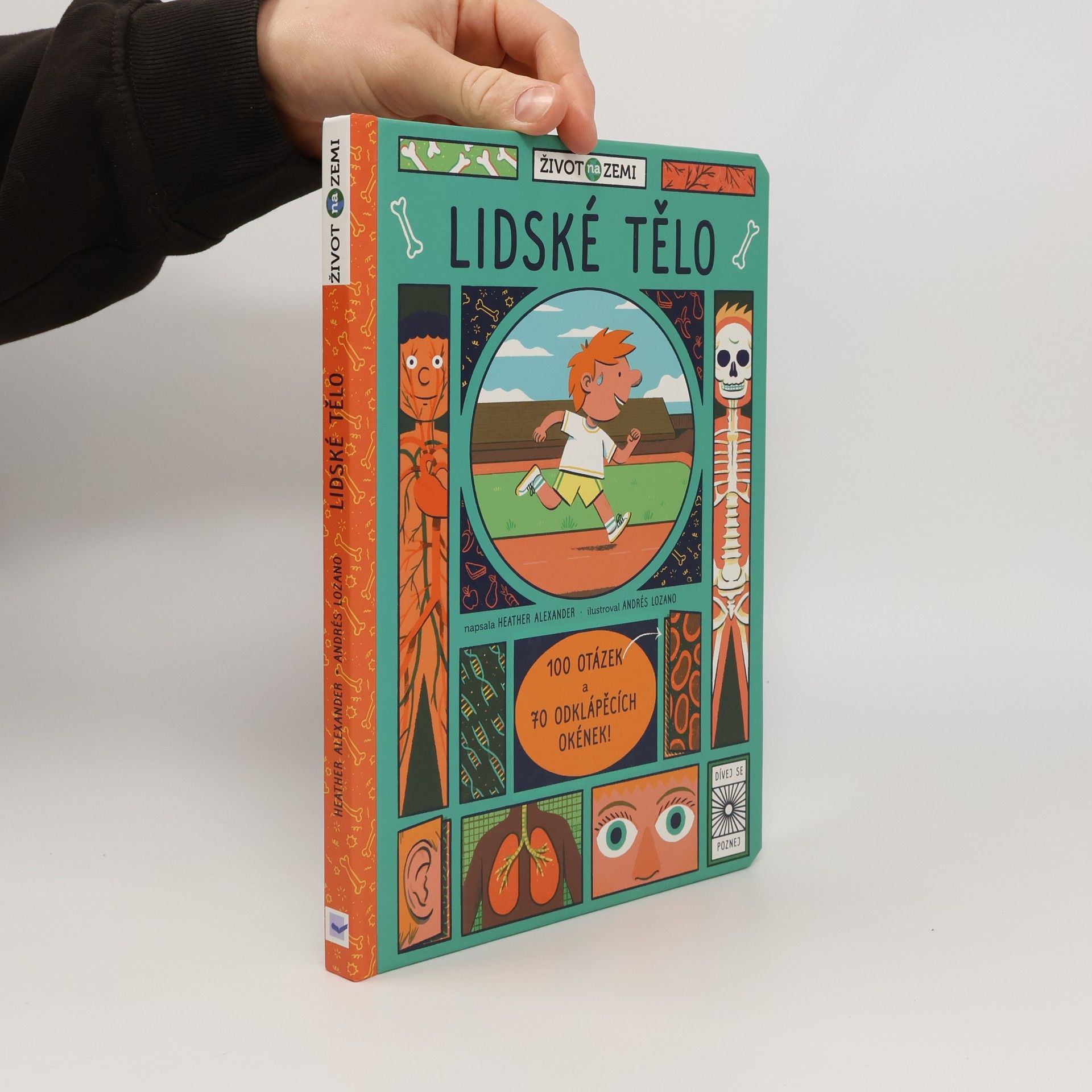 Poznej, k čemu slouží různé části lidského těla, v knížce, která obsahuje 100 otázek a odpovědí a 70 odklápěcích okének. Kolik máš v těle kostí? Jak funguje srdce? Proč lidé dýchají? To a ještě mnohem víc o lidském těle se dozvíš v této knížce, která obsahuje 100 otázek a odpovědí a 70 odklápěcích okének. Poznej, k čemu slouží různé části lidského těla. Nakoukni dovnitř svého těla na kosti a svaly. Nauč se, jak funguje tvá trávicí soustava. Zjisti, jak pracují plíce a srdce. Podívej se, jak úžasný je lidský mozek a pět smyslů.