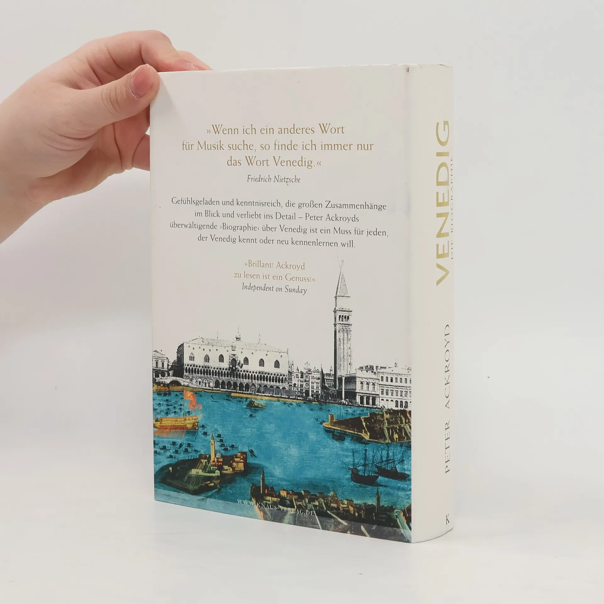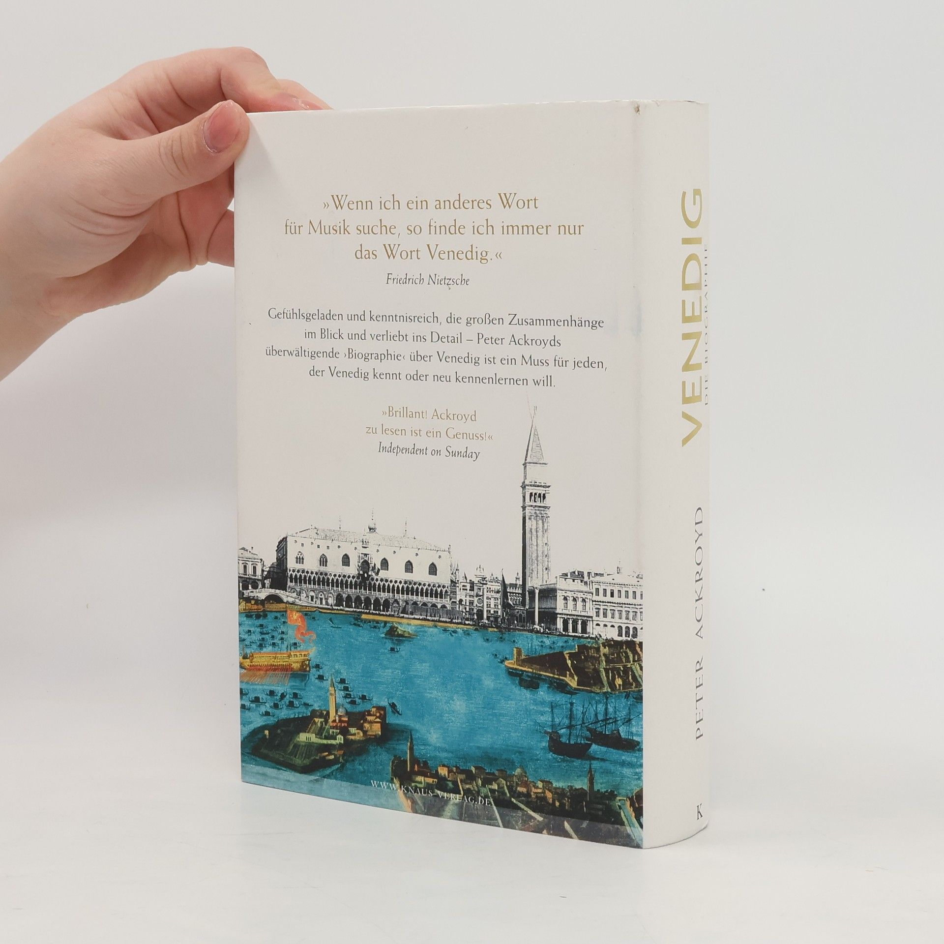 Ein Muss für alle Venedig-Liebhaber – die Biographie von 'La Serenissima' Seine London-Biographie ist legendär und setzt bis heute Maßstäbe, denn Peter Ackroyd porträtierte seine Heimatstadt wie ein menschliches Wesen in all ihren Facetten. Nun nähert er sich auf gleiche Weise Venedig. Jedes Jahr besuchen über zwanzig Millionen Menschen diese mythische Stadt. Peter Ackroyd greift in seiner einzigartigen Biographie die mit Venedig verbundenen Bilder und Emotionen auf und unterlegt sie mit zahllosen Fakten und überraschenden Informationen. Dabei spannt er den Bogen über sechzehn Jahrhunderte, von den ersten Bewohnern, die in der Lagune Zuflucht suchten, bis zu den Touristenströmen, die heute die Stadt überfluten. Alle beschwört er herauf: die Händler im Rialto und die Juden in ihrem Ghetto, die Glasbläser von Murano und die großen Malerfürsten Bellini, Tizian, Tintoretto und Tiepolo, die mächtigen Dogen und die stolzen Adeligen. Nichts, weder Kriege noch Pest, weder ökonomische Krisen noch ökologische Katastrophen, vermochten den Willen dieser Stadt zu brechen und machen La Serenissima zu einem Sehnsuchtsort ohnegleichen.