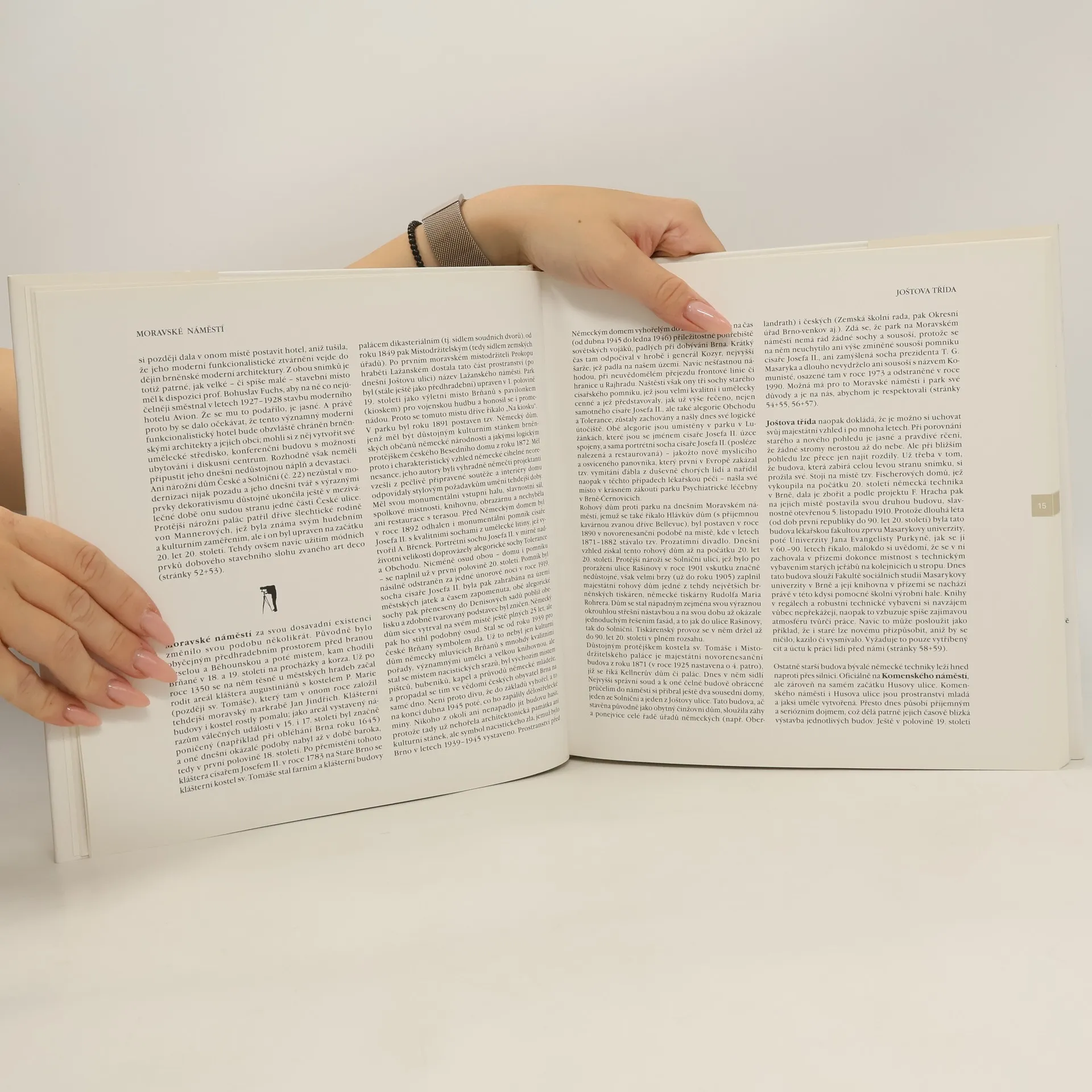 Historií zobrazených míst provází text významné brněnské historičky Mileny Flodrové. Čtenáři se tak nabízí možnost srovnávání změn převážně v centru města a možnost úvah nad významem těchto změn. Kniha je česko-anglická.