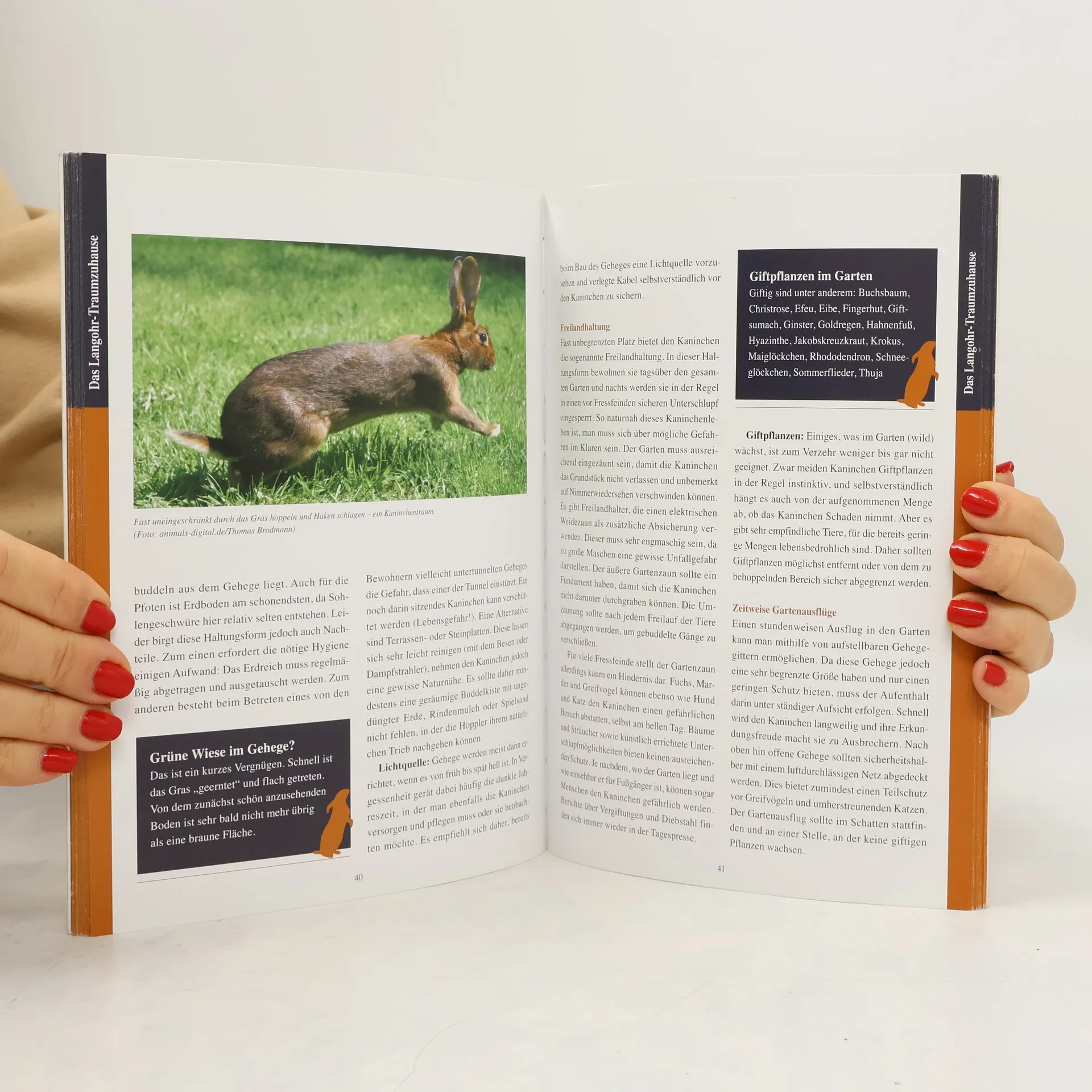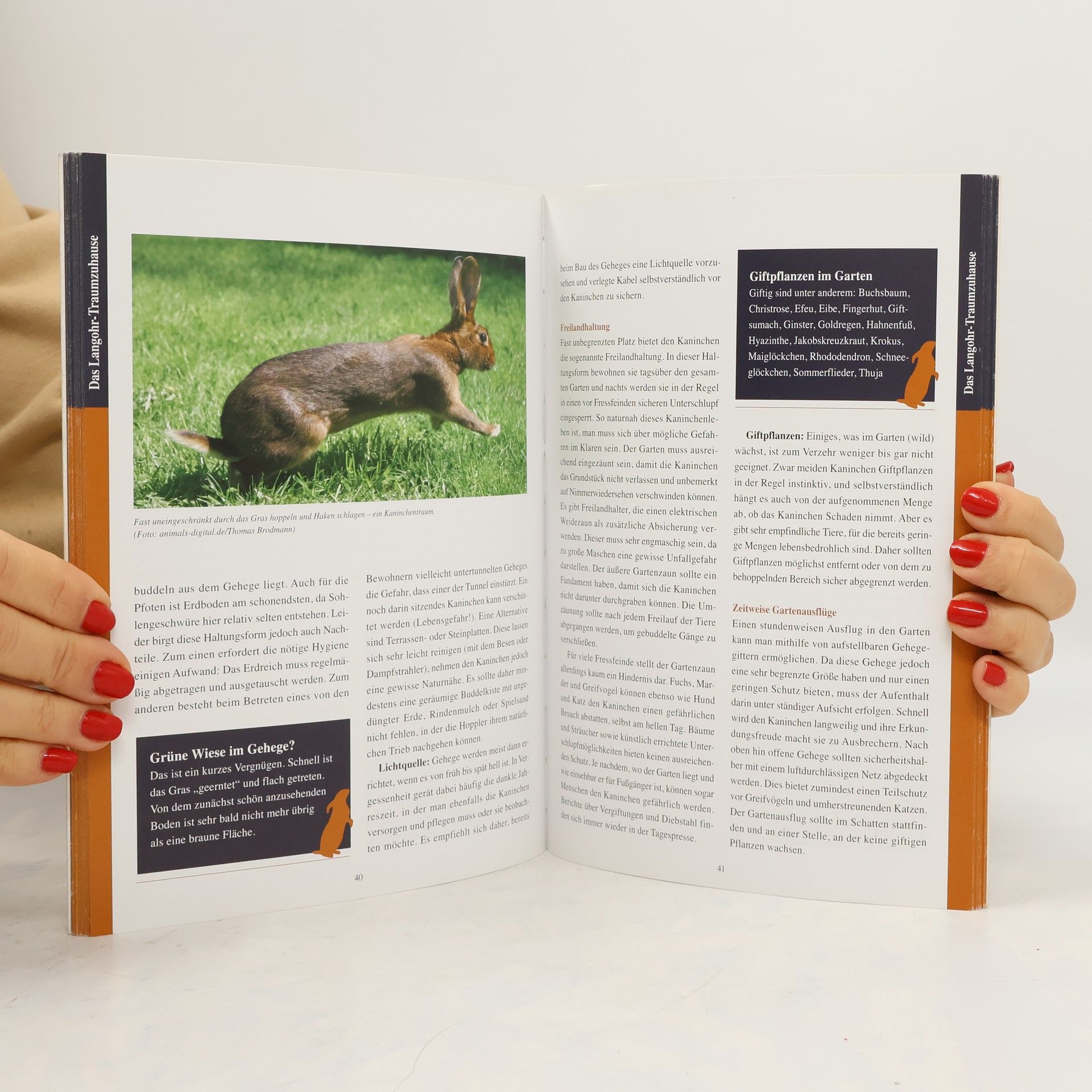Kaninchen gehören nach Hund und Katze zu den beliebtesten Heimtieren. Dieser Ratgeber informiert neue Kaninchenhalter genauso wie langjährige Kaninchenbesitzer über die tiergerechte Haltung, Ernährung und alles Weitere, auf das man beim Zusammenleben mit den Langohren achten sollte. Eine Basis für das Verständnis unserer Hauskaninchen und damit auch die Voraussetzung, ihre Bedürfnisse erfüllen zu können, wird durch einen Blick auf die entfernten Verwandten geschaffen: Die Autorin erläutert das Leben von Wildkaninchen und die Unterschiede zum Feldhasen. Der Ratgeber zeigt, auf welch vielfältige Weise man Kaninchen ein artgerechtes Zuhause bieten kann, egal ob in der Wohnung oder draußen im Garten beziehungsweise auf dem Balkon. Der Leser erfährt außerdem, warum Trockenfutter keine geeignete Kaninchennahrung ist, und wie er seine Kaninchen mit frischem Gemüse und Gesundem aus der Natur richtig ernähren kann. Des Weiteren wird die „Kaninchensprache“ erklärt, Beschäftigungsmöglichkeiten werden vorgestellt und es gibt Tipps für die regelmäßige Pflege bis ins Seniorenalter und die richtige Betreuung im Krankheitsfall.