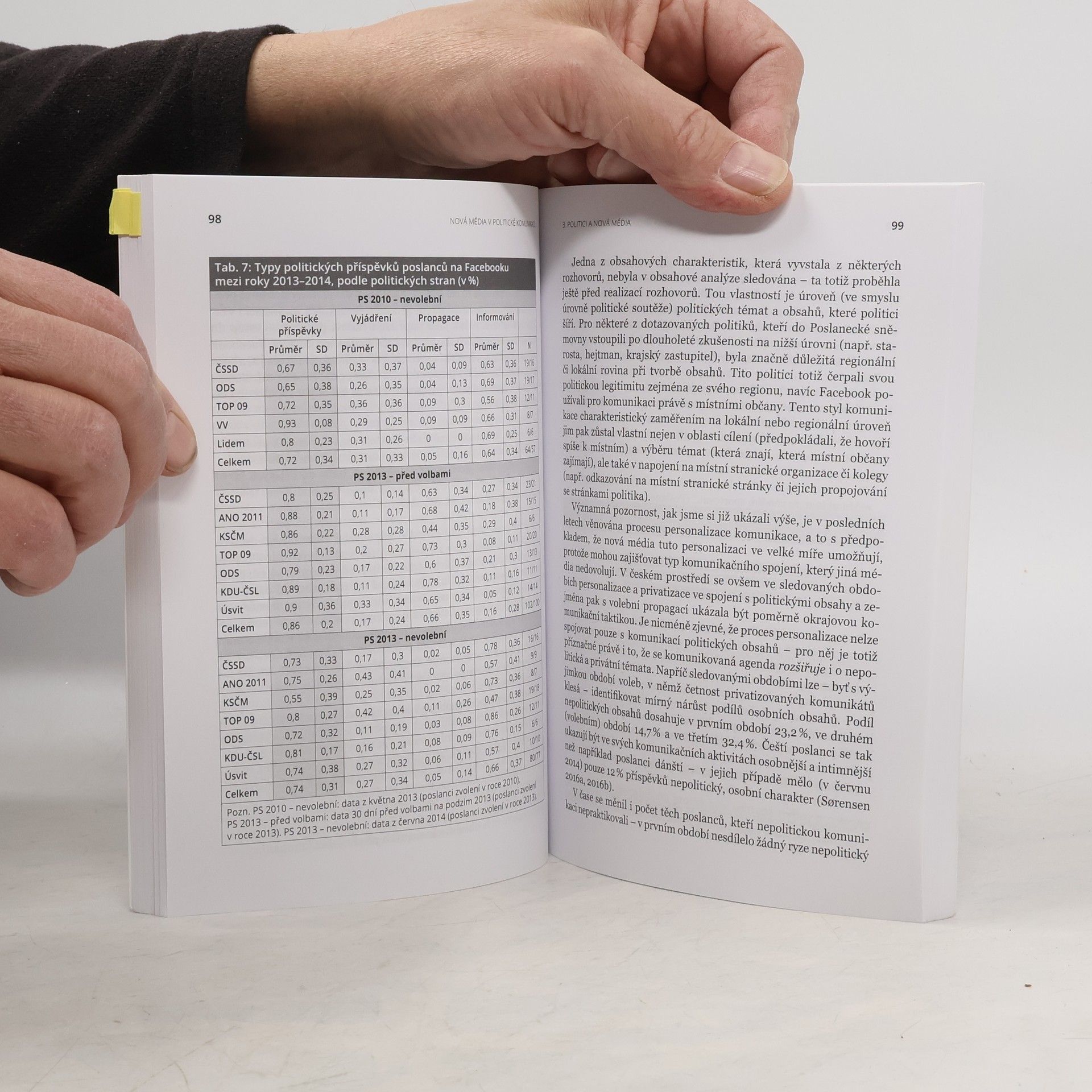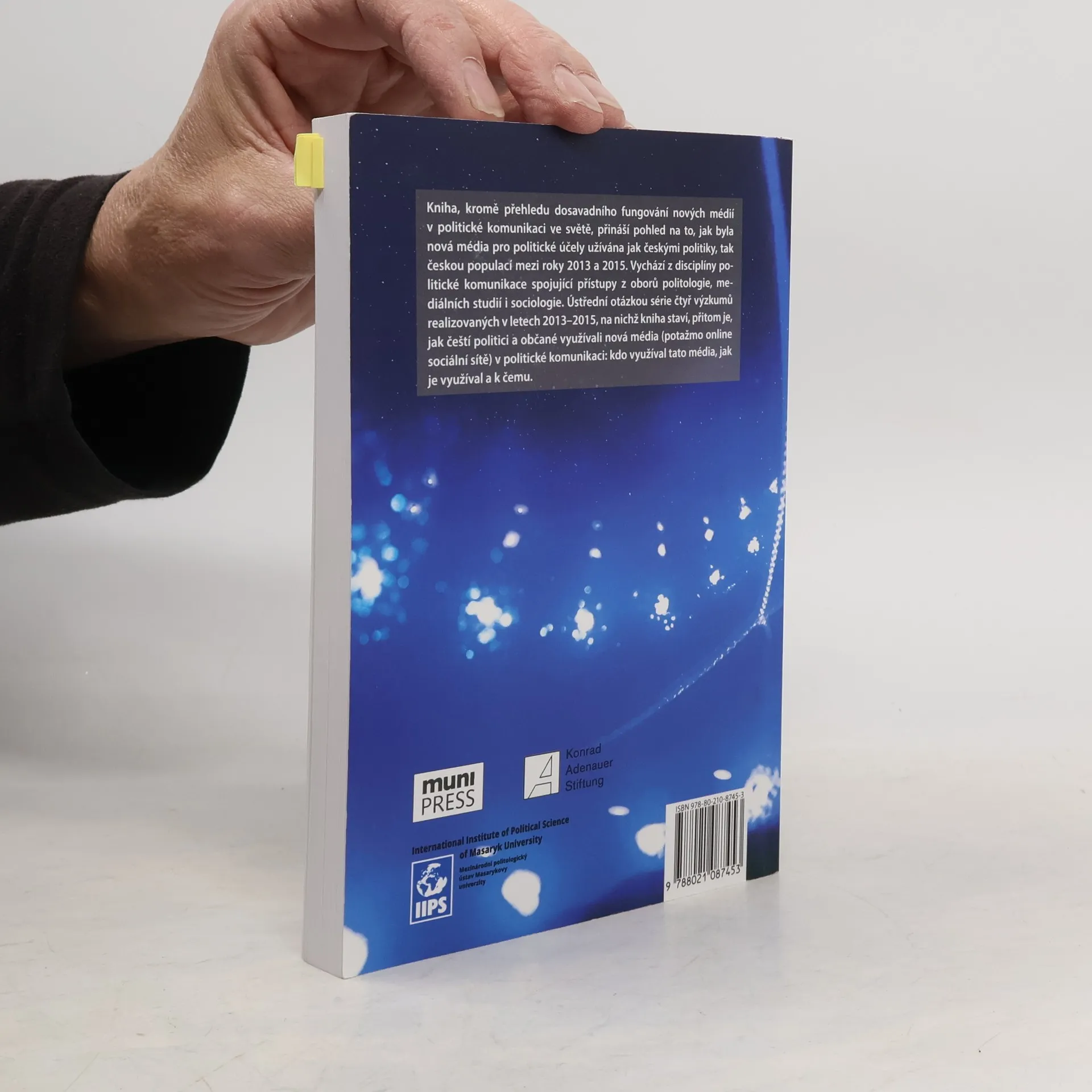 Kniha nejenže nabízí přehled dosavadního fungování nových médií v politické komunikaci ve světě, ale přináší také pohled na to, jak byla nová média pro politické účely užívána českými politiky a českou populací mezi roky 2013 a 2015. Monografie vychází z disciplíny politická komunikace spojující přístupy z oborů politologie, mediálních studií i sociologie. Ústřední otázkou série čtyř výzkumů realizovaných v letech 2013-2015, na nichž kniha staví, přitom je, jak čeští politici a občané využívali nová média (potažmo online sociální sítě) v politické komunikaci: kdo je využíval, jak a k čemu?