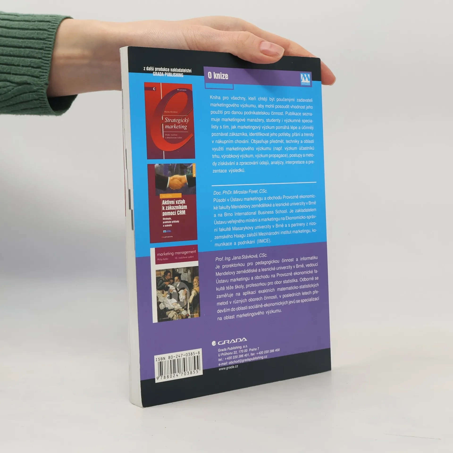 Kniha seznamuje zadavatele marketingového výzkumu, marketéry, studenty i výzkumné specialisty s tím, jak marketingový výzkum pomáhá účinněji poznávat zákazníka, jeho potřeby, přání a trendy v nákupním chování. Objasňuje předmět, techniky a objekt výzkumu, postupy a metody získávání a zpracování údajů, analýzy, interpretace a prezentace výsledků.