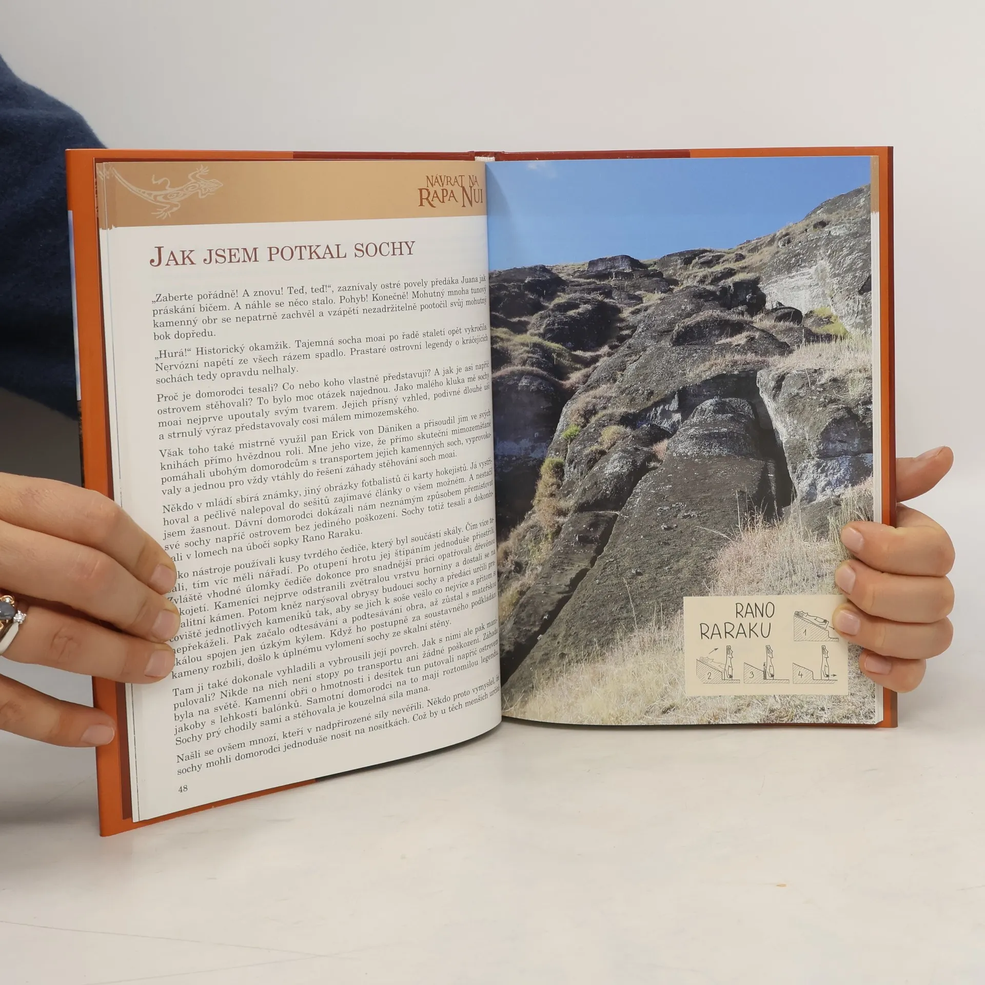 Autor knihy již ve svých devětadvaceti letech rozchodil tajemné sochy na Velikonočním ostrově, v domorodém jazyce zvaném Rapa Nui, a vyřešil tak jednu z nejpopulárnějších archeologických záhad světa. Za to od místních domorodců získal náčelnický titul ariki Too Ko Ihu. Jedinečný ostrov uprostřed Tichého oceánu od té doby navštívil ještě několikrát, aby zde nacházel nové záhadné jevy a pokoušel se pochopit jejich význam. S ohledem na blížící se třísté výročí objevení ostrova předkládá čtenáři v této knize své postřehy, osobní zážitky a místní znalost s humorným nadhledem a zároveň s hlubokým pochopením pro život ostrovanů, obyvatel nejizolovanějšího místa světa. Vše prokládá desítkami unikátních fotografií i vlastních ilustrací a prokládá dosud nepublikovanými ostrovními legendami, sesbíranými místním páterem Englertem. Kniha je ideálním dárkem pro každého, koho vábí dálky a podlehl jejich záhadám a tajemstvím.