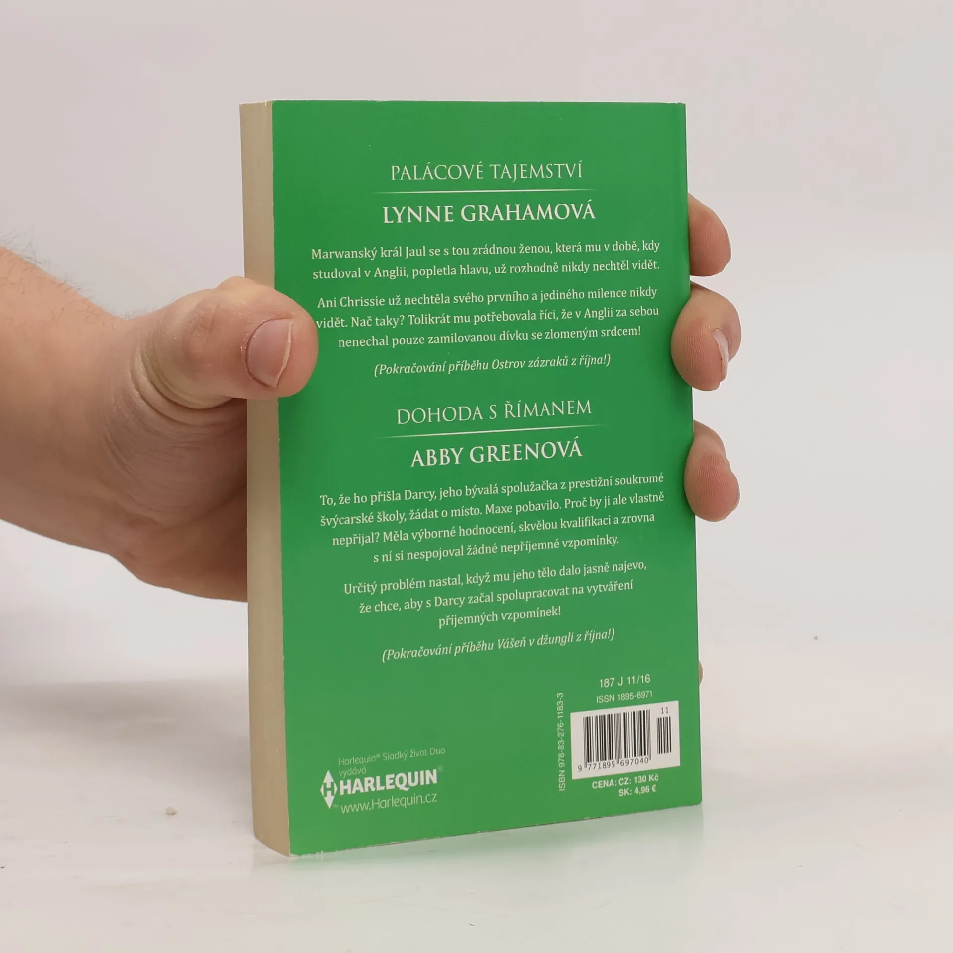 Palácové tajemství (2.díl z minisérie Vázáno zlatem) Marwanský král Jaul se s tou zrádnou ženou, která mu v době, kdy studoval v Anglii, popletla hlavu, už rozhodně nikdy nechtěl vidět. Jenže co mu zbývalo, když se ukázalo, že přes to, co mu tvrdil jeho otec, sňatek, který s ní uzavřel, stále platí? Ani Chrissie už nechtěla svého prvního a jediného milence nikdy vidět. Nač taky? Tolikrát se s ním snažila spojit, tolikrát se pokoušela zjistit, proč se jí nikdy neozval, tolikrát od něj toužila slyšet vysvětlení? Tolikrát mu potřebovala říci, že v Anglii za sebou nenechal pouze zamilovanou dívku se zlomeným srdcem! (Pokračování příběhu Ostrov zázraků z října!) Dohoda s Římanem (2.díl.z minisérie Milionářští bratři) To, že ho přišla Darcy, jeho bývalá spolužačka z prestižní soukromé švýcarské školy, žádat o místo, úspěšného římského finančníka Maxe pobavilo. Proč by ji ale vlastně nepřijal? Měla výborné hodnocení, skvělou kvalifikaci a zrovna s ní si nespojoval žádné nepříjemné vzpomínky. Určitý problém nastal, když mu jeho tělo dalo jasně najevo, že chce, aby s Darcy začal spolupracovat na vytváření příjemných vzpomínek!