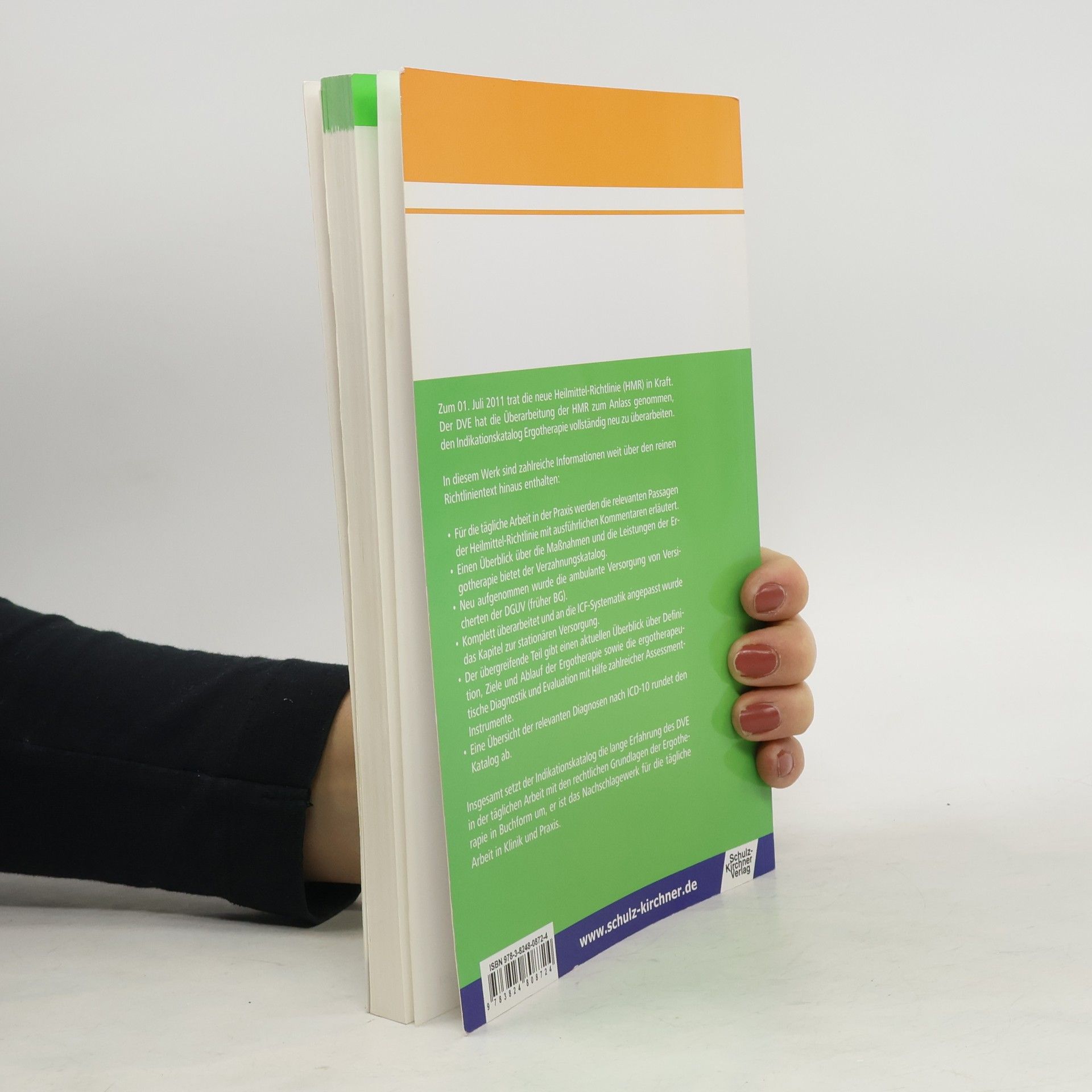 Am 1. Juli 2011 trat die neue Heilmittel-Richtlinie (HMR) in Kraft. Der DVE hat die Überarbeitung der HMR zum Anlass genommen, den Indikationskatalog Ergotherapie vollständig neu zu überarbeiten. In diesem Werk sind zahlreiche Informationen weit über den reinen Richtlinientext br>br>Für die tägliche Arbeit in der Praxis werden die relevanten Passagen der Heilmittel-Richtlinie mit ausführlichen Kommentaren erläutert.br>br>Einen Überblick über die Maßnahmen und die Leistungen der Ergotherapie bietet der Verzahnungskatalog.br>br>Neu aufgenommen wurde die ambulante Versorgung von Versicherten der DGUV (früher BG).