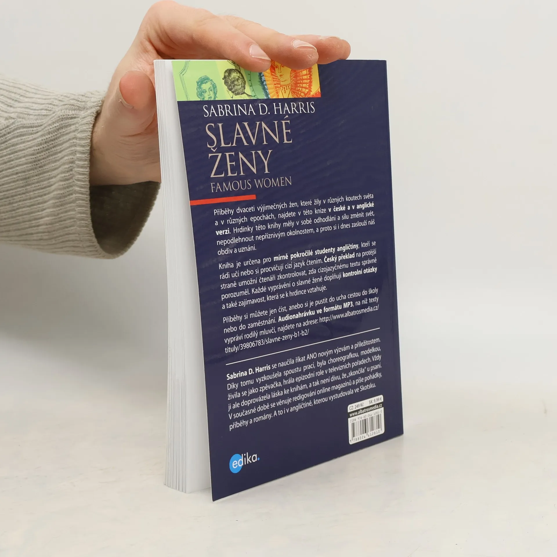 Příběhy dvaceti výjimečných žen, které žily v různých koutech světa a v různých epochách, najdete v této knize v české a v anglické verzi. Hrdinky této knihy měly v sobě odhodlání a sílu změnit svět, nepodlehnout nepříznivým okolnostem, a proto si i dnes zaslouží náš obdiv a uznání. Kniha je určena pro mírně pokročilé studenty angličtiny, kteří se rádi učí nebo si procvičují cizí jazyk čtením. Český překlad na protější straně umožní čtenáři zkontrolovat, zda cizojazyčnému textu správně porozuměl. Každé vyprávění o slavné ženě doplňují otázky na porozumění a také zajímavost, která se k hrdince vztahuje. Příběhy si můžete jen číst, anebo si je pustit do ucha cestou do školy nebo do zaměstnání. Audionahrávku ve formátu MP3, na níž texty namluvil rodilý mluvčí - Charles du Parc, najdete na stránkách Albatros Media.