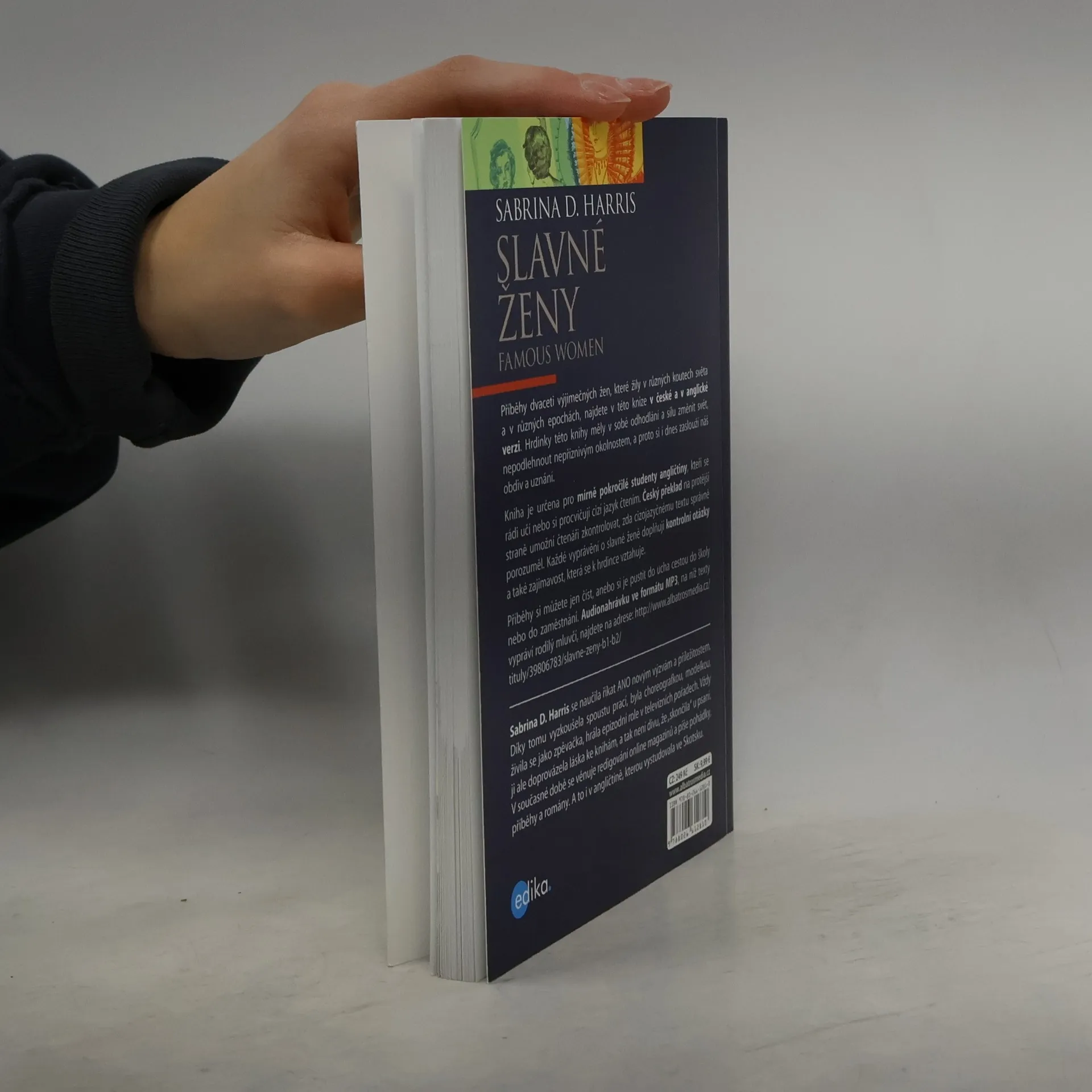 Příběhy dvaceti výjimečných žen, které žily v různých koutech světa a v různých epochách, najdete v této knize v české a v anglické verzi. Hrdinky této knihy měly v sobě odhodlání a sílu změnit svět, nepodlehnout nepříznivým okolnostem, a proto si i dnes zaslouží náš obdiv a uznání. Kniha je určena pro mírně pokročilé studenty angličtiny, kteří se rádi učí nebo si procvičují cizí jazyk čtením. Český překlad na protější straně umožní čtenáři zkontrolovat, zda cizojazyčnému textu správně porozuměl. Každé vyprávění o slavné ženě doplňují otázky na porozumění a také zajímavost, která se k hrdince vztahuje. Příběhy si můžete jen číst, anebo si je pustit do ucha cestou do školy nebo do zaměstnání. Audionahrávku ve formátu MP3, na níž texty namluvil rodilý mluvčí - Charles du Parc, najdete na stránkách Albatros Media.
