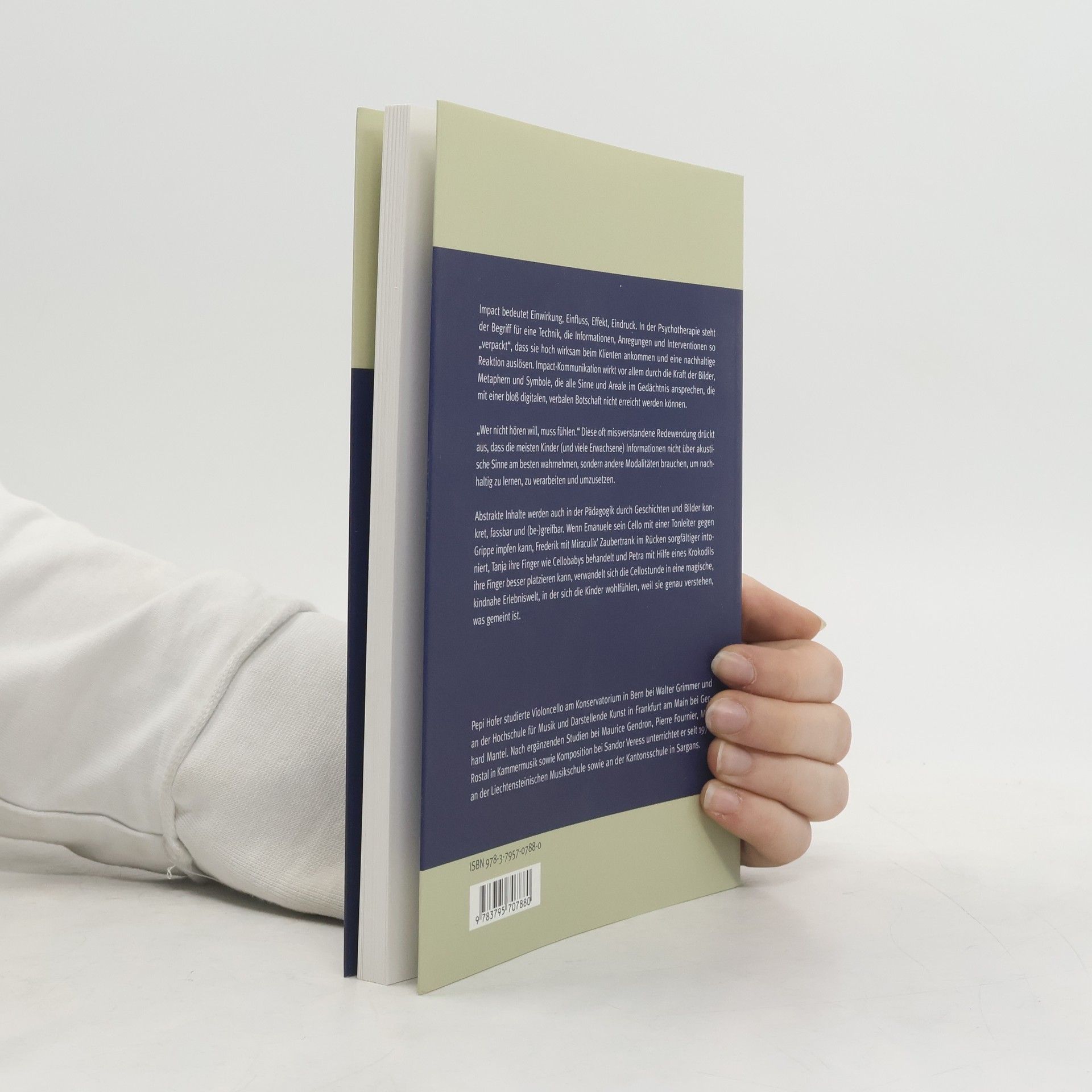 Impact bedeutet Einwirkung, Einfluss und Effekt. In der Psychotherapie bezieht sich der Begriff auf eine Technik, die Informationen und Interventionen so gestaltet, dass sie beim Klienten hochwirksam ankommen und nachhaltige Reaktionen auslösen. Impact-Kommunikation nutzt die Kraft von Bildern, Metaphern und Symbolen, um alle Sinne anzusprechen und Gedächtnisareale zu aktivieren, die durch rein verbale Botschaften nicht erreicht werden können. Die Redewendung „Wer nicht hören will, muss fühlen“ verdeutlicht, dass viele Kinder und Erwachsene Informationen nicht akustisch, sondern durch andere Modalitäten besser aufnehmen. Abstrakte Inhalte werden durch Geschichten und Bilder konkret und greifbar. Wenn Emanuele sein Cello mit einer Tonleiter gegen Grippe impfen kann oder Frederik mit Miraculix’ Zaubertrank sorgfältiger intoniert, verwandelt sich die Cellostunde in eine magische Erlebniswelt. Die Kinder fühlen sich wohl, weil sie genau verstehen, was gemeint ist. Pepi Hofer studierte Violoncello am Konservatorium in Bern und an der Hochschule für Musik und Darstellende Kunst in Frankfurt. Nach weiteren Studien unterrichtet er seit 1976 an der Liechtensteinischen Musikschule und an der Kantonsschule in Sargans.