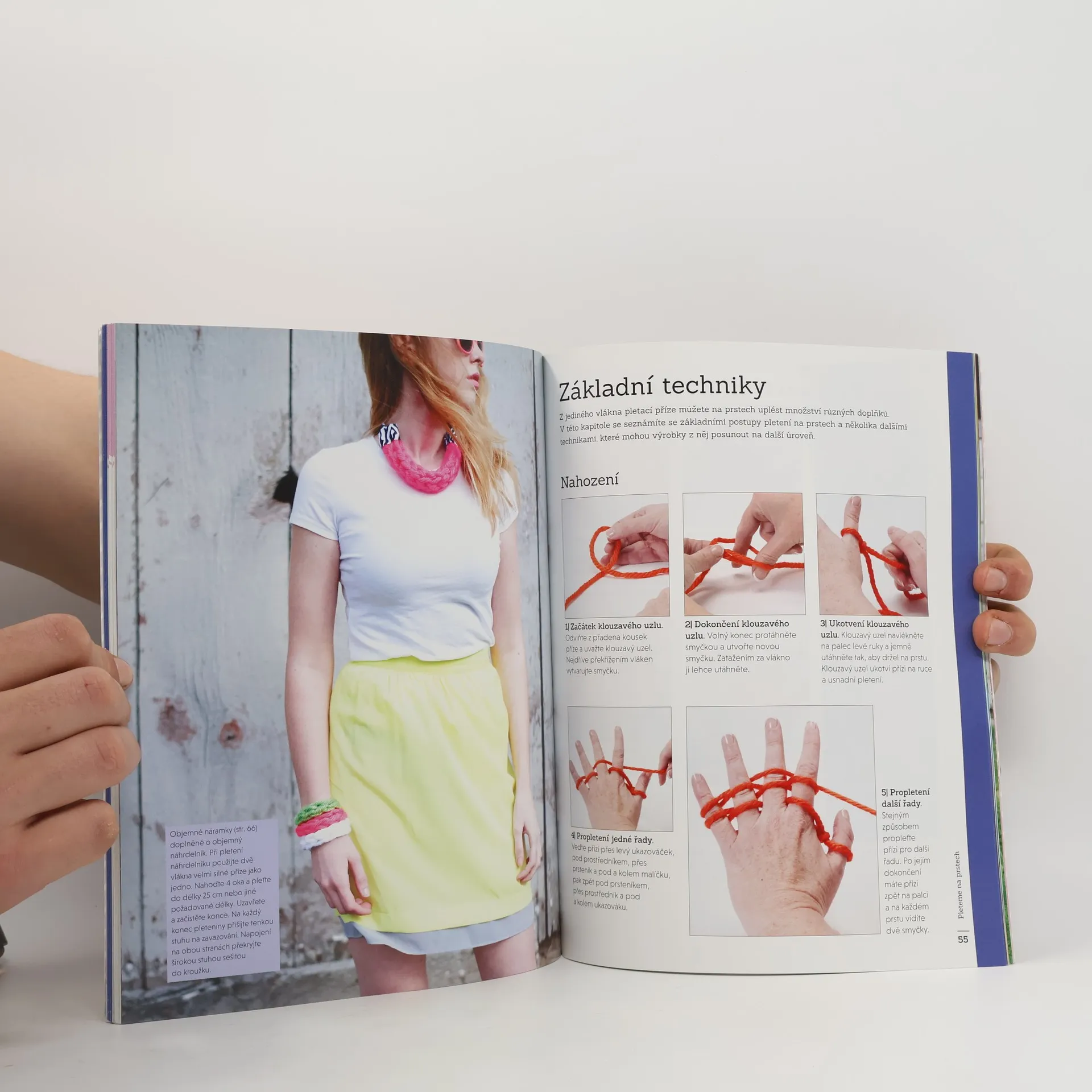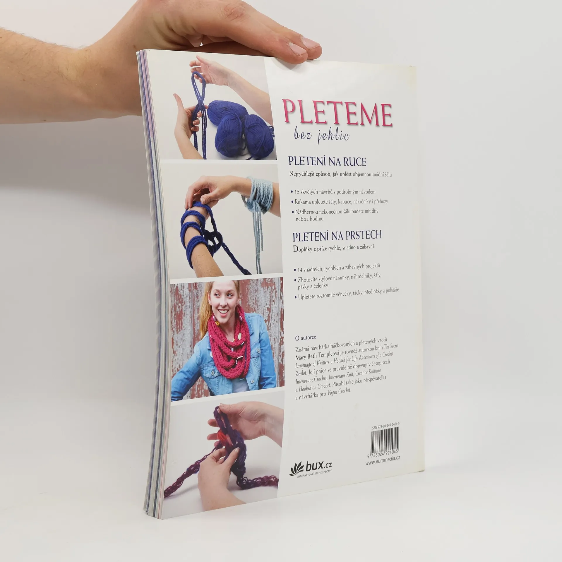 Dvě techniky v jednom: pletení na ruce a na prstech. Hit pletených doplňků! 29 skvělých návrhů s podrobným návodem. Můžete plést kdekoli, jehlice nepotřebujete. Do světa pletení pronikla nová technika. Pletení na ruce a na prstech je zábavný způsob, jak vytvořit během půlhodiny například originální nekonečnou šálu. Je úžasně jednoduché, pomocí rukou a prstů zhotovíte šály, kapuce, nákrčníky, přehozy, stylové náramky, náhrdelníky, šály, pásky a čelenky, roztomilé věnečky, tácky, předložky a polštáře – to vše rychle, jednoduše a bez jehlic.