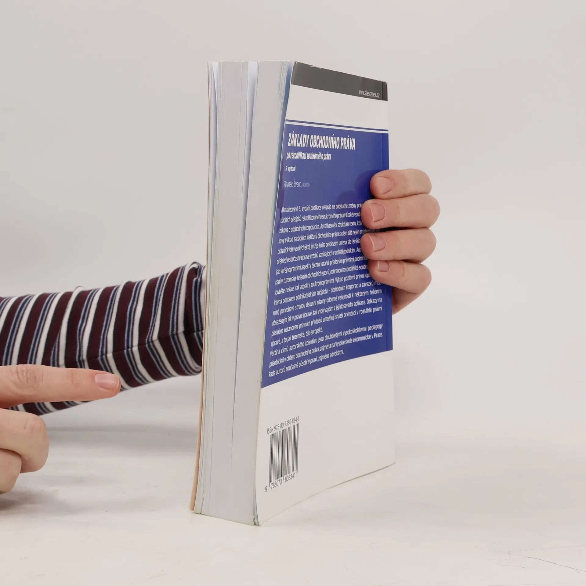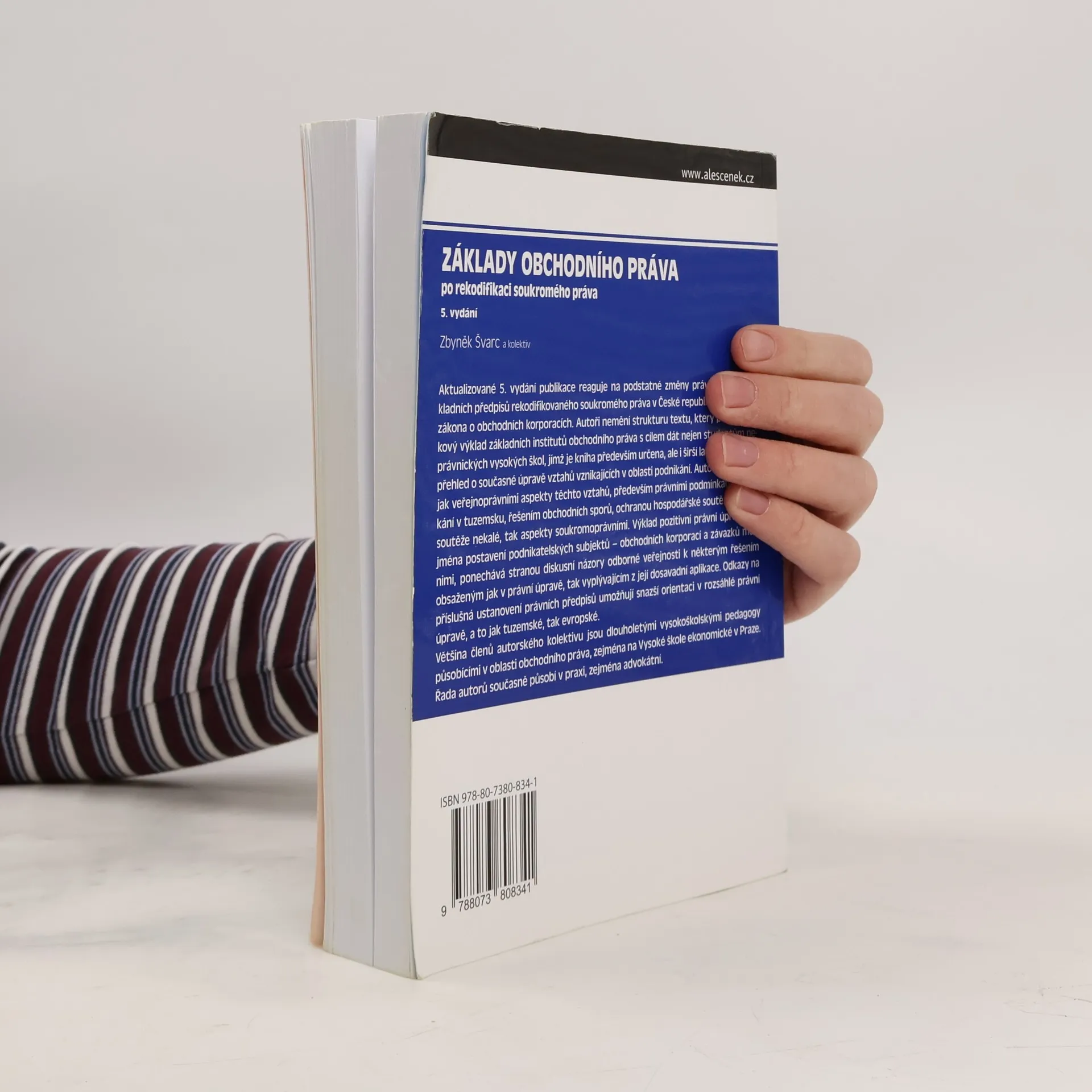 Aktualizované 5. vydání publikace reaguje na podstatné změny právní úpravy základních předpisů rekodifikovaného soukromého práva v ČR, především zákona o obchodních korporacích. Autoři nemění strukturu textu, který podává celkový výklad základních institutů obchodního práva s cílem dát nejen studentům neprávnických vysokých škol, jímž je kniha především určena, ale i širší laické veřejnosti přehled o současné úpravě vztahů vznikajících v oblasti podnikání. Autoři se zabývají jak veřejnoprávními aspekty těchto vztahů, především právními podmínkami podnikání v tuzemsku, řešením obchodních sporů, ochranou hospodářské soutěže včetně soutěže nekalé, tak aspekty soukromoprávními. Výklad pozitivní právní úpravy, zejména postavení podnikatelských subjektů – obchodních korporací a závazků mezi nimi, ponechává stranou diskusní názory odborné veřejnosti k některým řešením obsaženým jak v právní úpravě, tak vyplývajícím z její dosavadní aplikace. Odkazy na příslušná ustanovení právních předpisů umožňují snazší orientaci v rozsáhlé právní úpravě, a to jak tuzemské, tak evropské. Většina členů autorského kolektivu jsou dlouholetými vysokoškolskými pedagogy působícími v oblasti obchodního práva, zejména na Vysoké škole ekonomické v Praze. Řada autorů současně působí v praxi, zejména advokátní.