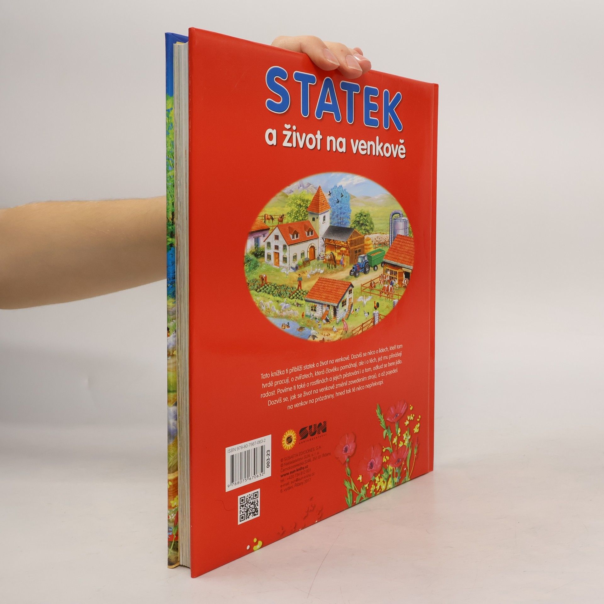 Tato knížka ti přiblíží statek a život na venkově. Dozvíš se něco o lidech, kteří tam pracují, o zvířatech, která člověku pomáhají při práci, ale i o těch, jež mu přinášejí radost. Povíme ti také o rostlinách a jejich pěstování i o tom, odkud jak se vyrábí některé potraviny. Dozvíš se, jak se život na venkově změnil zavedením strojů, a až pojedeš na venkov třeba na prázdniny, tak tě hned tak něco nepřekvapí.