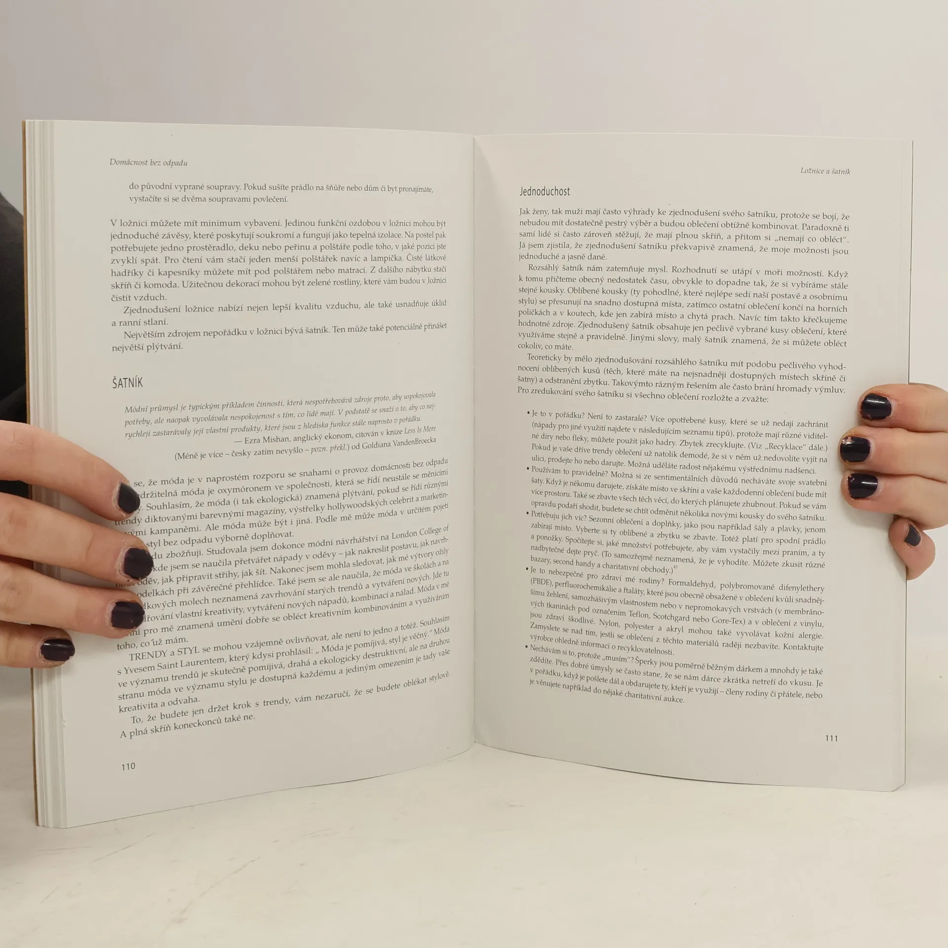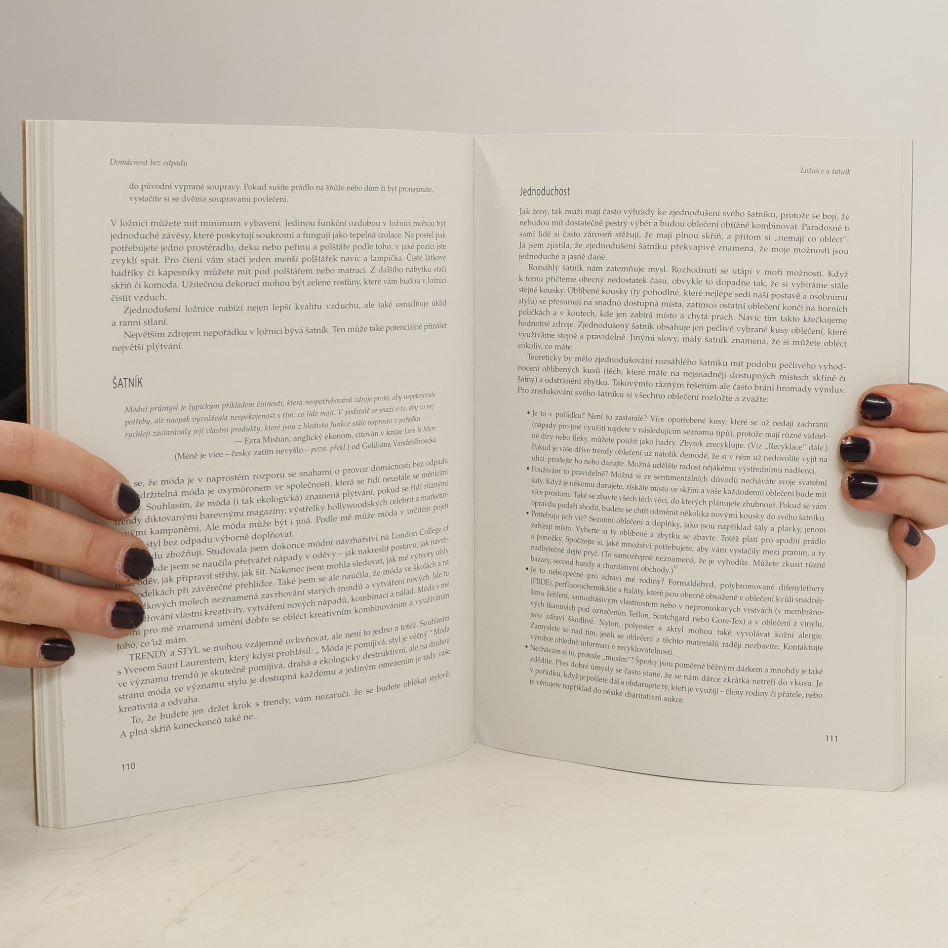 Jak si zásadně zjednodušit život snížením produkce odpadu. Bee Johnson se podařilo svou knihou vyvolat v západním světě pěkné haló. Stále větší počet lidí si začíná všímat toho, že smysl života není v tom, co vlastníme. Dochází nám, že čím víc vlastníme, tím méně svobodní jsme - čím víc nakupujeme, tím více je třeba vydělávat a čím více věcí máme, tím více strachu zpravidla pociťujem. Všímáme si, že moře odpadu, které je důsledkem našeho dnešního životního stylu ničí planetu a lidské zdraví. Beinou knihou jsme dostali návod, jak na to. O popularitě knihy svědčí nejenom vyprodané sály na Beiných přednáškách, ale i to že její vydání zařízují ve většině zemí sami fanoušci. Kniha je vlastně znovu-objevováním toho, v čem mnozí z nás vyrůstali. Je ale hlavně dokonalým manuálem, příručkou, která vás provede všemi podstatnými oblastmi života tak, že nezůstane kámen na kameni. Čím víc se myšlenkám v knize otevřete, tím víc se může proměnit váš život - od vydělávání na život směrem k životu.