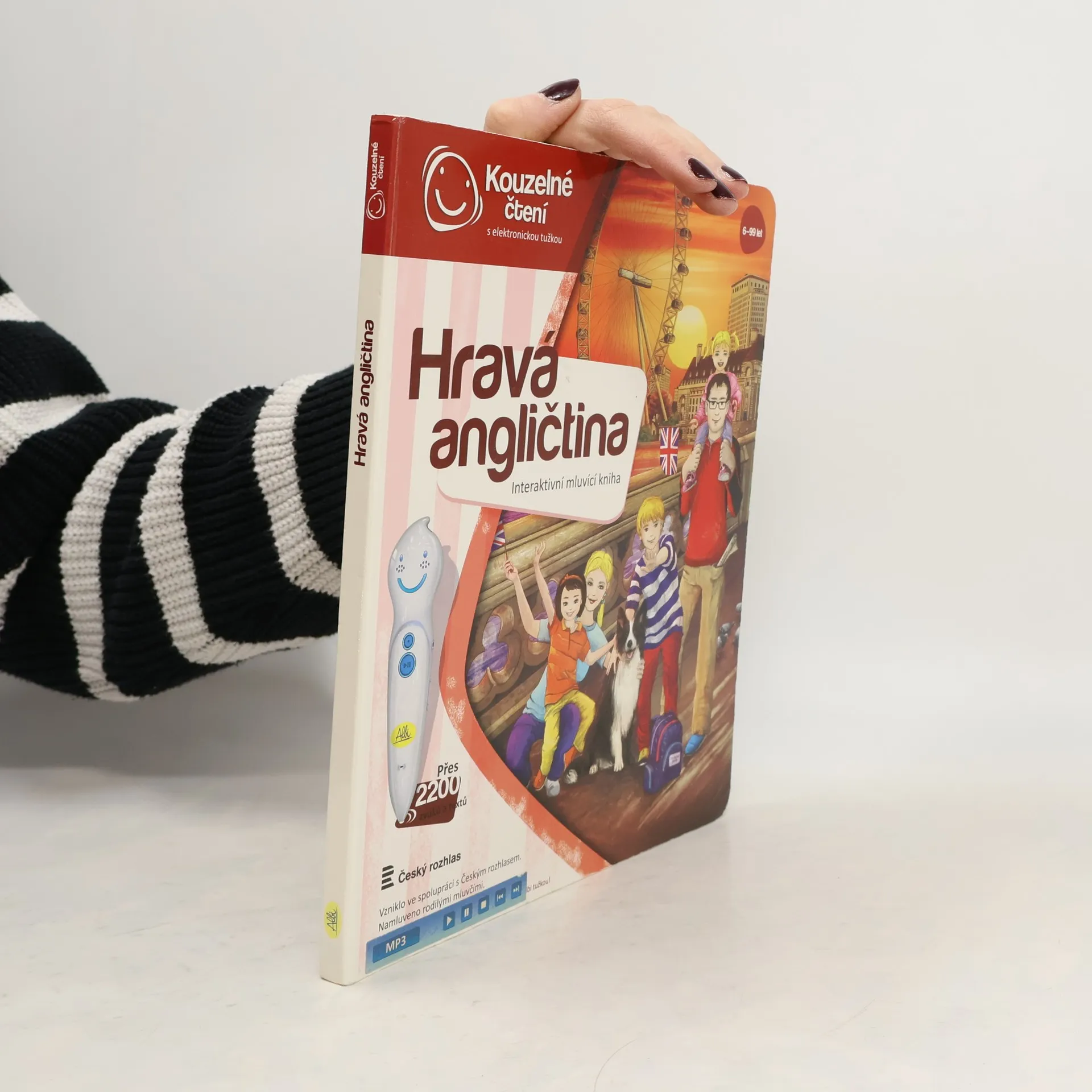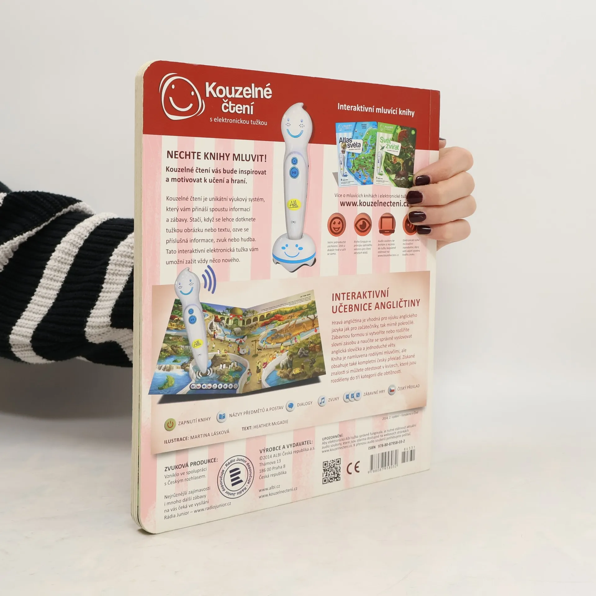 Kouzelné čtení od značky Albi je unikátní výukový systém, který vašim dětem přinese spoustu zábavy a nových informací. Můžete se těšit na velké množství zajímavostí, napínavé vyprávění o věcech kolem nás i na zpívání a přehrávání zvuků. Kniha Hravá angličtina naučí vaše dětih ravou formou základy anglických slovíček. Děti se pomocí této knihy naučí pojmenovat věci v obchodním domě, zvířátka v zoo, vybavení školní třídy, věci v domě, na farmě a další. Součástí výuky je i správná výslovnost slovíček. Upozornění: Ke knize je nutné vlastnit elektronickou tužku Albi , která není součástí balení. Jak na to? Velice snadno! Stačí do své elektronické tužky Albi nahrát aplikaci k dané knize z kolekce Kouzelné čtení a poté tužku přiložit k vyznačenému bodu na úvodní straně knihy. Elektronická tužka tak automaticky rozpozná, v jaké knize se připravujete listovat. Poté už můžete knihu procházet, prohlížet obrázky a přikládat tužku k vyznačeným bodům na stránkách. Elektronická tužka vám vše sama převypráví. Specifikace Značka: Albi Model: Hravá angličtina Edice: Kouzelné čtení Doporučený věk: 6+ Kompatibilní s elektronickou tužkou Albi Hmotnost: 0,358 kg Rozměry: 23 x 27 x 1 cm Obsah balení Kniha Albi Kouzelné čtení Hravá angličtina