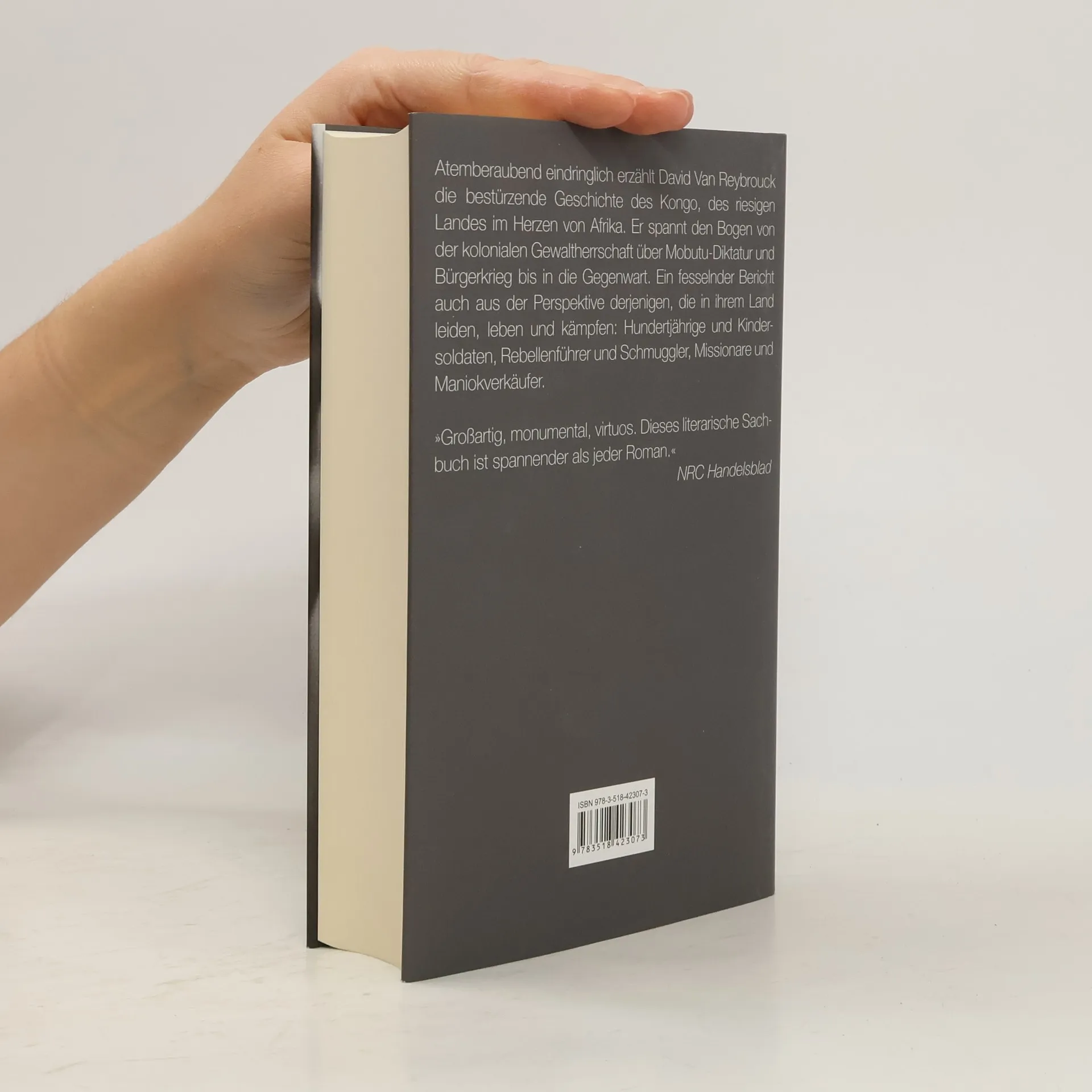 Fesselnd und atemberaubend erzählt David van Reybrouck die Geschichte Kongos, wie wir sie noch nie gelesen haben. Der Autor, der den Bogen von der kolonialen Gewaltherrschaft unter Leopold II. über die 32jährige Mobutu-Diktatur bis hinein in die Gegenwart spannt, berichtet aus der eindrücklichen Perspektive derjenigen, die in ihrem Land leiden, kämpfen, leben – im Mittelpunkt stehen die Träume, Hoffnungen und Schicksale der sogenannten einfachen Bevölkerung. Für sein mehrfach preisgekröntes Buch hat der Autor zahlreiche Reisen in das zentralafrikanische Land unternommen, in dem er einzigartige Interviews führen konnte. Der Älteste, mit dem er sprach, wurde 1882 geboren. Seine Stimme und die vieler hundert anderer, Kindersoldaten und Rebellenführer, Politiker und Missionare, machen dieses Buch zu einer Sensation. Mit zahlreichen Augenzeugenberichten, bisher unbekannten Dokumenten aus Archiven und Van Reybroucks fundierter Kenntnis der Forschung stellt es einen Meilenstein auf dem Gebiet der Sachbuchliteratur dar.