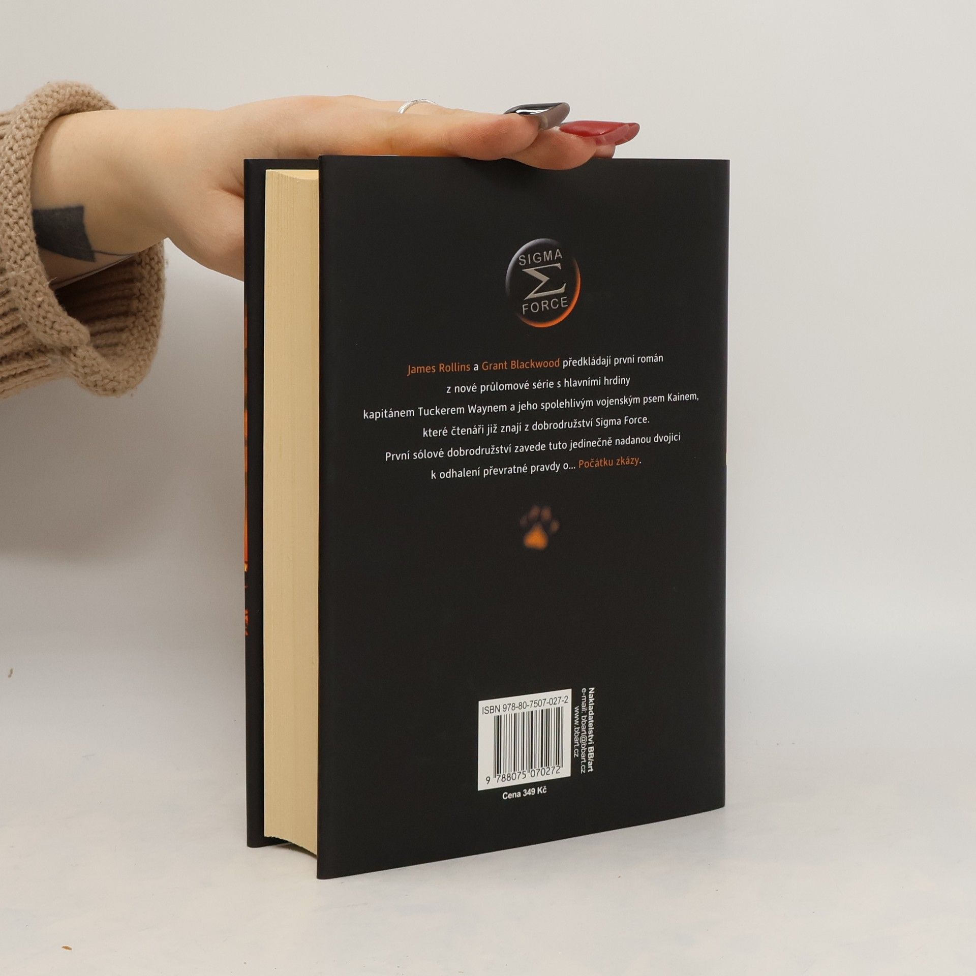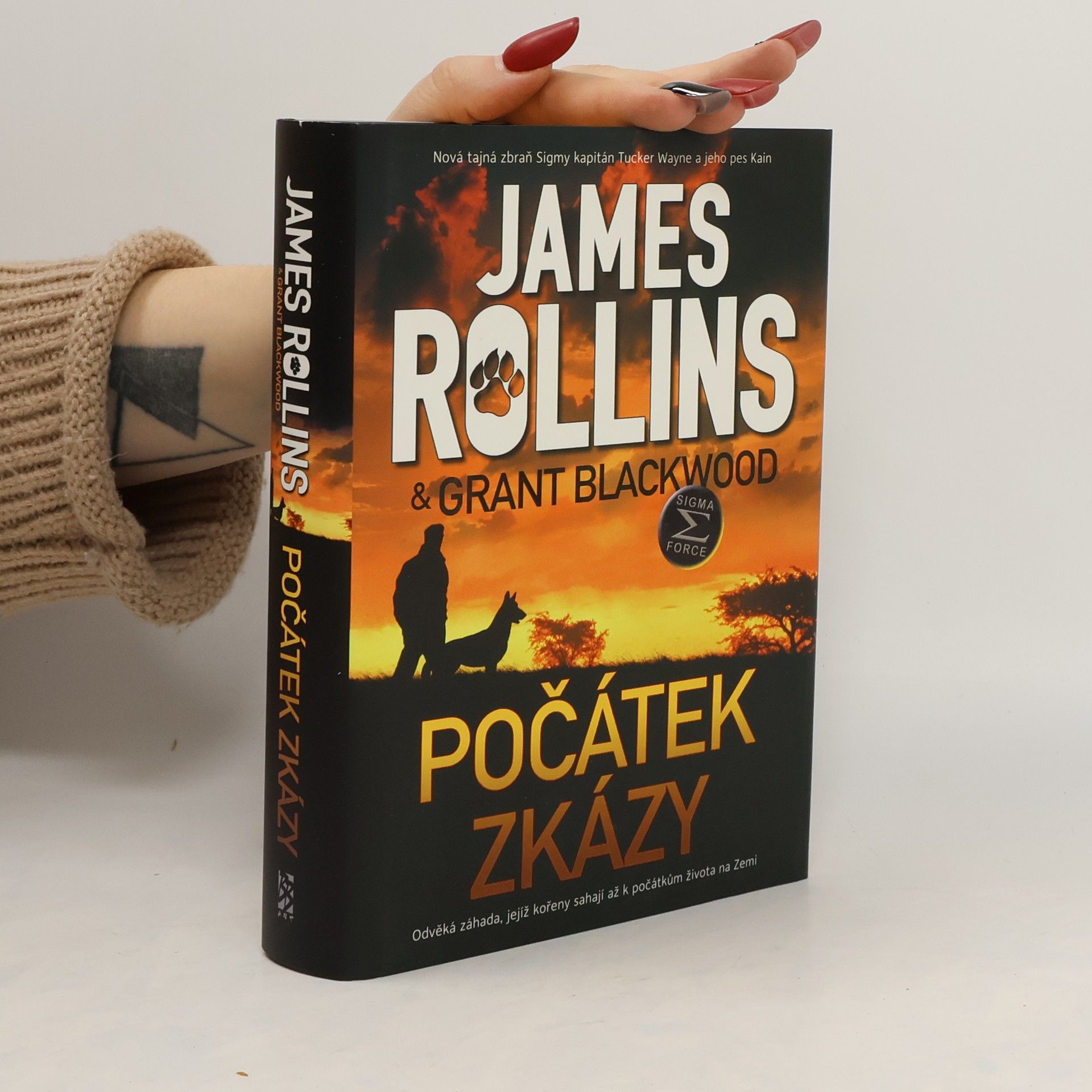 James Rollins a Grant Blackwood předkládají první román z nové průlomové série s hlavními hrdiny kapitánem Tuckerem Waynem a jeho spolehlivým vojenským psem Kainem, které čtenáři již znají z dobrodružství Sigma Force. První sólové dobrodružství zavede tuto jedinečně nadanou dvojici k odhalení převratné pravdy o… Počátku zkázy. Nejnovější člen Sigmy kapitán Tucker Wayne dostane od ředitele Crowea za úkol, aby se svým vycvičeným psem Kainem odvezl ze Sibiře ruského farmaceutického magnáta a vědeckého génia Abrama Bukolova, který má v rukou klíč k nové biologické zbrani, jež ohrožuje život na celé planetě. Při zběsilé honičce od zamrzlých ruských stepí po žhavé jihoafrické savany, od válkou zmítaných hor Namibie po zasněžená Velká jezera ve Spojených státech, musejí Tucker s Kainem společně vyřešit odvěkou záhadu, jejíž kořeny sahají až k počátkům života na Zemi, a ještě k tomu unikat před nástrahami zkušených nájemných zabijáků a ruského generála toužícího po pomstě a moci. Pevné pouto mezi člověkem a psem bude podrobeno extrémní zatěžkávací zkoušce. Nalezení řešení a odvrácení globální apokalypsy bude vyžadovat jejich veškeré dovednosti, talent a především vzájemnou důvěru.