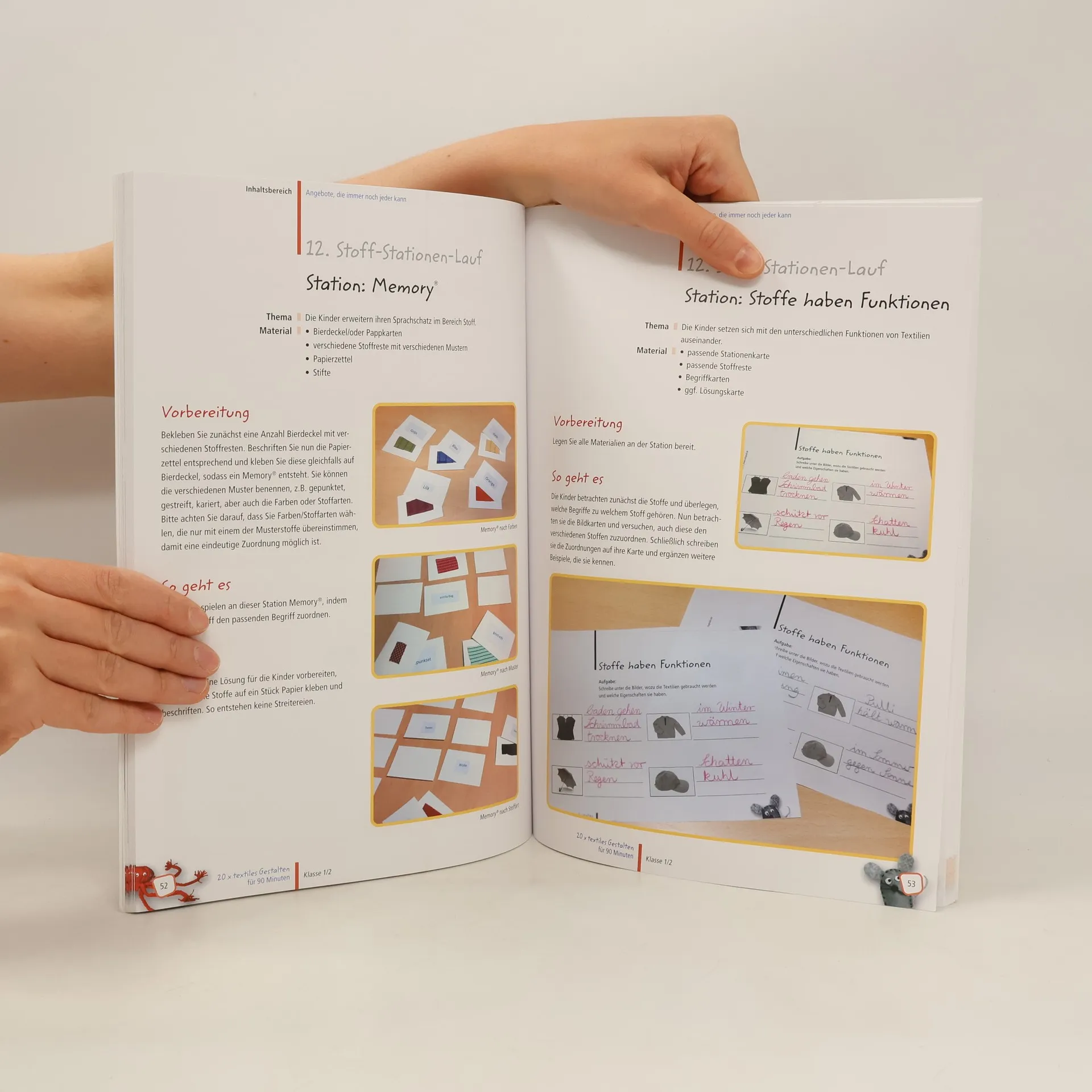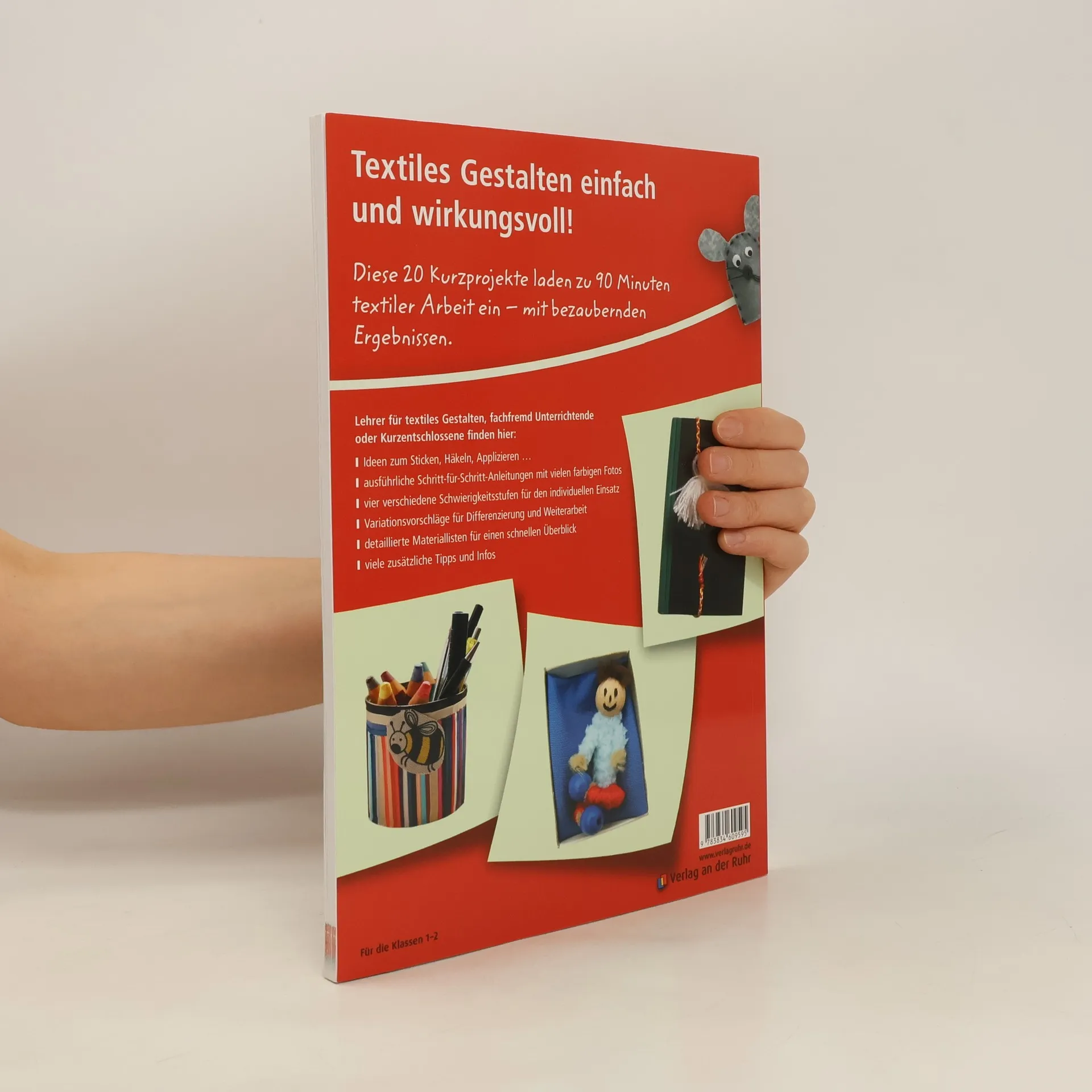 Von Nadelfilztierchen zu Putzlappenmonstern: In diesem Band für textiles Gestalten finden Sie 20 kleine Projekte für kleine Hände, die Sie leicht in zwei Schulstunden umsetzen können. Dazu brauchen Sie wenig Material und gar keine Vorkenntnisse, denn mit den detaillierten Schritt-für-Schritt-Anleitungen können Sie auch als Nicht-TextilerIn weben, sticken, filzen oder häkeln. Tipps für die Unterrichtsvorbereitung und eine ausführliche Materialübersicht am Anfang sorgen für einen gut strukturierten Einstieg. Zusätzliche Variationsvorschläge zu jedem Projekt liefern weitere Ideen für Differenzierung und Weiterarbeit. Anleitungen finden Sie zu folgenden Bereichen: Guerilla-Häkeln; Klamotten-Pepp mit Stempeldruck; Nadelfilztierchen; edle Kühlschrankmagnete; Mola-Fische; Wollmalerei