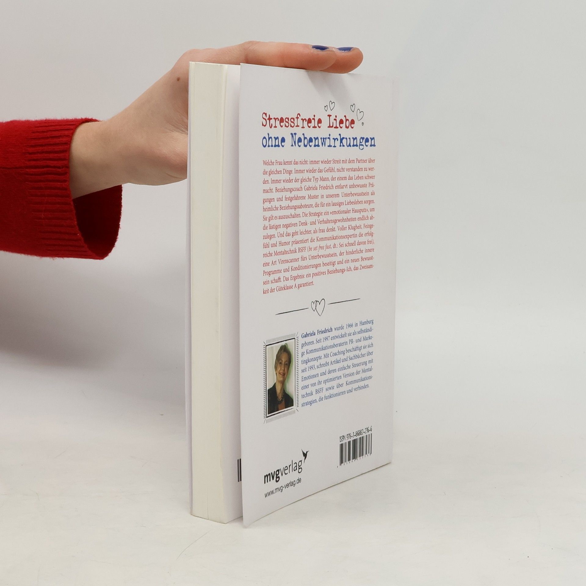 Stressfreie Liebe ohne Nebenwirkungen Welche Frau kennt das nicht: immer wieder Streit mit dem Partner über die gleichen Dinge. Immer wieder das Gefühl, nicht verstanden zu werden. Immer wieder der gleiche Typ Mann, der einem das Leben schwer macht. Beziehungscoach Gabriela Friedrich entlarvt unbewusste Prägungen und festgefahrene Muster in unserem Unterbewusstsein als heimliche Beziehungssaboteure, die für ein lausiges Liebesleben sorgen. Sie gilt es auszuschalten. Die Strategie: Ein „emotionaler Hausputz“, um die lästigen negativen Denk- und Verhaltensgewohnheiten endlich abzulegen. Und das geht leichter, als frau denkt. Voller Klugheit, Feingefühl und Humor präsentiert die Kommunikationsexpertin die erfolgreiche Mentaltechnik BSFF (be set free fast; dt.: Sei schnell davon frei), eine Art Virenscanner fürs Unterbewusstsein, der hinderliche innere Programme und Konditionierungen beseitigt und ein neues Bewusstsein schafft. Das Ergebnis: ein positives Beziehungs-Ich, das Zweisamkeit der Güteklasse A garantiert.