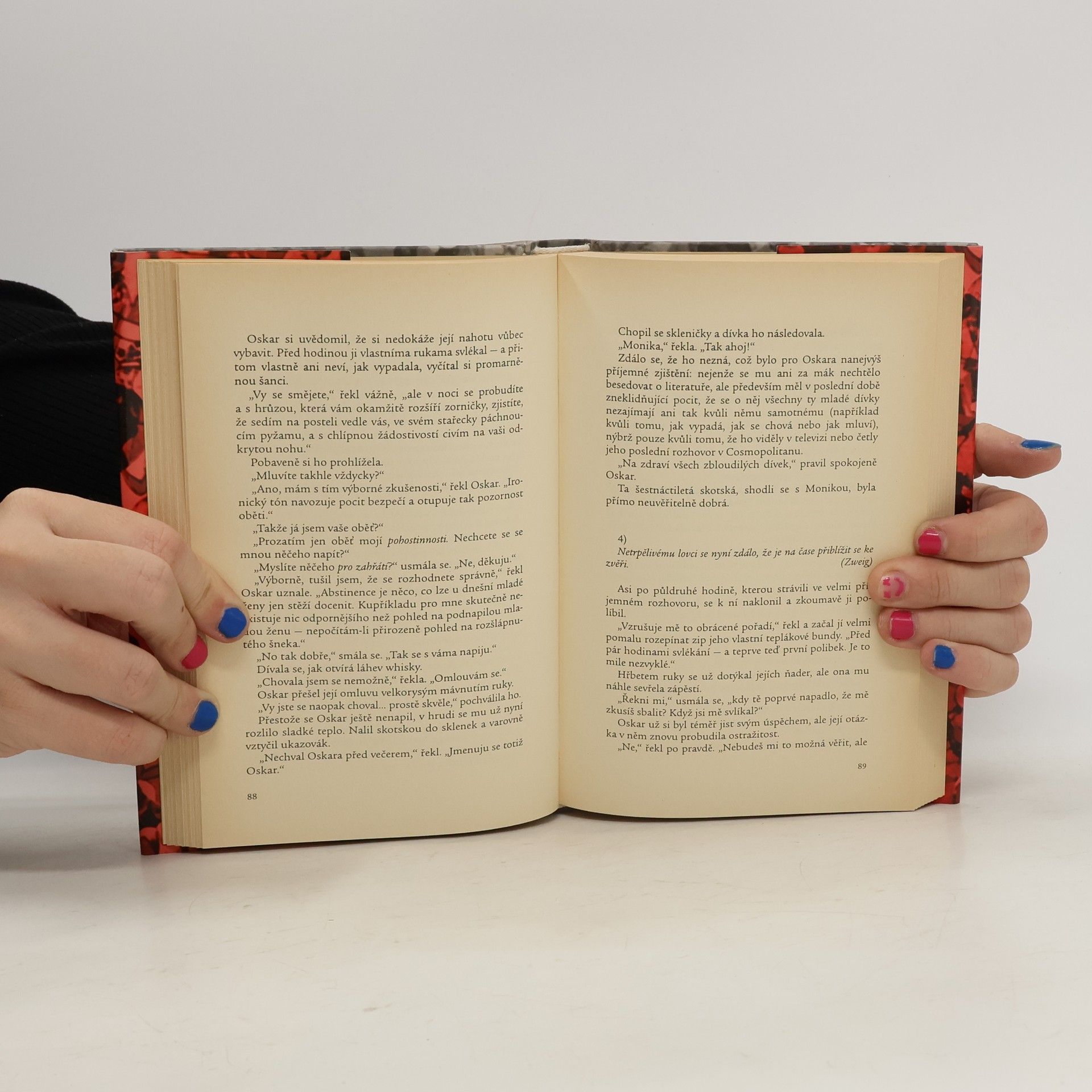 Hlavním hrdinou tohoto "povídkového románu", jak jej autor sám označil, je asi pětatřicetiletý úspěšný spisovatel Oskar, který si po rozvodu se svou ženou Zuzanou zvyká na samotu a užívá si staromládenecký život i z té lepší stránky. Ne všechny povídky mají sexuální podtext, i když u většiny z nich to platí. Některé jsou zaměřené na hlubší otázky, které musí Oskar ve své nové životní situaci řešit. Například povídka Fiacolata vypráví o tajném mileneckém vztahu Oskara a Moniky, která je manželkou jeho nejlepšího přítele Kamila. Oskar se do Moniky zamiloval, a tak se cítí skutečně šťastný, ale na druhé straně musí řešit obrovské výčitky svědomí, protože do očí lže svému příteli. Všichni jedou na společnou zimní dovolenou do Itálie, kde vše málem vyjde najevo. Fiacolata je vlastně název poslední jízdy s hořícími pochodněmi a Oskar s Monikou se na sjezdovce rozhodli, že už nebudou dál nic skrývat, protože je to oba ničí. Po chvíli se ale zase vzpamatovali a jeli dolů za Kamilem.
