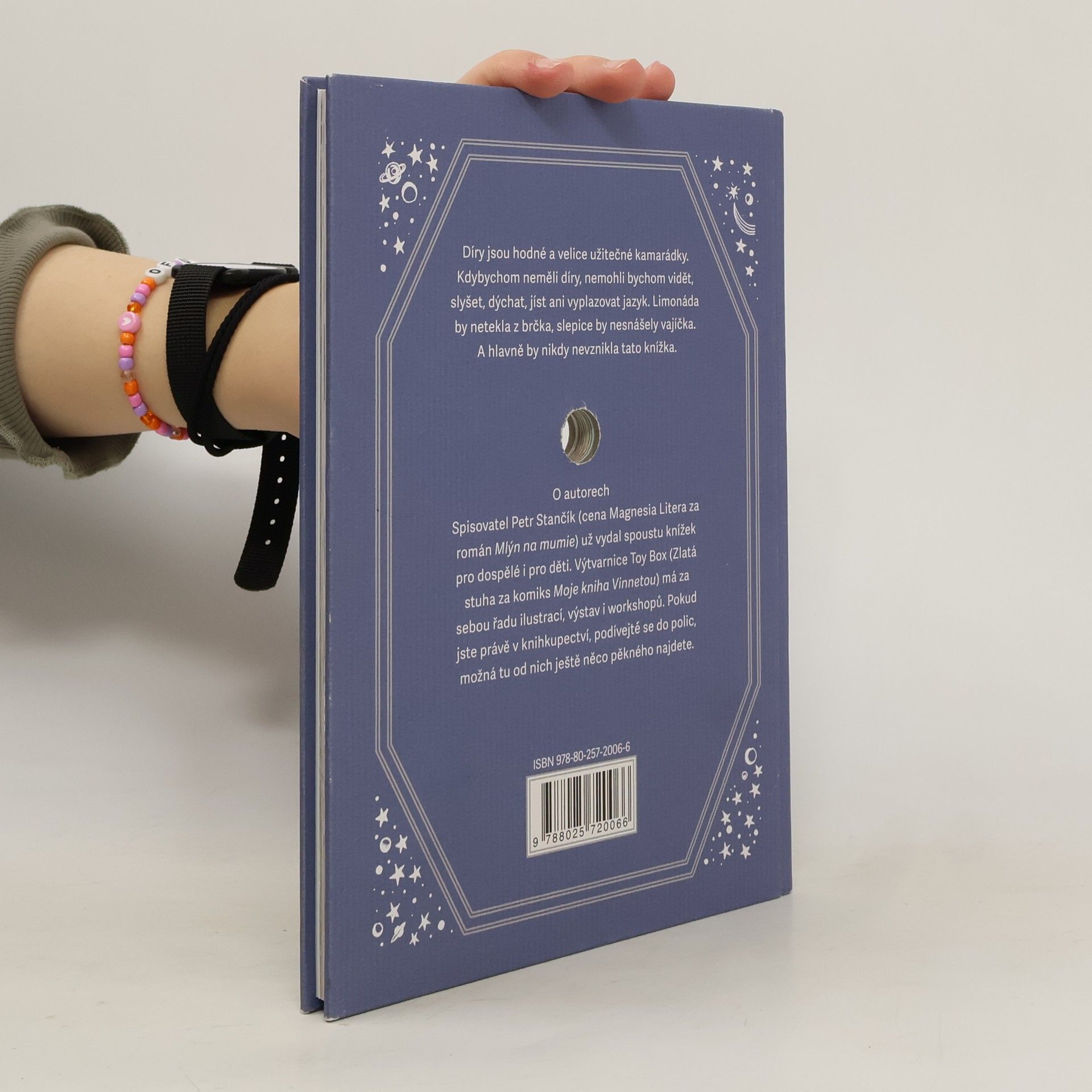 Už jste četli pohádku, jejiž hlavní hrdinka vůbec není? Teď máte možnost. Artová kniha spisovatele Petra Stančíka (cena Magnesia Litera za román Mlýn na mumie) a výtvarnice Toy Box (Zlatá stuha za komiks Moje kniha Vinnetou) vypráví napínavý příběh osamělé díry, která v gastrokosmu jedné kuchyně hledá planetu, na které žijí její kamarádky. Kniha je výjimečná i tím, že do ní bude provrtaná opravdová díra, skrze níž můžete třeba vyfukovat bubliny, nebo pít limonádu brčkem. Text doprovodí 40 krásných celostránkových ilustrací, takže na své si přijdou i děti, které ještě nedovedou číst. Teď máte možnost pomoci této unikátní knize na svět a vydat se s ní na dobrodružnou cestu plnou fantazie a vůně čerstvě umleté kávy.