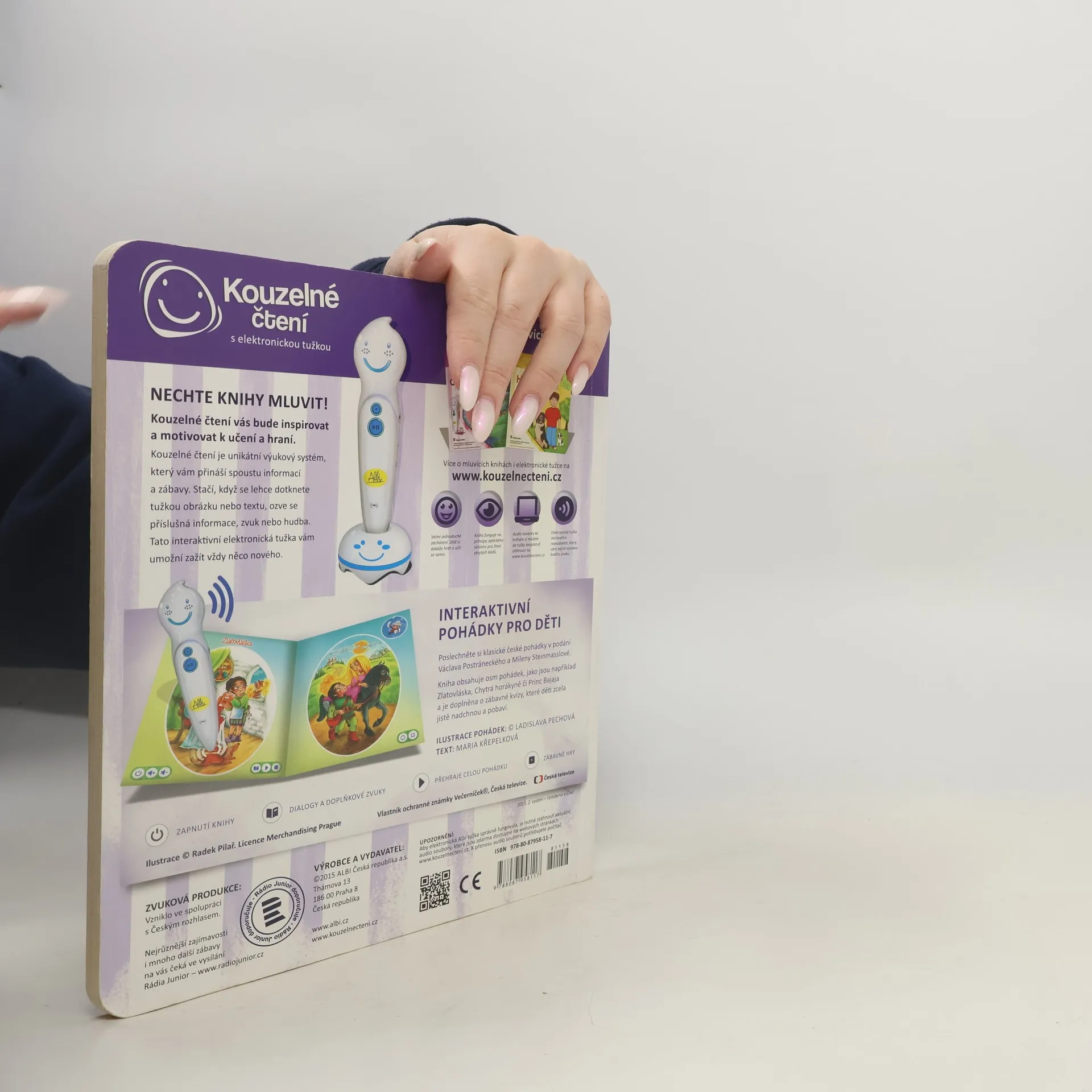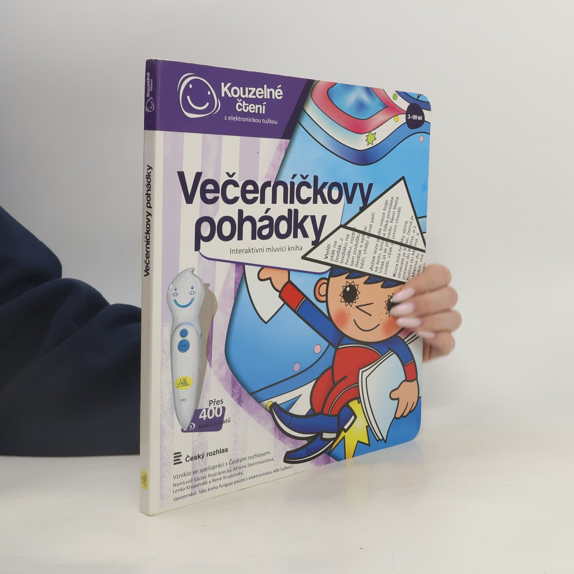 Kouzelné pohádky s ALBI tužkou Poslechněte si klasické české pohádky v podání Václava Postráneckého a Mileny Steinmasslové. Kniha obsahuje osm pohádek - mezi nimi například pohádky Zlatovláska, Tři zlaté vlasy děda Vševěda, O Popelce, Chytrá horákyně a další. Kniha je doplněna o zábavné kvízy, které děti zcela jistě nadchnou a zabaví na dlouhou dobu. Kniha kouzelných pohádek obsahuje přes 400 zvuků a textů, vznikla ve spolupráci s Českým rozhlasem a namluvili Václav Postránecký, Milena Steinmasslová, Lenka Krupanská a René Krupanský.