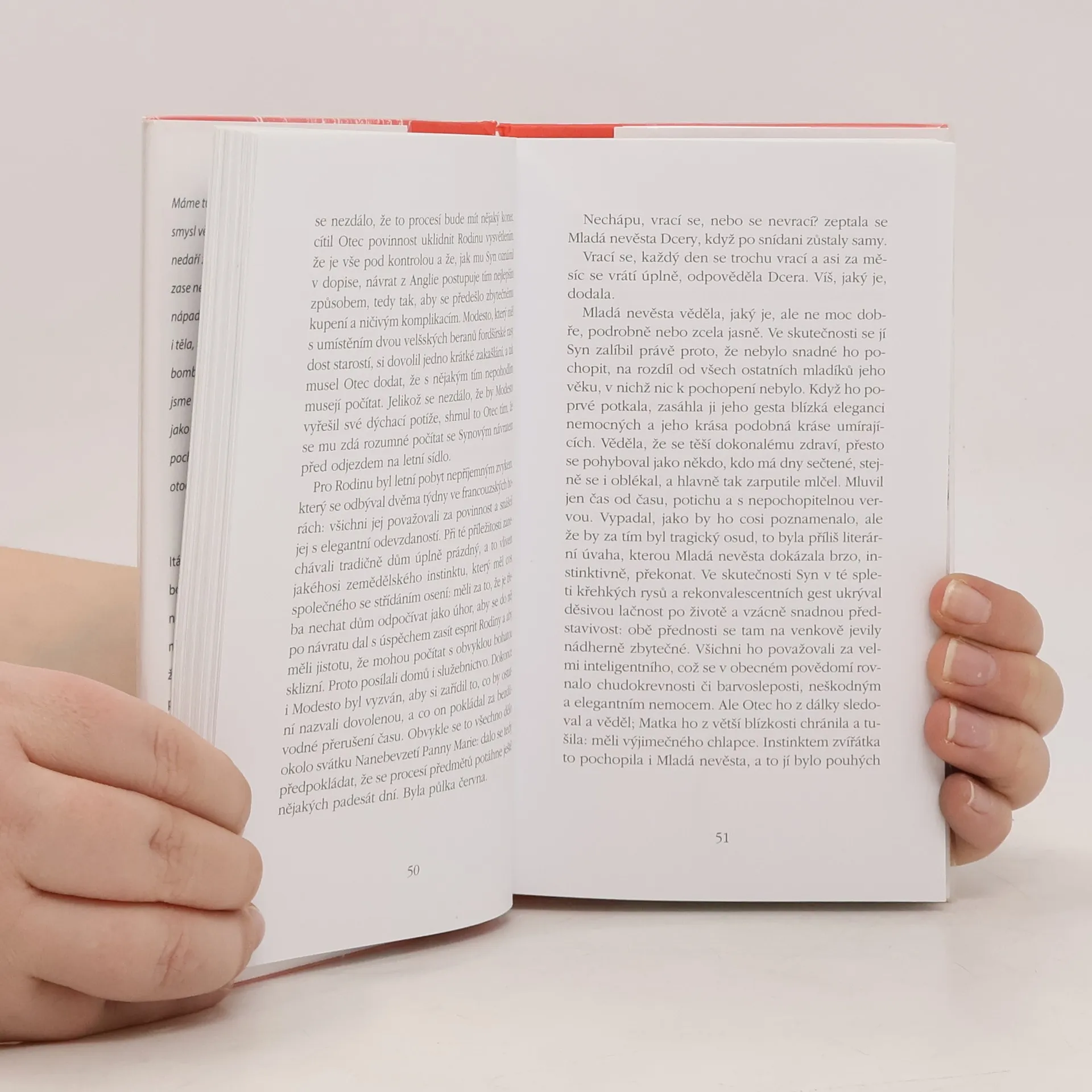 Itálie, začátek 20. století. Před branou domu bohaté rodiny se jednoho dne objevuje Mladá nevěsta. Je jí osmnáct let a přijíždí z Argentiny, neboť se má provdat za Syna. Než se však ženich vrátí z cest, přijme dívku mezi sebe jeho prazvláštní rodina, zakletá do rituálů stejně sofistikovaných jako nepochopitelných: Otec, jehož každá nenadálá emoce hrozí poslat na onen svět, nebezpečně krásná Matka se svými nerozluštitelnými sylogismy, znetvořená a přece svůdná Dcera a Strýc stižený spavou nemocí. Netrpělivě očekávaný Syn svůj příjezd stále odkládá a dívka si mezitím nachází cestu ke každému ze členů rodiny...