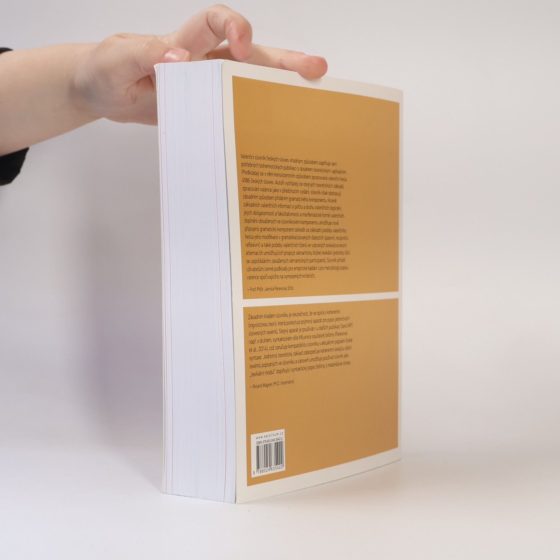 Valenční slovník českých sloves vhodným způsobem zaplňuje sérii potřebných bohemistických publikací s dosahem teoretickým i aplikačním. Předkládají se v něm konsistentním způsobem zpracovaná valenční hesla 4586 českých sloves. Autoři vycházejí ze stejných teoretických základů zpracování valence jako v předchozím vydání, slovník však obohacují zásadním způsobem přidáním gramatického komponentu. Kromě základních valenčních informací o počtu a druhu valenčních doplnění, jejich obligatornosti a fakultativnosti a morfematické formě valenčních doplnění obsažených ve slovníkovém komponentu umožňuje nově připojený gramatický komponent odvodit ze základní podoby valenčního hesla jeho modifikace v gramatikalizovaných diatezích (pasivní, reciproční, reflexivní) a také podoby valenčních členů ve vybraných lexikalizovaných alternacích umožňujících propojit sémanticky blízké lexikální jednotky lišící se uspořádáním zasažených sémantických participantů. Slovník přináší uživatelům cenné podklady pro empirické bádání i pro metodologii popisu valence spočívajícího na vymezených kritériích.