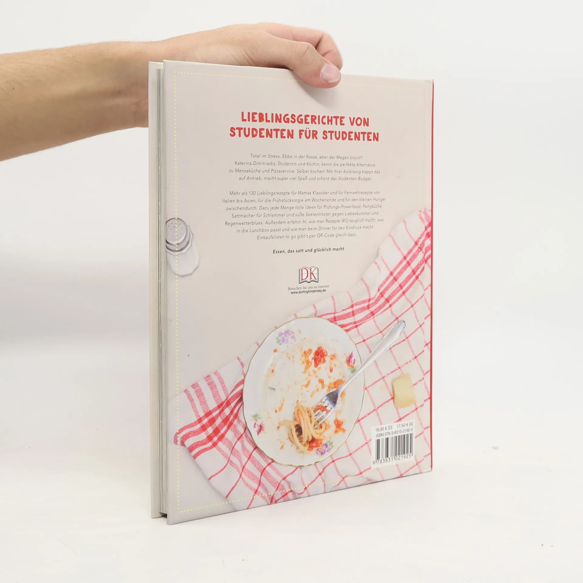 Nie wieder Mensa! Bewährte WG-Klassiker, aber auch verlockende neue Ideen machen Lust, selbst zum Kochlöffel zu greifen und Freunde oder Mitbewohner zu verwöhnen. Jedes der über 130 Rezepte ist für Anfänger geeignet, schnell umsetzbar und auf das studentische Budget zugeschnitten. Mit wenigen im Supermarkt erhältlichen Zutaten, minimalem Aufwand und einem kleinen Kochequipment, stehen schnell leckere Rezepte auf dem Tisch. Praktisch im Gebrauch: Piktogramme verschaffen einen schnellen Überblick über Preiskategorie, Zubereitungszeit und Schwierigkeitsgrad der Rezepte. Von Mamas Klassikern bis zu internationalen Rezepten. Für das Langschläfer-Frühstück oder den kleinen Hunger zwischendurch. Dazu jede Menge tolle Ideen für Prüfungs-Powerfood, Partyküche, Sattmacher für Schlemmer und süße Seelentröster gegen Liebeskummer und Regenwetterblues. Außerdem verrät die Autorin, wie man Rezepte WG-tauglich macht, was in die Lunchbox passt und wie man beim Dinner for two richtig Eindruck schindet! Katerina Dimitriadis ist Studentin der Buchwissenschaft, betreibt aber auch zusammen mit Mutter und Schwester das Restaurant Konstantina in Nürnberg und ist Autorin einer Kochkolumne in den Nürnberger Nachrichten. Die Fotos stammen von Pilar Schacher, Designstudentin und angehende Modefotografin, das Layout von der Grafikerin Andrea Schindler.