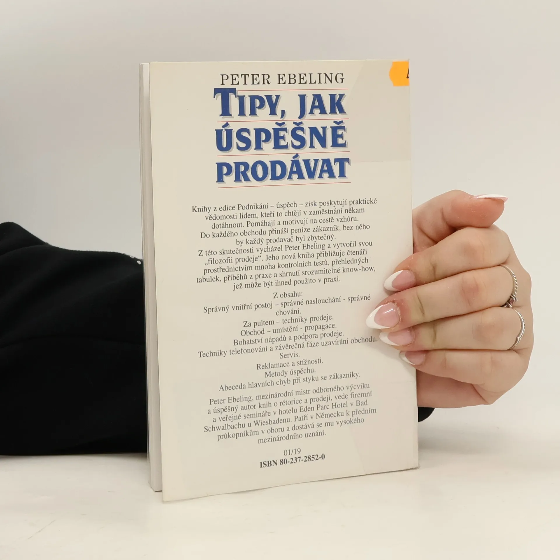 Kniha poskytuje prakticke vedomosti lidem, kteri to chteji v zamestnani nekam dotahnout, Pomahaji a motivuji na ceste vzhuru. Do kazdeho obchodu přinasi penize zakaznik, bez neho by kazdy prodavac byl zbytecny. Z teto skutecnosti vychazel Peter Ebeling a vytvoiřil svou filozofii prodeje. Jeho kniha priblizuje ctenari prostrednictvlm mnoha kontrolnich testu, ptehlednych tabulek, pribehu z praxe a shrnuti srozumitelne know-how, jez muze byt ihned pouzito v praxi. Z obsahu: Spravny vnitrni postoj -spravne naslouchani -spravne chovani. Za pultem -techniky prodeje. Obchod -umisteni -propagace. Bohatstvi napadu a podpora prodeje. Techniky telefonovani a zaverecna faze uzavirani obchodu. Servis. Reklamace a stiznosti. Metody uspechu. Abeceda hlavnich chyb pri styku se zakazniky,... celý text