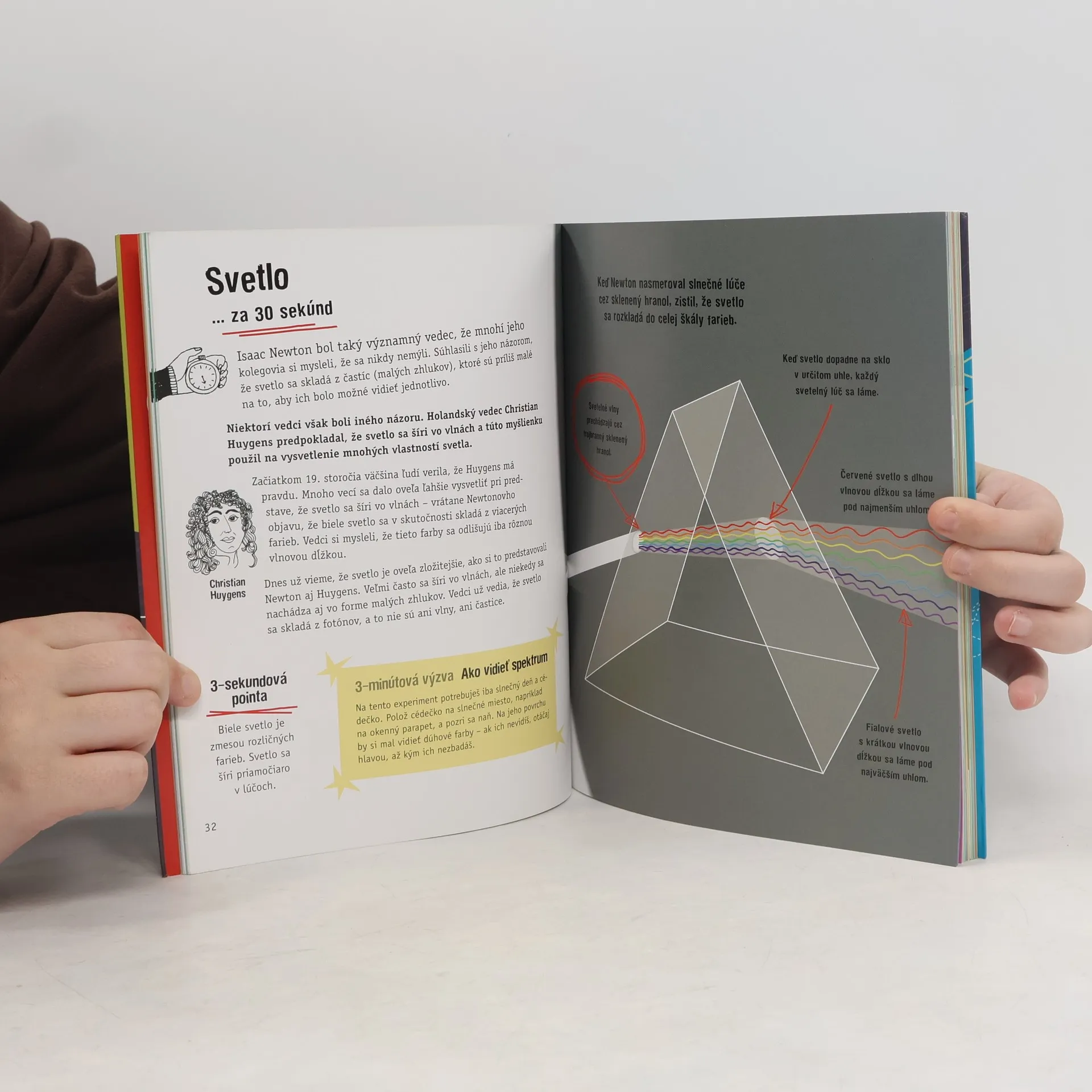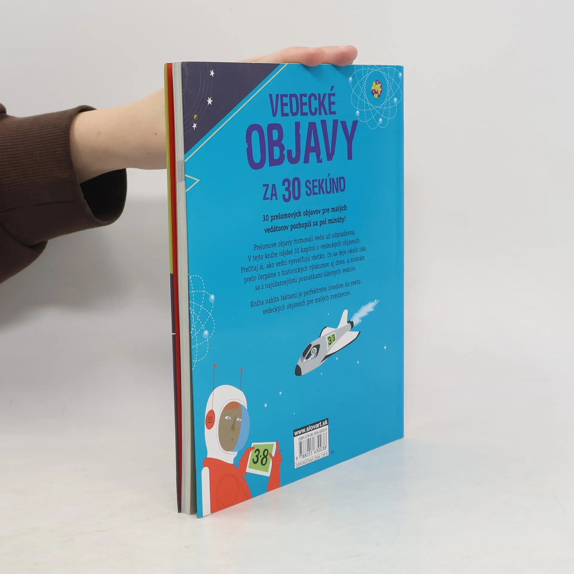 Nová edícia jednoduchých a prehľadných encyklopédií. Čitatelia objavia na stránkach 30 tematických okruhov, o ktorých sa dozvedia to najdôležitejšie za 30 sekúnd. Súčasťou sú aj trojminútové výzvy, kde si môžu vyskúšať a overiť získané poznatky. Prečítajte si 30 úžasných kapitol o vedeckých objavoch. Zistite, ako vedci vysvetľovali svet okolo nás. Pochopte, prečo sú objavy z minulých storočí stále relevantné aj dnes. Spoznajte najúžasnejšie poznatky súčasných vedcov. Otestujte všetky teórie, aby ste zistili ešte viac.