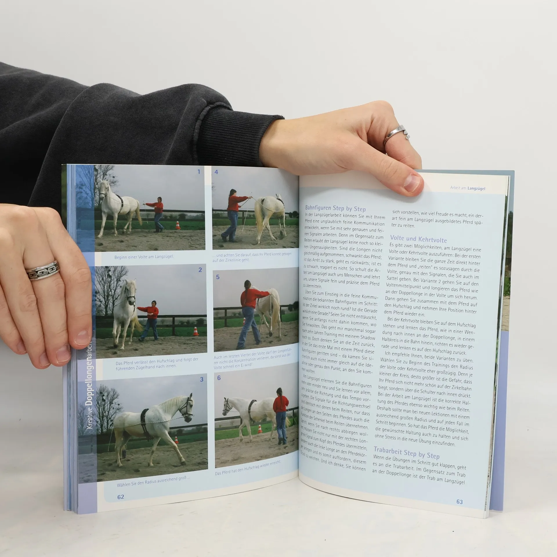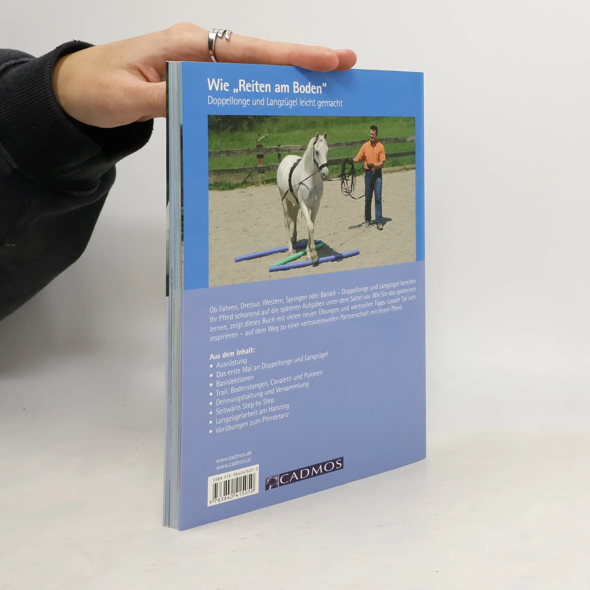 16 Meter Leinen in einer Hand, in der anderen die Longierpeitsche – und dann noch das Pferd durch ein Trailhindernis im Galopp in schöner Haltung lenken? Wer sich fragt, wie das gehen soll, findet in diesem Buch die Antworten. Von der ersten Gewöhnung des Pferdes an die Doppellonge bis hin zu versammelnden Übungen am Langzügel führt die Autorin den Leser in diese besonders effektive Form der Bodenarbeit ein. Mit viel Spaß und ohne Stress lernen Pferd und Mensch gemeinsam das „Reiten vom Boden aus“ kennen. Die korrekte Dehnungshaltung ist für den gymnastizierenden Effekt eine wichtige Voraussetzung. Später sind dann auch Seitengänge, Cavalettiarbeit und sogar kleine Sprünge oder Trailhindernisse möglich. Die Doppellongen- und Langzügelarbeit eignet sich für jedes Pferd, ist ein schonendes Element der Jungpferdeausbildung und kann auch bei nicht (mehr) reitbaren Pferden Koordination, Beweglichkeit und Motivation fördern.