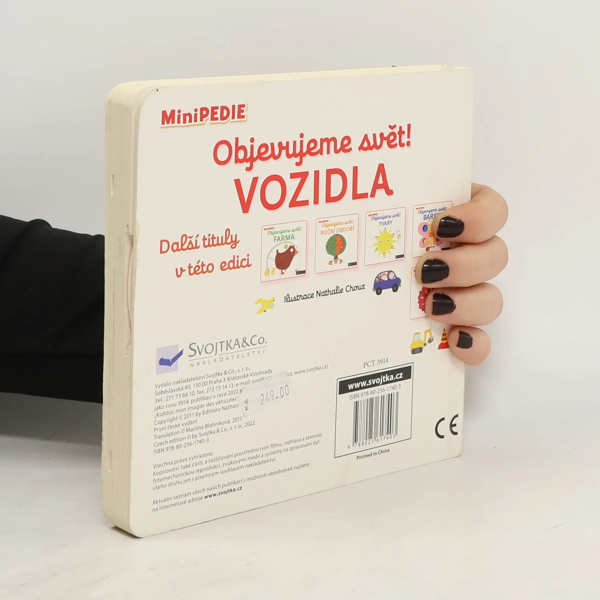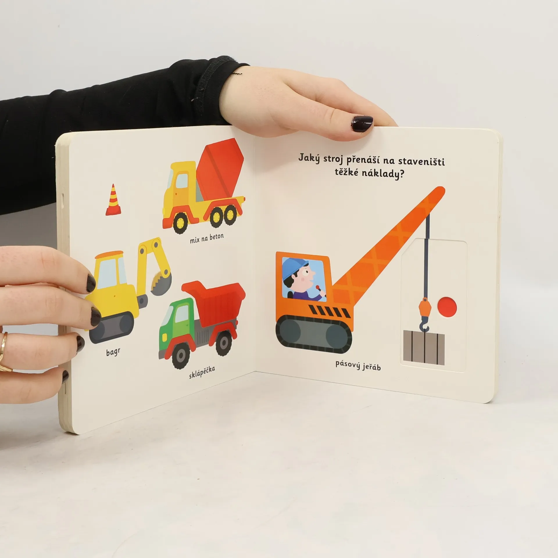 Objevovat svět vozidel a dopravních prostředků s tímto leporelem je tak zábavné! Tú, tú, copak to přijíždí a troubí? Co jezdí hasit požáry? Jaký stroj přenáší na staveništi těžké náklady? Co létá pomocí vrtule? Stačí jen vložit prstík do správného otvoru a lehce vysunout, zatáhnout nebo otočit ve směru šipky a hned bude váš malý objevitel znát odpovědi. Leporelo je určeno pro nejmenší děti od jednoho roku a má pevné stránky s posuvnými a otočnými prvky, a tak si naši nejmenší mohou při prohlížení a rozeznávání různých druhů vozidel a dopravních prostředků procvičit i jemnou motoriku.