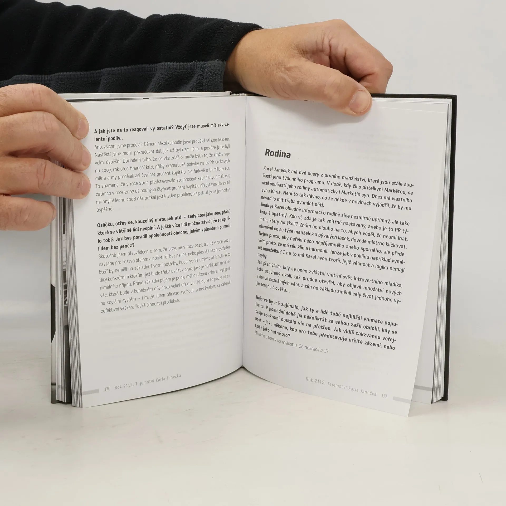 Karel Janeček, geniální matematik, workoholik, vášnivý sportovec, parašutista, ale hlavně bojovník proti „zlojedům“, filantrop a společenský reformátor a vizionář... Anebo snad samozvaný spasitel? Jeho jméno nelze přehlédnout, a už vůbec ne ignorovat. V knize rozhovorů Jindřicha Kabáta poznáte všechny jeho tváře a černobílé fotky Martina Kabáta vás dokonale vtáhnou do jeho barevného světa.