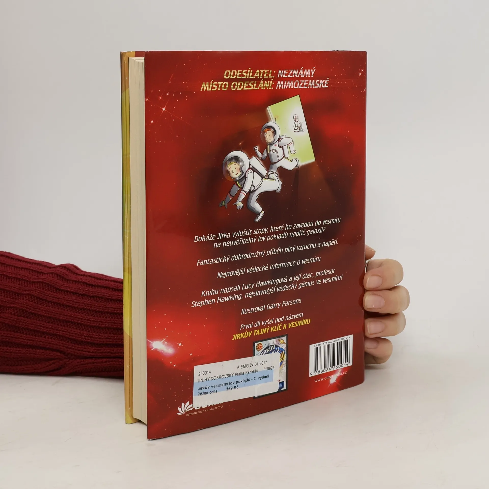 Fantastická cesta vesmírem při hledání vesmírného pokladu je plná nejen neuvěřitelných dobrodružství Jirky a jeho kamarádů, ale i nejnovějších vědeckých poznatků o vesmíru a také úvah předních světových vědců. Knížka, kterou napsali Lucy Hawkingová a její otec, profesor Stephen Hawking, nejslavnější vědecký génius ve vesmíru, navazuje na úspěšný první díl Jirkův tajný klíč k vesmíru.