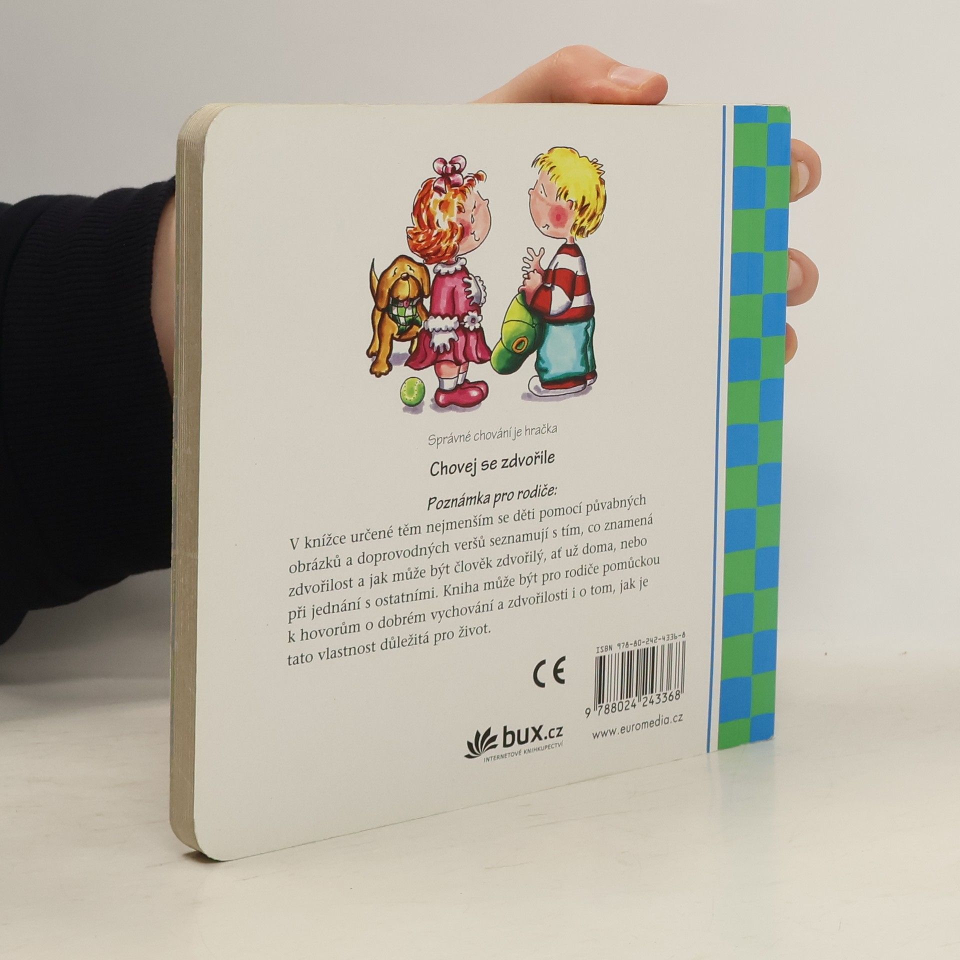 V knížce určené těm nejmenším se děti pomocí půvabných obrázků a doprovodných veršů seznamují s tím, co znamená zdvořilost a jaké chování je zdvořilé, ať už doma, nebo při hře s ostatními. Kniha může být pro rodiče pomůckou k hovorům o zdvořilosti k lidem i zvířatům a o tom, jak je důležitá pro život.