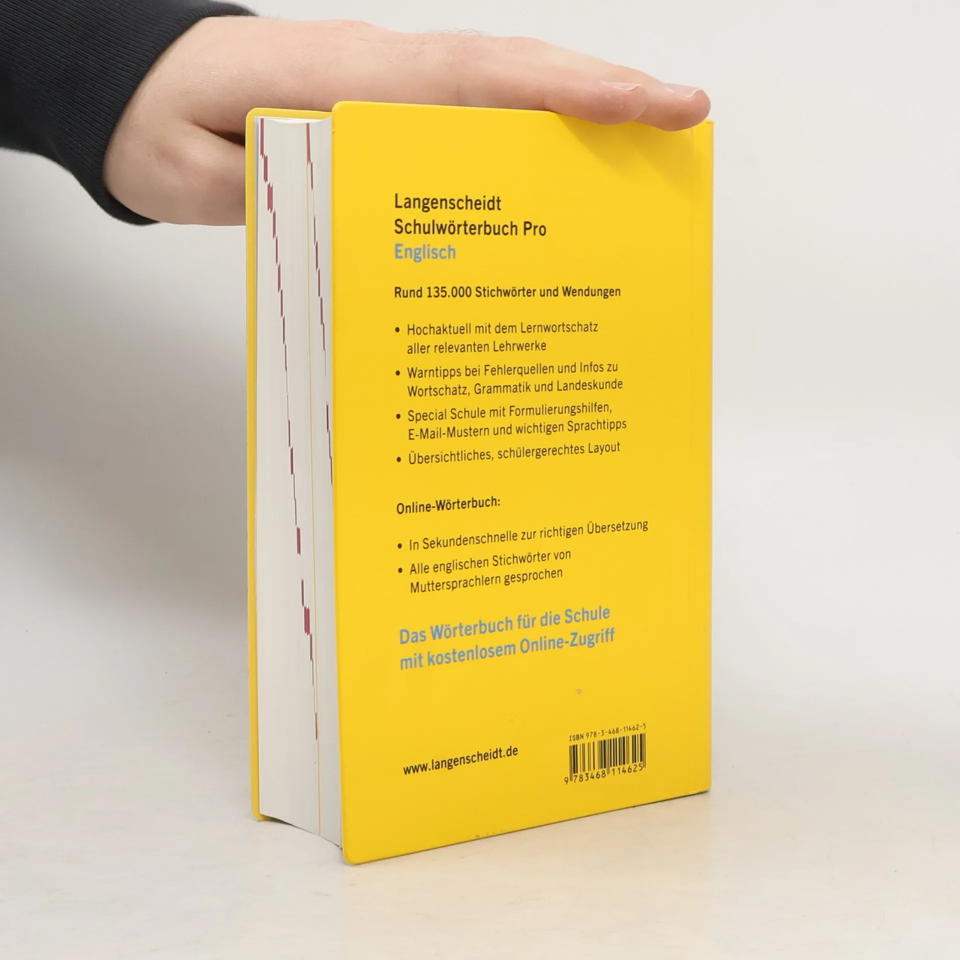 Das ideale Englisch-Wörterbuch für die Schule mit dem Wortschatz aller Lehrwerke. Mit Hörbeispielen online und Lautschrift im Buch. Dazu Infos zu Grammatik und Landeskunde, Lerntipps und Kommunikationshilfen. Für alle Schüler bis zum Abi. Rund 135.000 Stichwörter und Wendungen. Unabhängig vom verwendeten Lehrwerk: Für alle Schüler bis zum Abitur Lerntipps und Warnhinweise bei möglichen Fehlerquellen E-Mail-Vorlagen und Briefmuster speziell für Schüler Schulrelevante Extras zur Kommunikation mit nützlichen Sätzen für den Unterricht, typischen Sprachfallen, Informationen zur Aussprache etc. Vom Marktführer Langenscheidt, Deutschlands Wörterbuch-Verlag Nr. 1