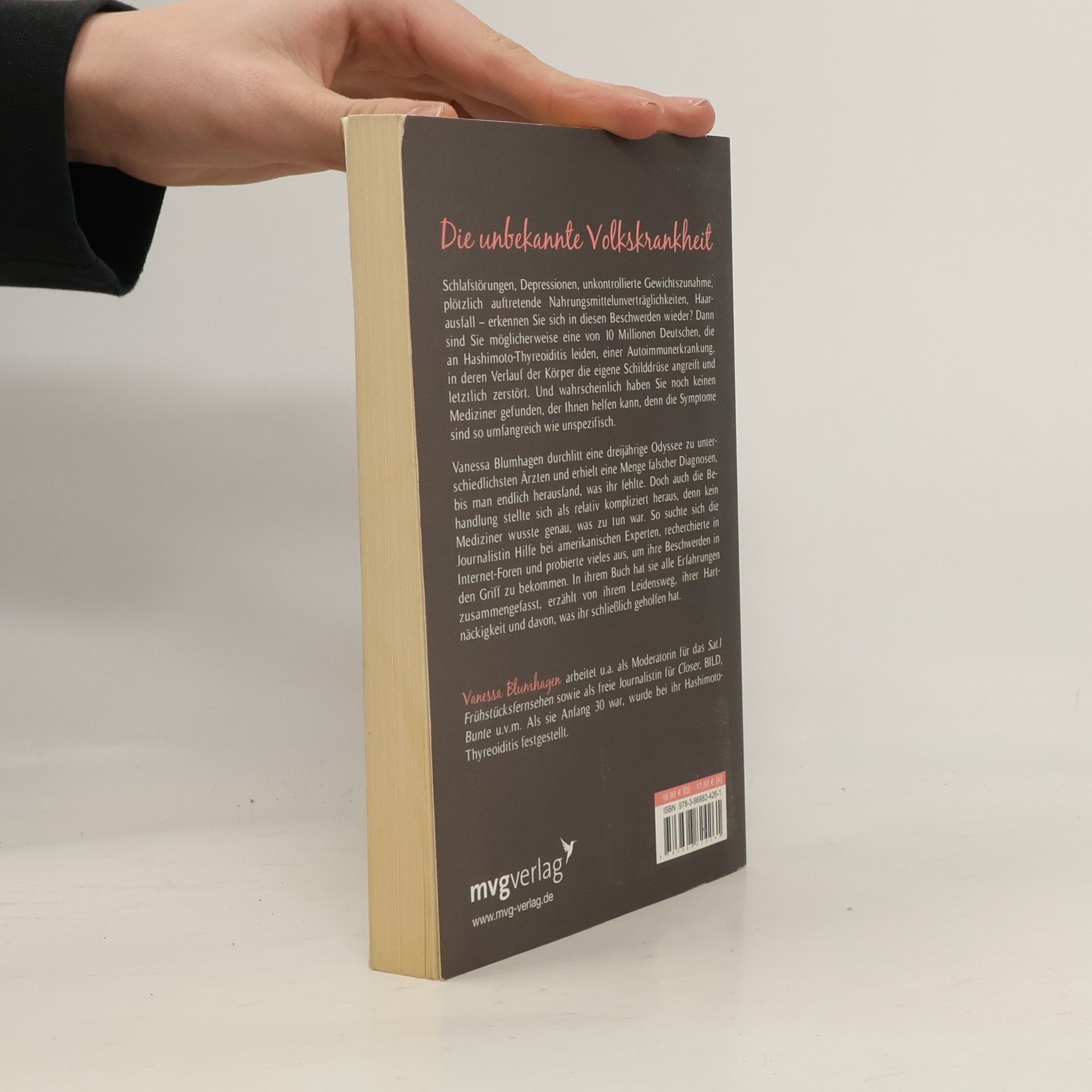 Schlafstörungen, Depressionen, unkontrollierte Gewichtszunahme, plötzlich auftretende Nahrungsmittelunverträglichkeiten, Haarausfall – erkennen Sie sich in diesen Beschwerden wieder? Dann sind Sie möglicherweise eine von 10 Millionen Deutschen, die an Hashimoto-Thyreoiditis leiden, einer Autoimmunerkrankung, in deren Verlauf der Körper die eigene Schilddrüse angreift und letztlich zerstört. Und wahrscheinlich haben Sie noch keinen Mediziner gefunden, der Ihnen helfen kann, denn die Symptome sind so umfangreich wie unspezifisch. Vanessa Blumhagen durchlitt eine dreijährige Odyssee zu unterschiedlichsten Ärzten und erhielt eine Menge falscher Diagnosen, bis man endlich herausfand, was ihr fehlte. Doch auch die Behandlung stellte sich als relativ kompliziert heraus, denn kein Mediziner wusste genau, was zu tun war. So suchte sich die Journalistin Hilfe bei amerikanischen Experten, recherchierte in Internet-Foren und probierte vieles aus, um ihre Beschwerden in den Griff zu bekommen. In ihrem Buch hat sie alle Erfahrungen zusammengefasst, erzählt von ihrem Leidensweg, ihrer Hartnäckigkeit und davon, was ihr schließlich geholfen hat.