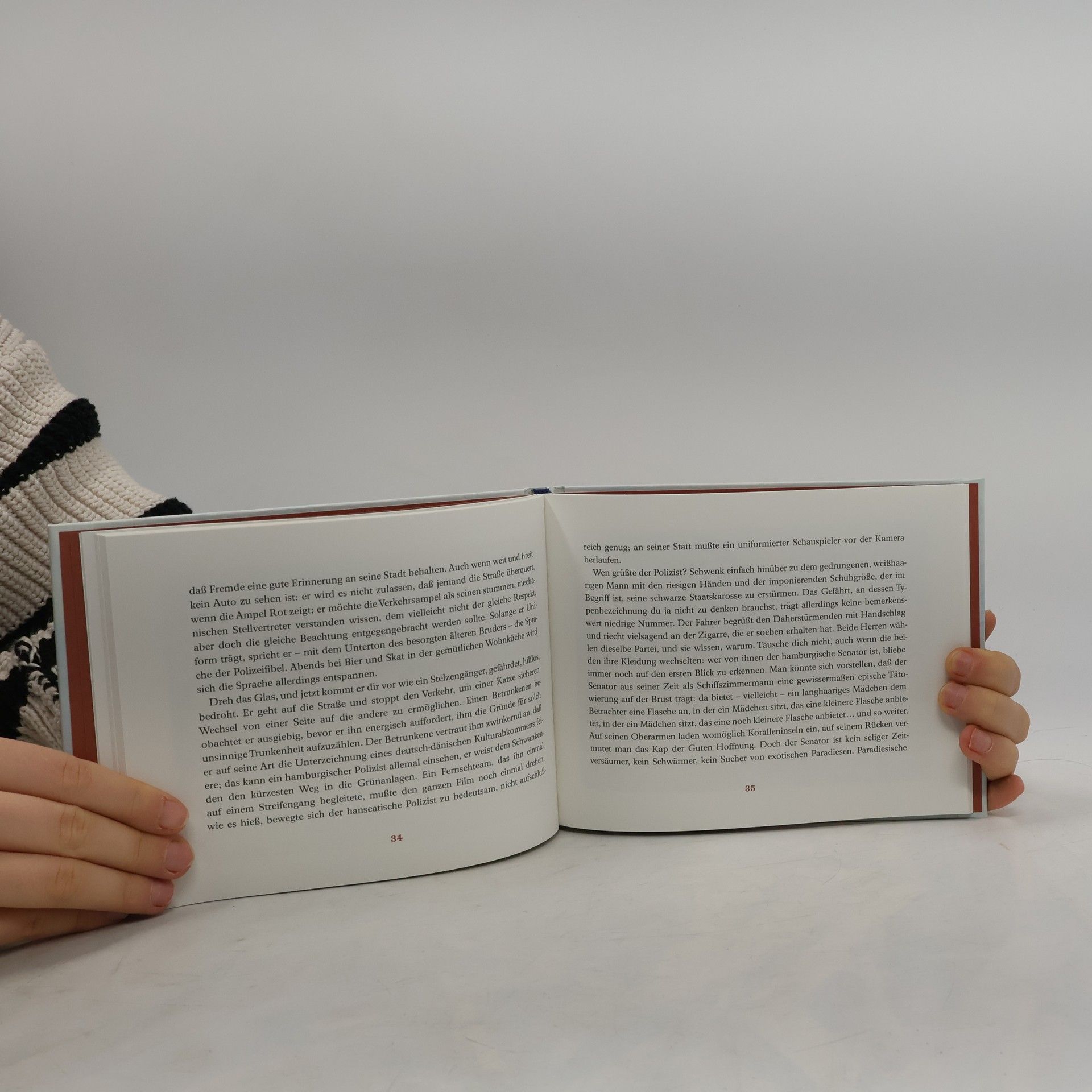 Siegfried Lenz beschreibt sein Hamburg und dessen Bewohner: Und nur er versteht es, die kleinen Schwächen und sympathischen Eigenarten der Leute von Hamburg so treffend, so feinfühlig zu skizzieren. Klaus Fußmanns Aquarelle stützen die philosophische Stimmung und machen das Buch zu einem sinnlichen Erlebnis. Eine nachdenkliche Musterung von Menschen, die das Bild Hamburgs prägen - mit einem Vorwort von Helmut Schmidt: „Siggi Lenz versucht die Eigenart der Menschen, die er in diesem Buch penibel beschreibt, und ihr manchmal durchaus sehr hamburgisch anmutendes Gehabe mit Hilfe eines Blicks durch den Schliff eines Rumglases zu entdecken. Dieses Rumglas erweist sich als wunderbares Instrument, um hinter der Fassade der Menschen ihre Persönlichkeit und Eigenheiten zu beobachten - und zu verstehen.“ (Aus dem Vorwort von Helmut Schmidt)