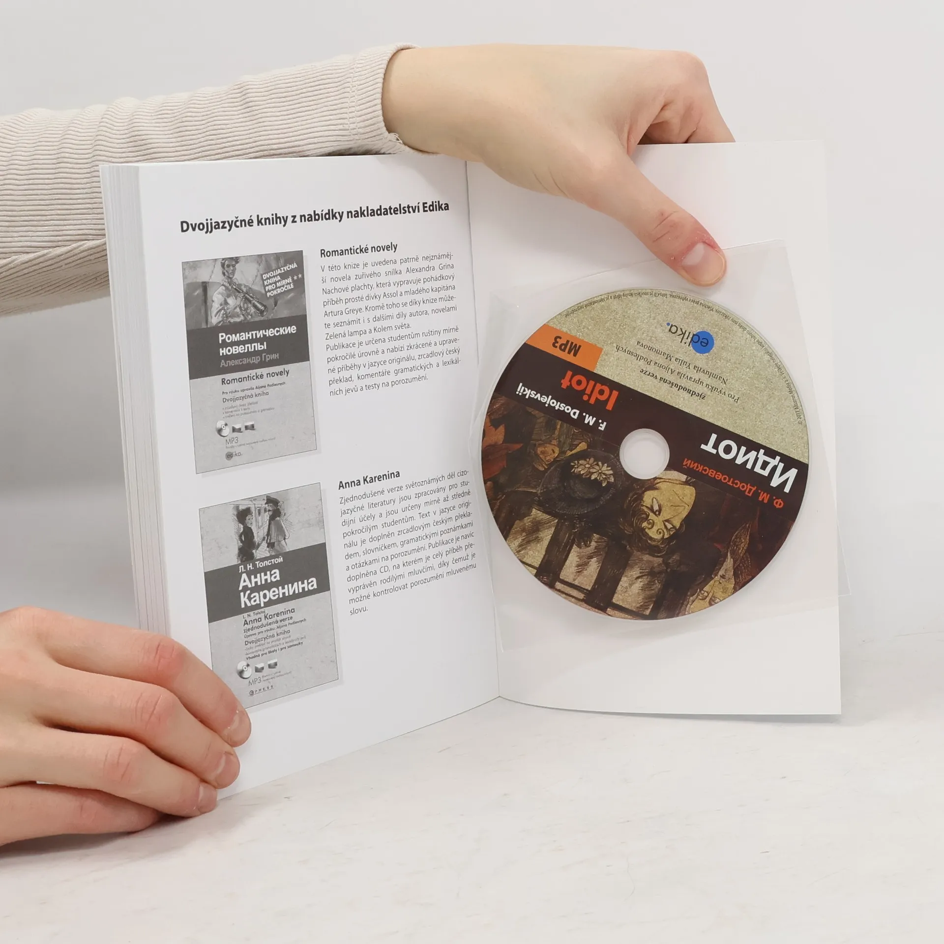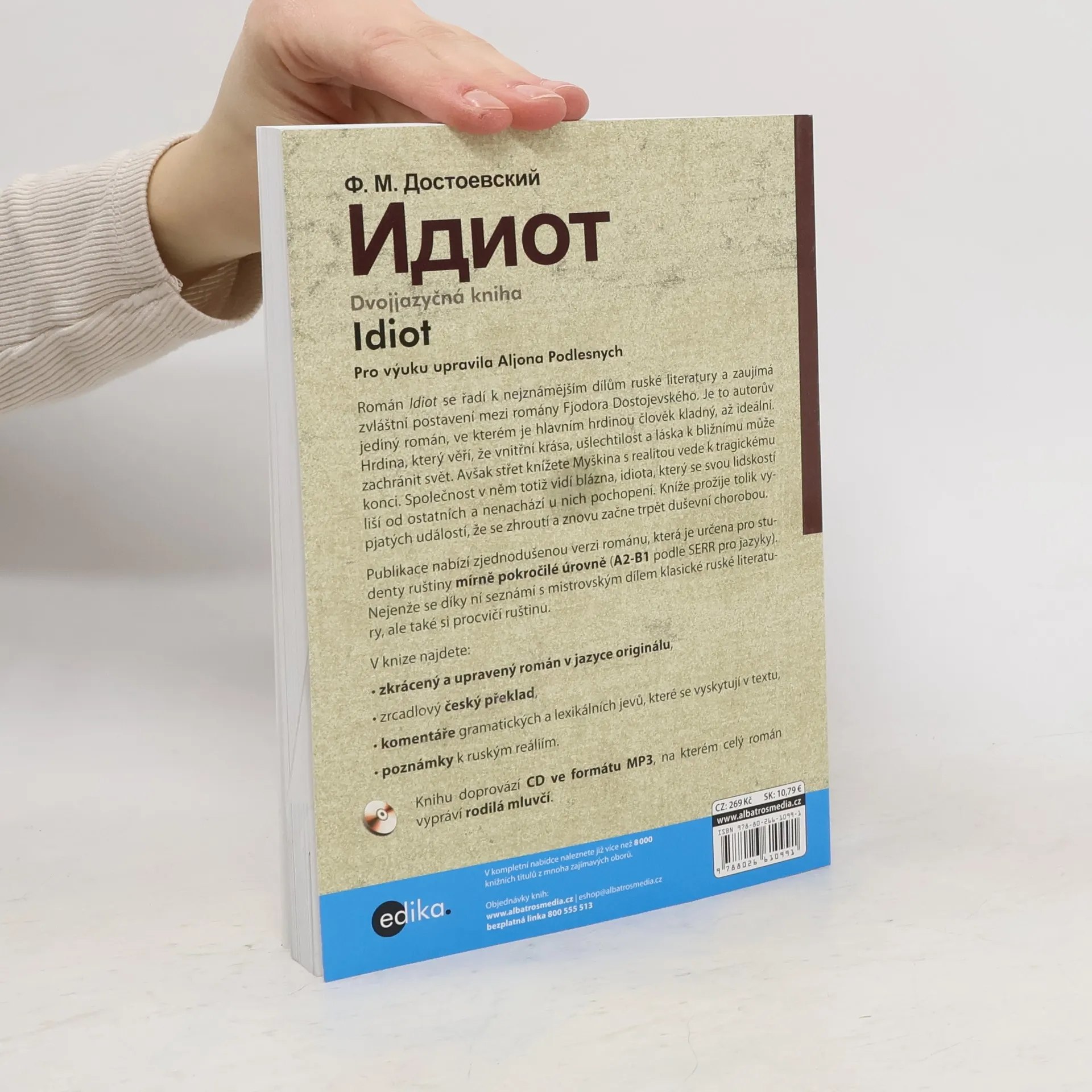 Dvojjazyčná kniha pro mírně pokročilé. Převážně souběžný ruský text. Idiot zaujímá zvláštní postavení mezi romány Fjodora Dostojevského. Je to autorův jediný román, ve kterém je hlavním hrdinou člověk kladný, až ideální. Hrdina, který věří, že vnitřní krása, ušlechtilost a láska k bližnímu může zachránit svět. Avšak střet knížete Myškina s realitou vede k tragickému konci… Publikace nabízí zjednodušenou verzi románu, která je určena pro mírně pokročilé studenty ruštiny, zrcadlový český překlad, komentáře gramatických a lexikálních jevů a poznámky k ruským reáliím.