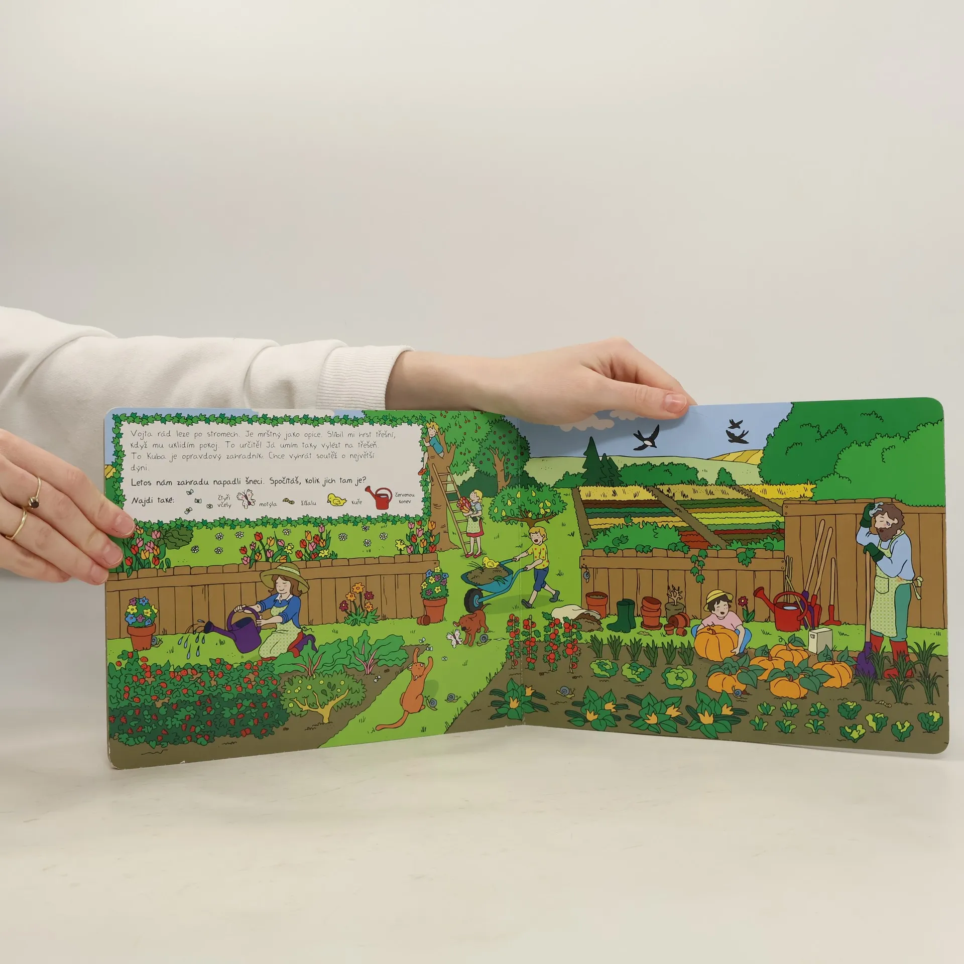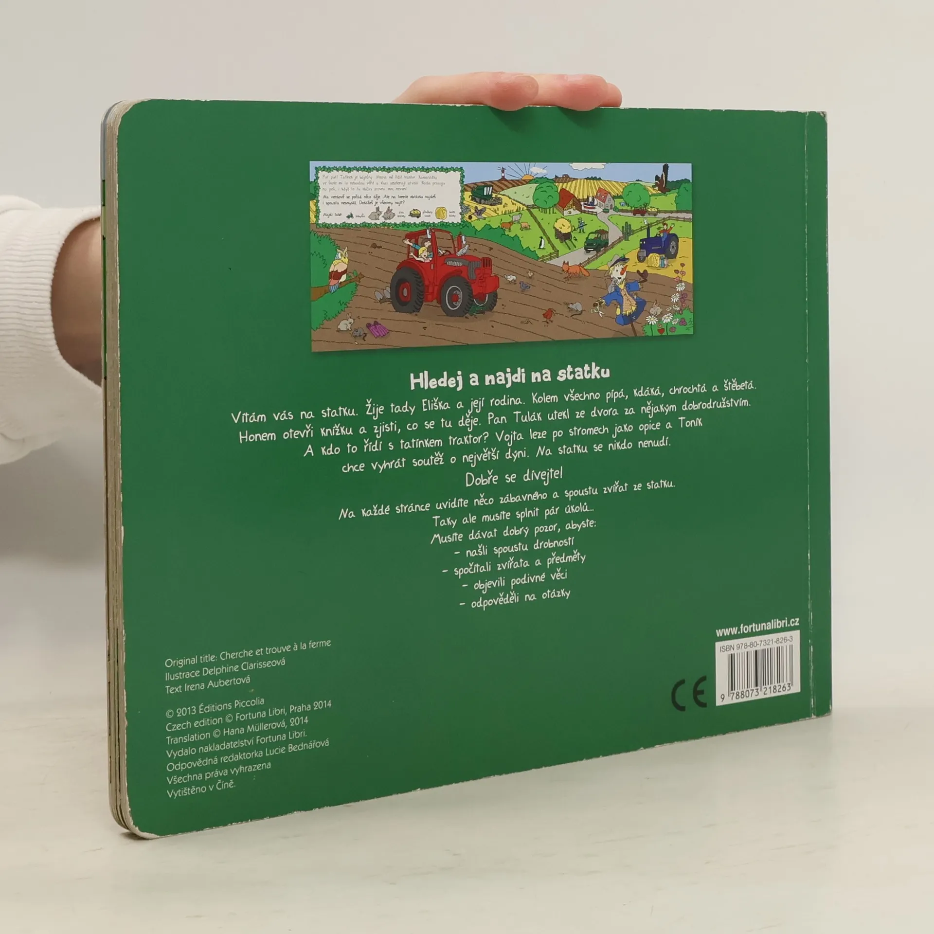 Vítám vás na statku. Žije tady Eliška a její rodina. Kolem všechno pípá, kdáká, chrochtá a štěbetá. Honem otevři knížku a zjisti, co se tu děje. Pan Tulák utekl ze dvora za nějakým dobrodružstvím. A kdo to řídí s tatínkem traktor? Vojta leze po stromech jako opice a Toník chce vyhrát soutěž o největší dýni. Na statku se nikdo nenudí. Dobře se dívejte! Na každé stránce uvidíte něco zábavného a spoustu zvířat ze statku. Taky ale musíte splnit pár úkolů.