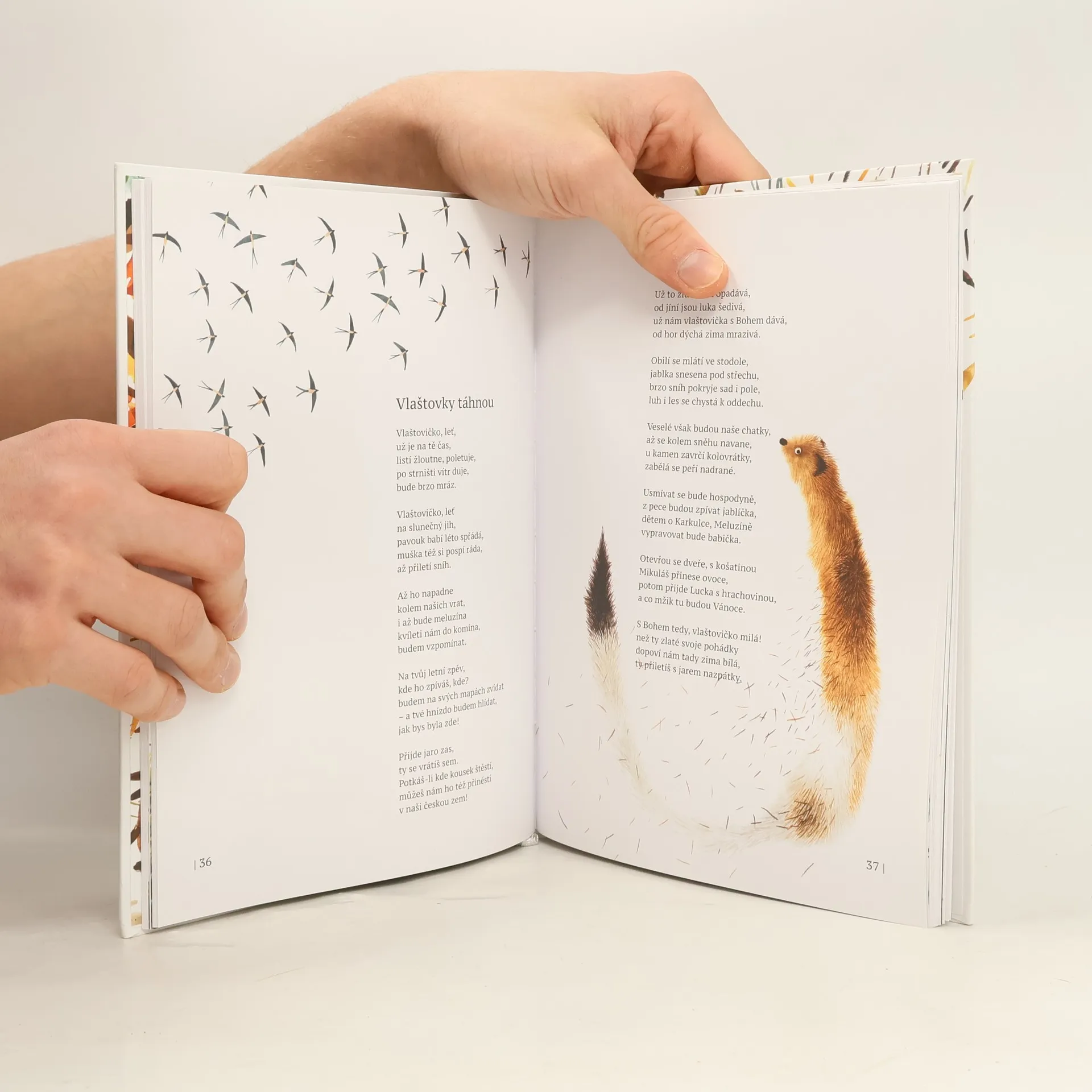 Básničky a říkanky Josefa Václava Sládka pro malé děti i jejich rodiče přinášejí známé i zapomenuté texty, které citlivě a vtipně ilustroval Filip Pošivač. Sládek (1845-1912) je známý jako meditativní lyrik a autor vlastenecké poezie, ale jeho dětská poezie zůstává často opomíjena. Nápěvy jako „…vlaštovičko leť, už je na tě čas…“ nebo „strýček Houra domek bourá…“ jsou povědomé a mnozí je znají z dětství. Dosavadní výbory pro děti však často ignorovaly balady a verše s náboženskou symbolikou, včetně vánočních témat. Editorka Jana Čeňková sestavila výbor Sládkovy poezie pro děti, který zahrnuje jak známé, tak méně známé texty. Filip Pošívač moderními ilustracemi přibližuje klasickou poezii současné generaci. Kniha je rozdělena do tří částí: první obsahuje hravá říkadla z jeho klasických sbírek (Zlatý máj, Skřivánčí písně, Zvony a zvonky). Druhá část se zaměřuje na baladické skladby a básně s náboženskou tématikou, převážně vánoční. Poslední část se soustředí na vlastenecké texty, kde se často objevuje motiv mořské scenérie, symbolizující odloučenost od vlasti a blízkých.