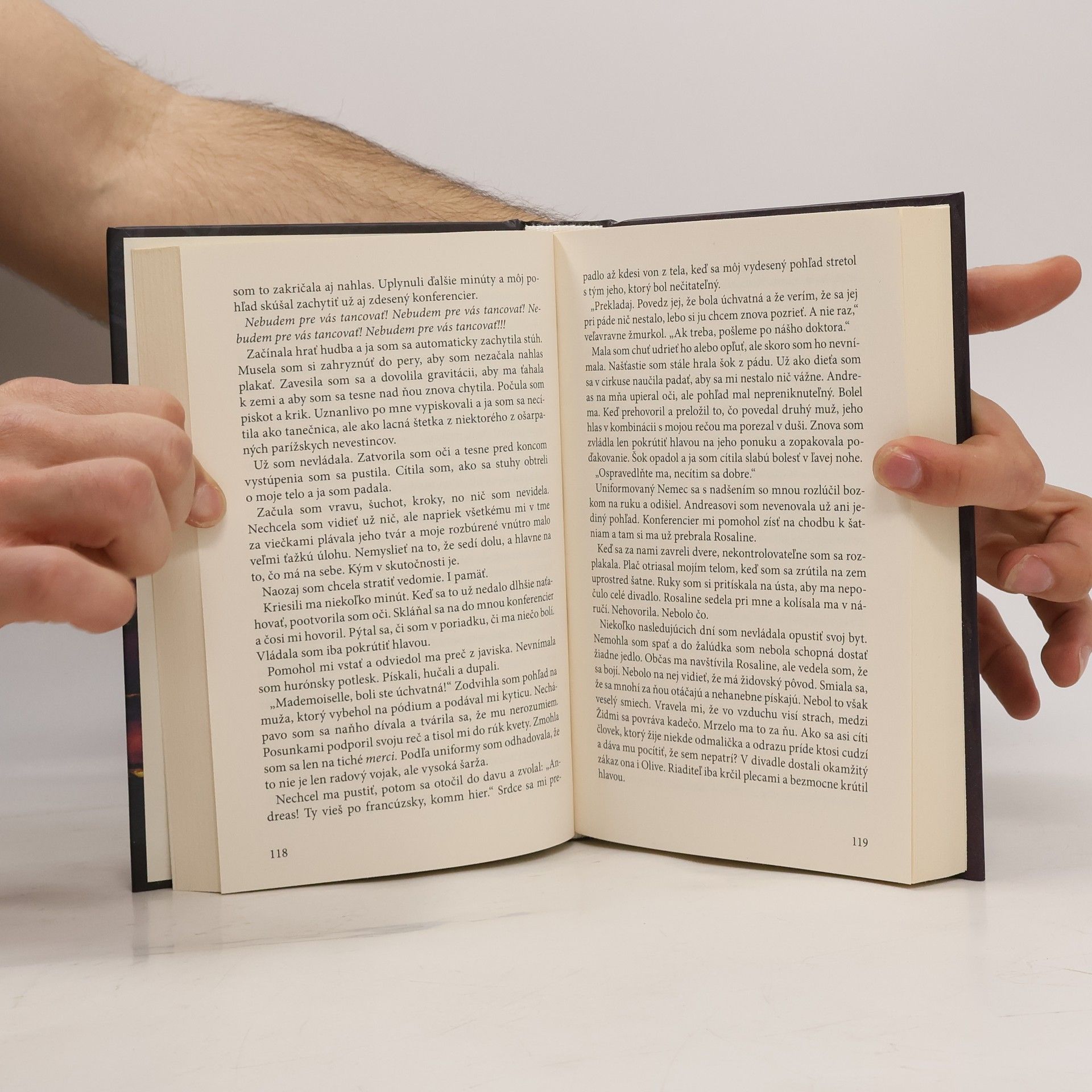 Julienova rodina a ďalšie tisíce židov zomreli strašnou smrťou v koncentračných táboroch. Jedna z mojich najlepších kamarátok má vytetované číslo, ktorého sa nikdy nezbaví. Druhá zomrela pod rukami doktora Mengeleho, ktorého meno vyslovila Olive len pošepky a cez zovreté pery. Ako jej mám po tom všetkom povedať, že som odišla do Nemecka a vzala si Nemca v nacistickej uniforme? Bohémske 20. roky 20. storočia v Paríži. Geraldine de Laffont tancuje vo vzduchu na čiernych stuhách. Jej životom je divadlo Folies Bergére a jeden nemecký muž. Je mladá a bezstarostná, až kým sa jej život neprevráti naruby – jej stuhy sa zmenia na nacistické vlajky a milovaný muž má odrazu nacistickú uniformu. Zdrvená Geraldine, poznačená príchodom vojny, stráca viac než len ilúzie. Osud jej vracia lásku, ale berie viac, ako je človek schopný uniesť. Jej mrazivý príbeh je ako zostup do neznámeho podzemia. Začnete v krásnom zámku a pôjdete hlbšie... Chodby času vás prevedú životom odvážnej ženy a nepripravených hodia z pompéznych divadelných dosiek do zbombardovaných Drážďan. Ako hlboko sa dá ukryť pravda? O mnoho rokov neskôr prichádza do Paríža Júlia, rozhodnutá vypátrať svoje korene. Skutočnosť, že zdedila zámok, však zďaleka nie je takým šokom ako to, že otvorí Pandorinu skrinku a vypustí z nej všetky hrôzy, ktoré musela prežiť jedna nešťastná... Tanečnica.